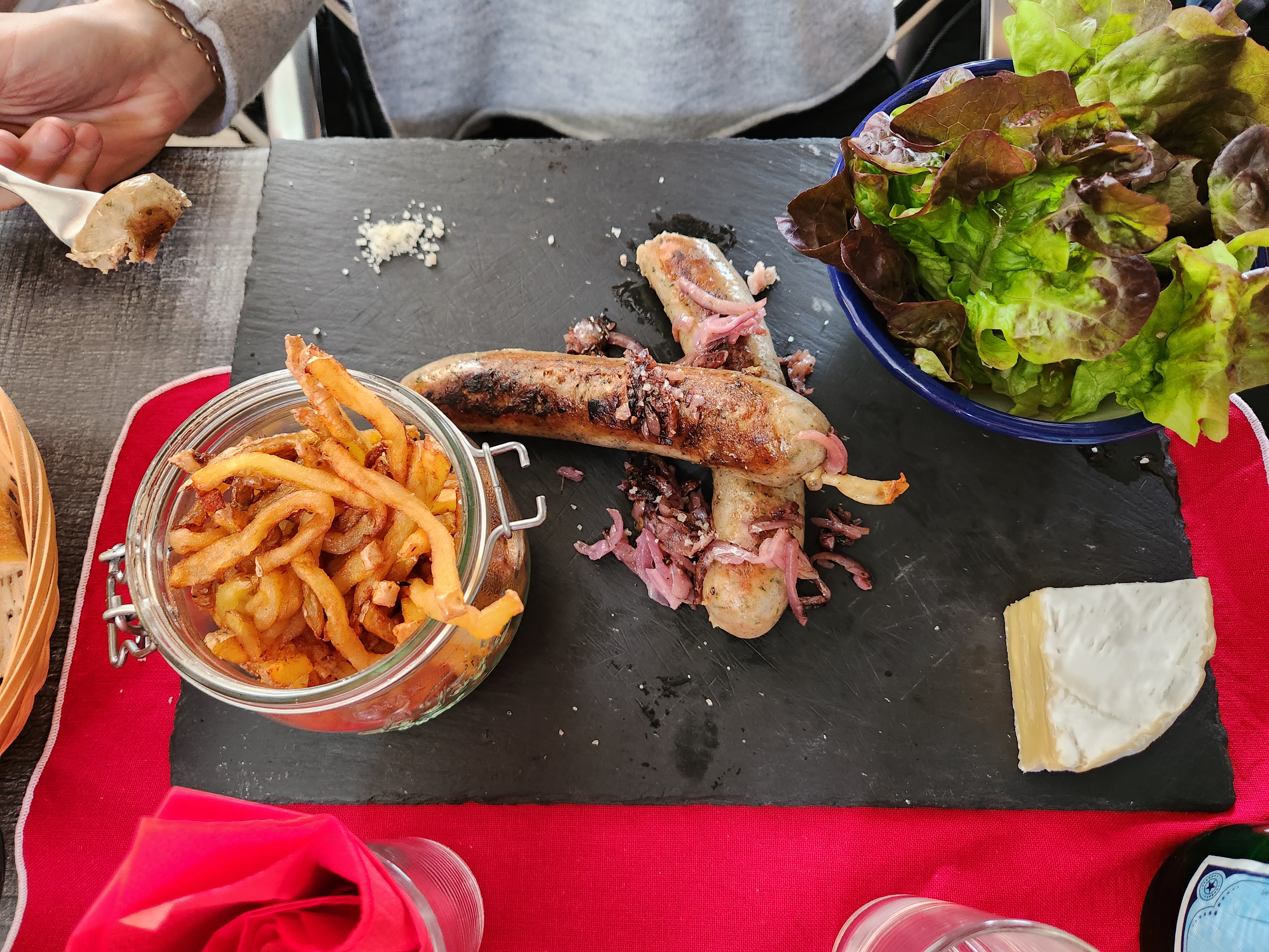 plancha à 30 € quant même ( pour 2 ) ! eh bien pour le prix : pas à la hauteur en qualité avec entre autre un petit saucisson de qualité moyen , 3 petites tranches fines de jambon cru sans gout, et seulement 1/2 baguette ( hélas de supermarché !! ) pour une planche de charcuterie à 2 : insuffisant ! Dommage je voulais faire travailler le commerce local mais la prochaine fois j’amènerai ma glacière