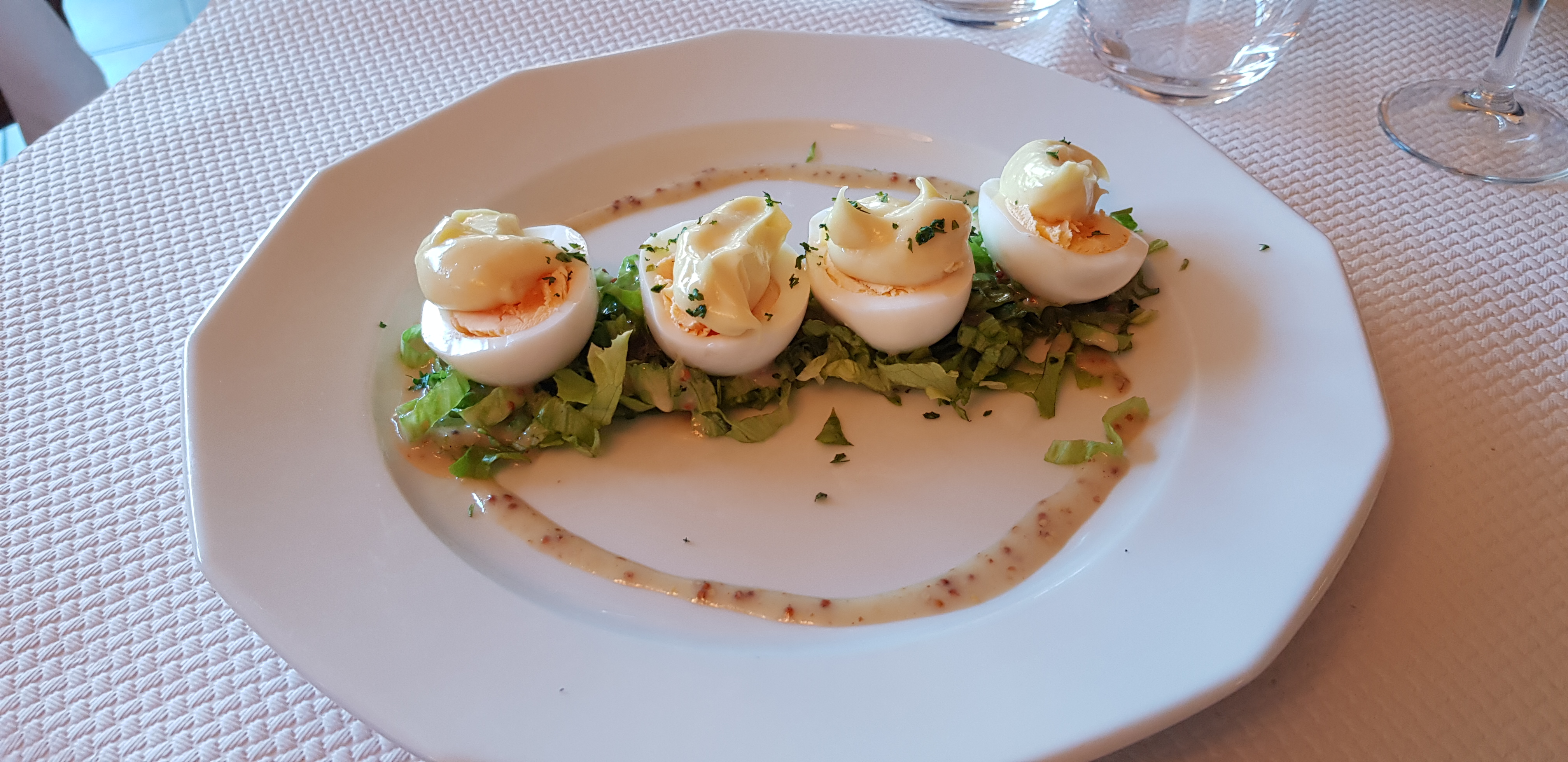 Proposition plat du jour superbe oeufs cocotte au foie gras. Entrecôte exceptionnelle,tendre,chaude poids au-dessus de la moyenne merci pour ce repas