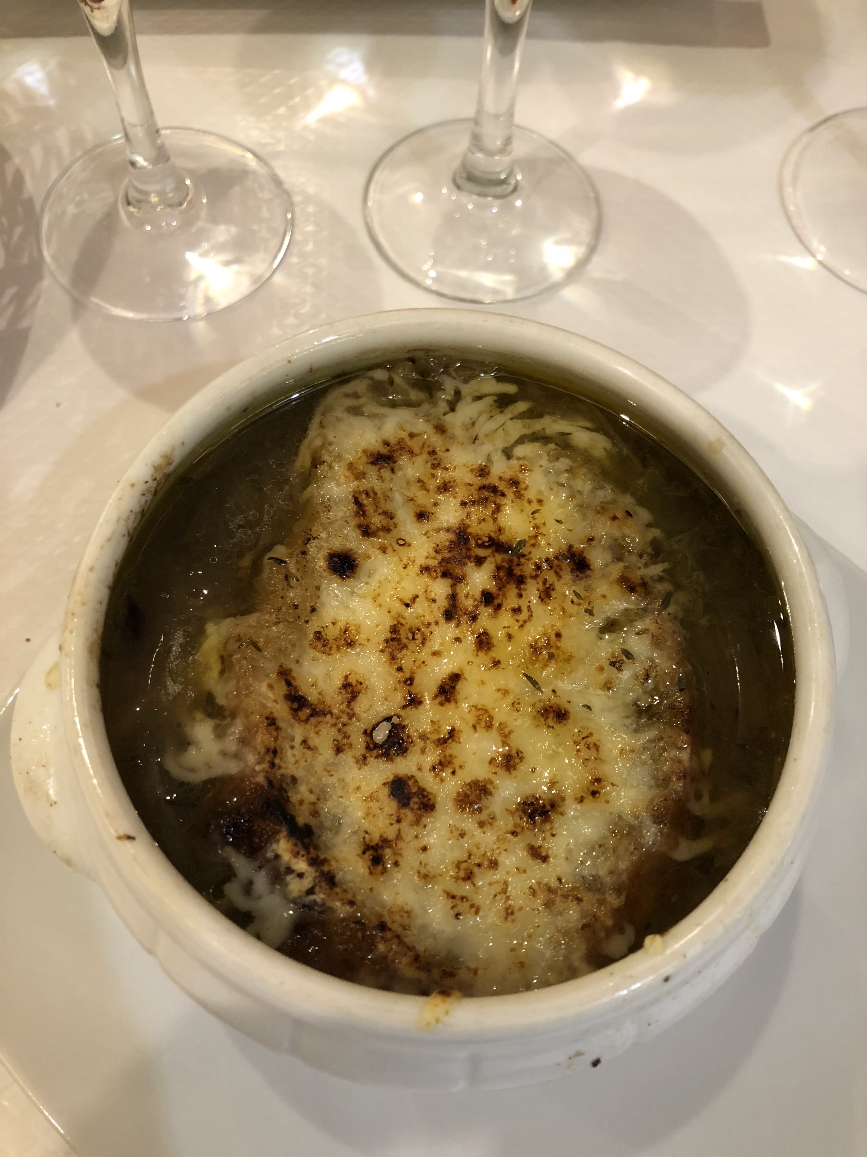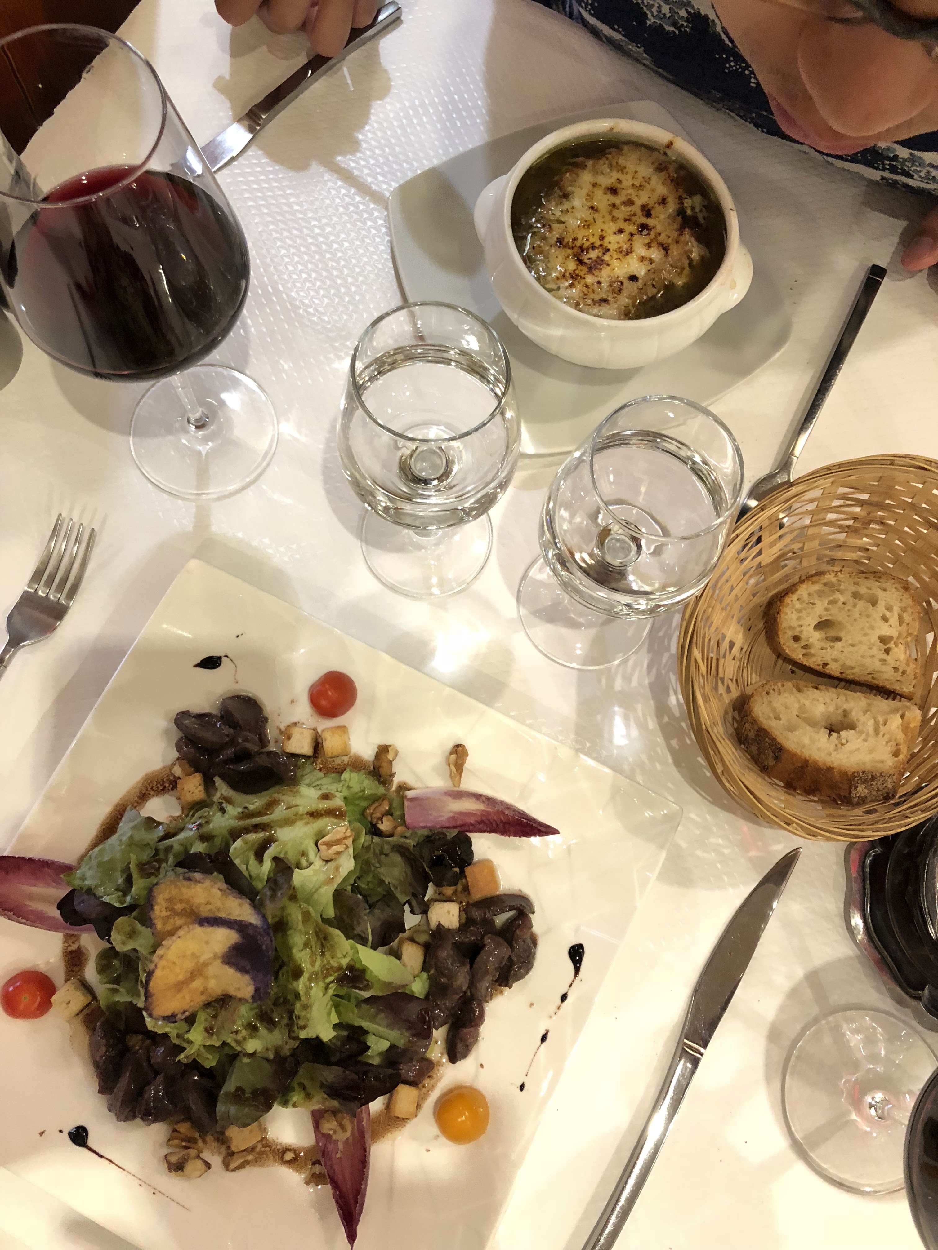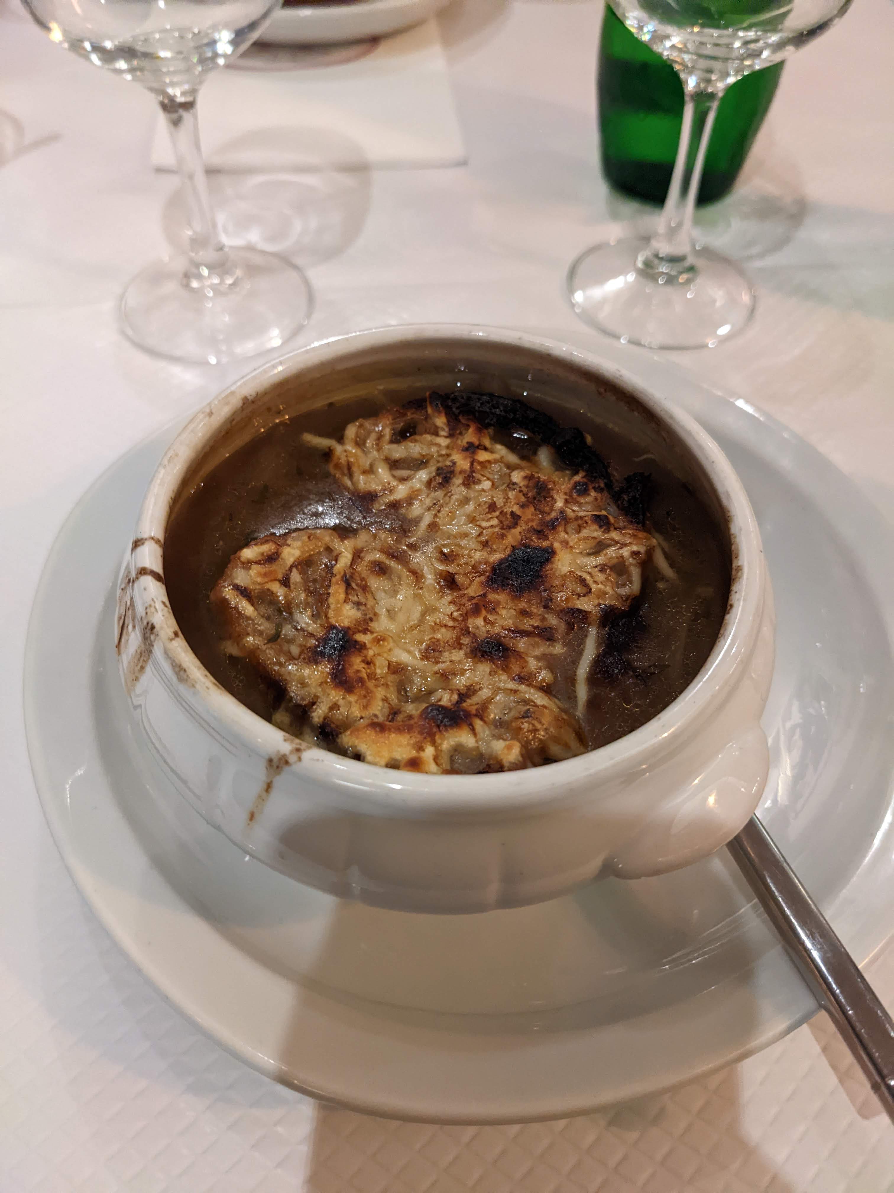 La soupe à l'oignon et la salade aux gésiers de canard et foie gras étaient délicieuses. Cet endroit est cher, mais nous avons aimé ce restaurant familial. Nous avons été servis par l'un des sympathiques propriétaires, dans un bon anglais. Nous avons passé un merveilleux séjour. Recommande fortement.
