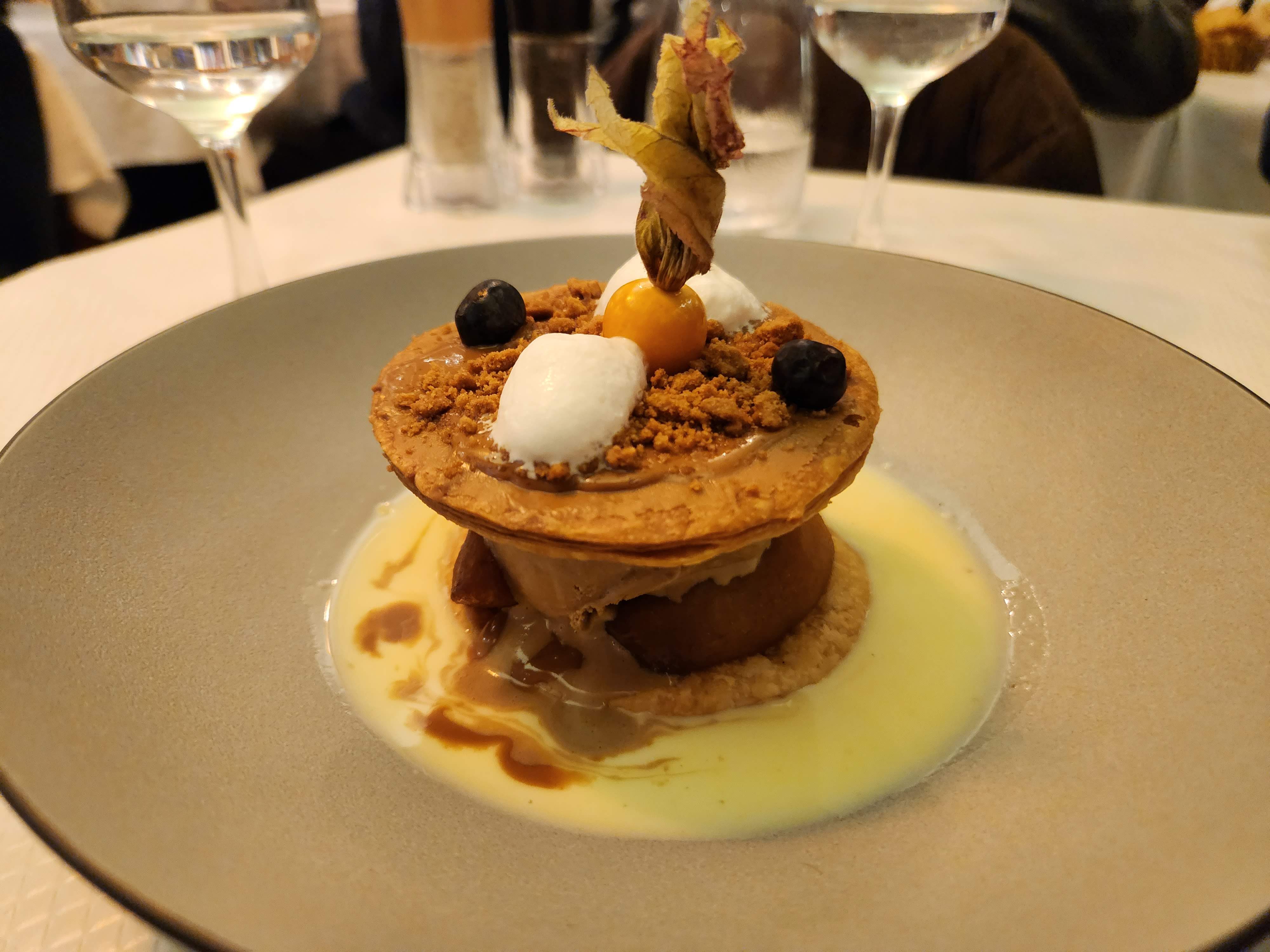 La nourriture était solide mais ne valait pas le prix élevé. Ce repas aurait été super à 18-20 euros par personne. Le seul plat qui m’a époustouflé était le dessert pomme-café-pâtisserie. Et le service était fantastique.