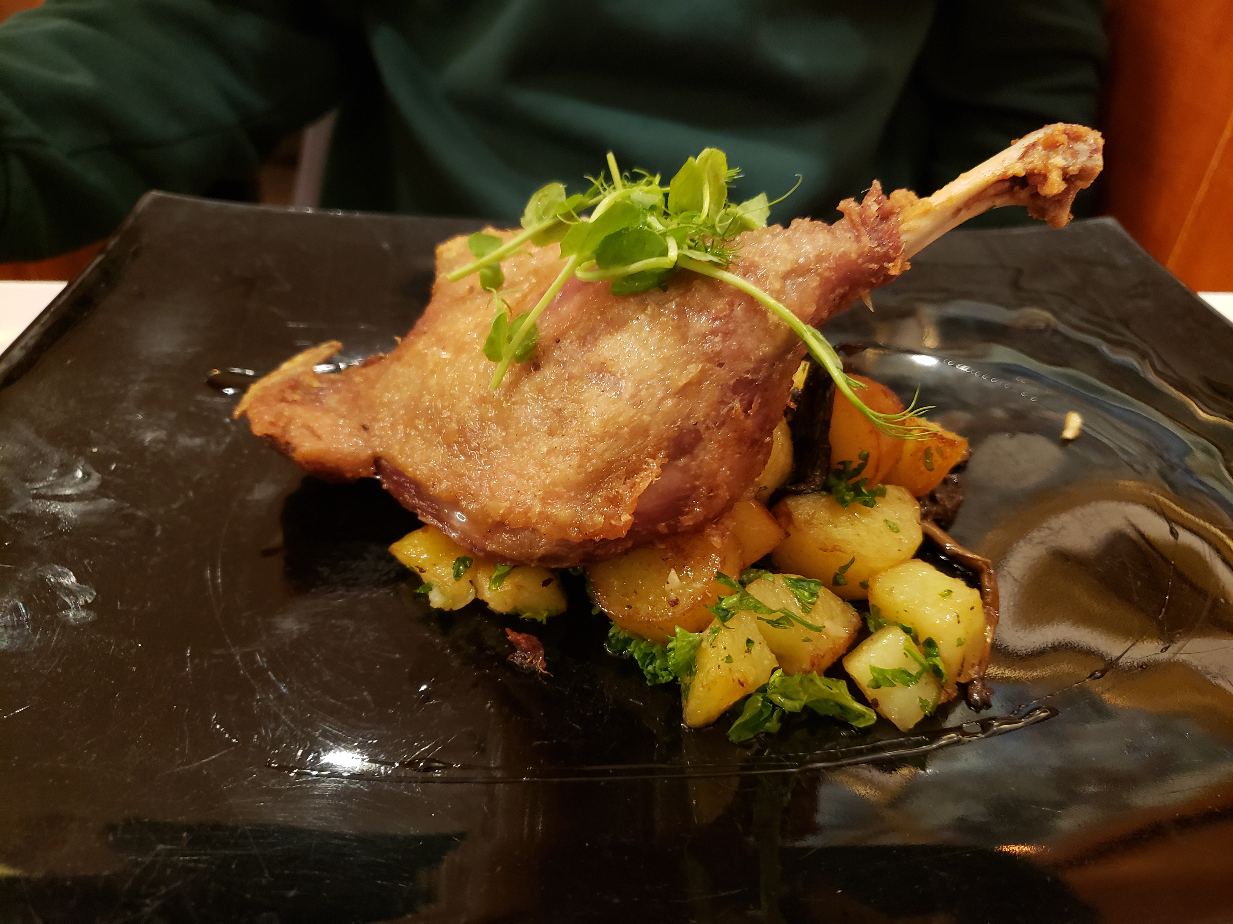 Nous avons tenté notre chance avec ce restaurant car tous les autres restaurants dans lesquels nous voulions aller étaient complets, mais quelle chance que la nourriture ici soit si bonne. tout était si joliment plaqué. c'est plus cher et nous avons dû attendre 20 à 25 minutes pour la nourriture (nous pensons qu'il n'y a peut-être que 3 employés qui travaillent... ?), prenez-en note. nous avons eu le poisson, le rumsteck et le canard confit. juste une mise en garde pour le rumsteck, vous le trouverez peut-être trop saignant, mais si vous l'aimez, c'est bon.