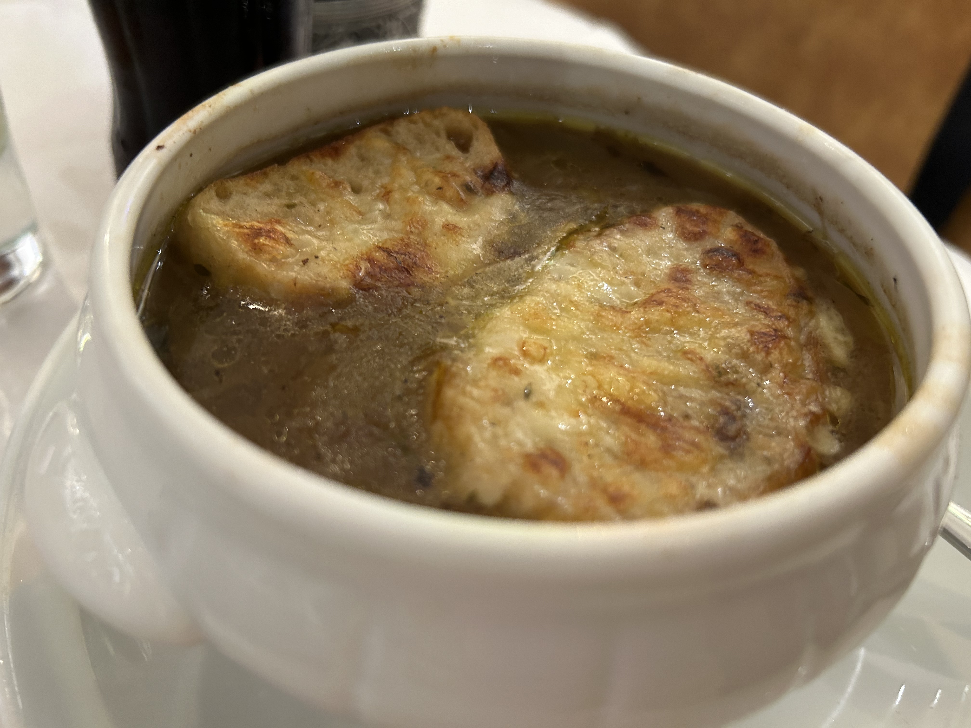 Excellent service, nourriture savoureuse et atmosphère accueillante. J'ai eu la soupe à l'oignon comme plat principal et c'était tellement copieux et délicieux. La crème brûlée était la meilleure ! Peut être très fréquenté donc cela vaut la peine de réserver le soir.