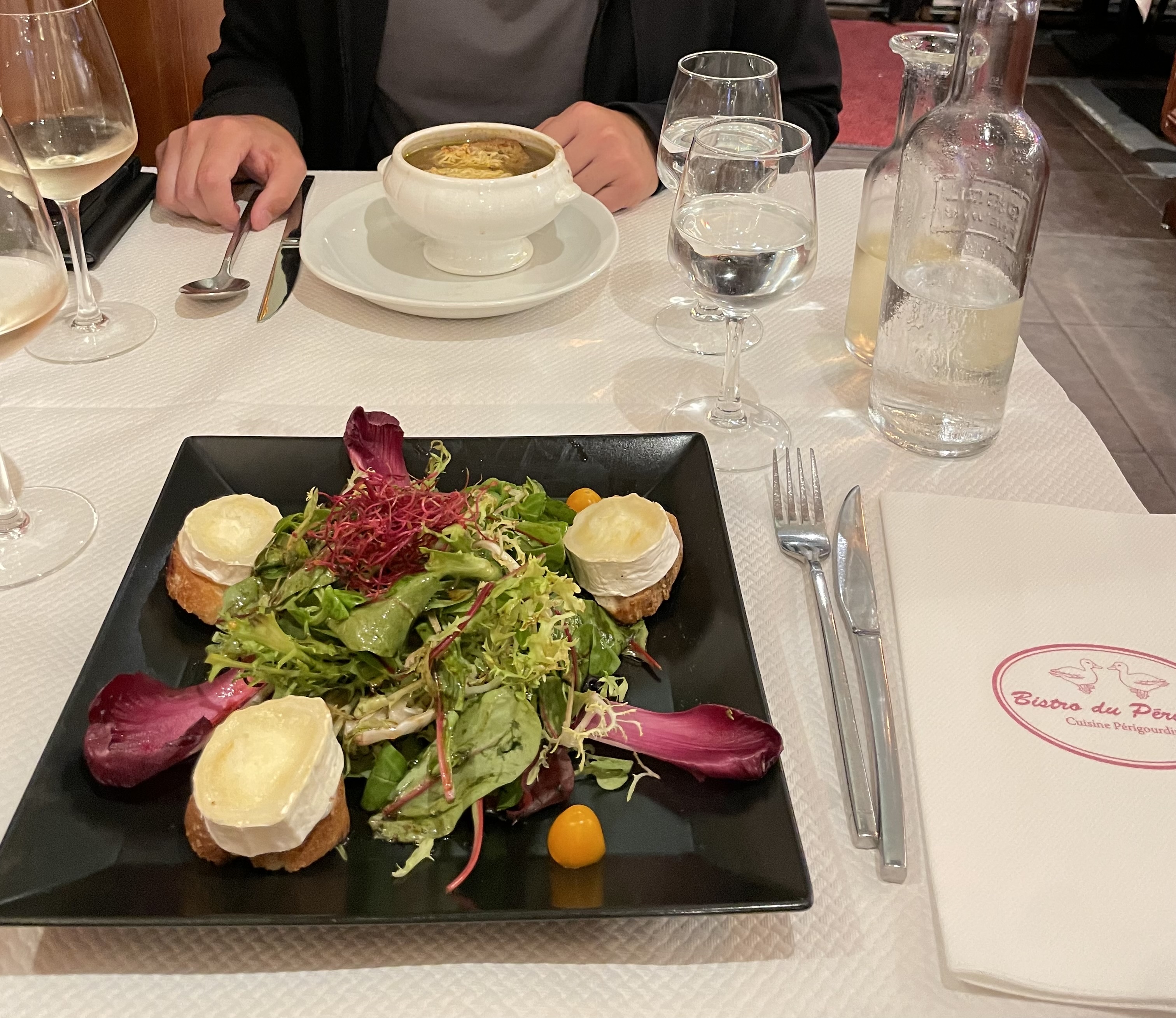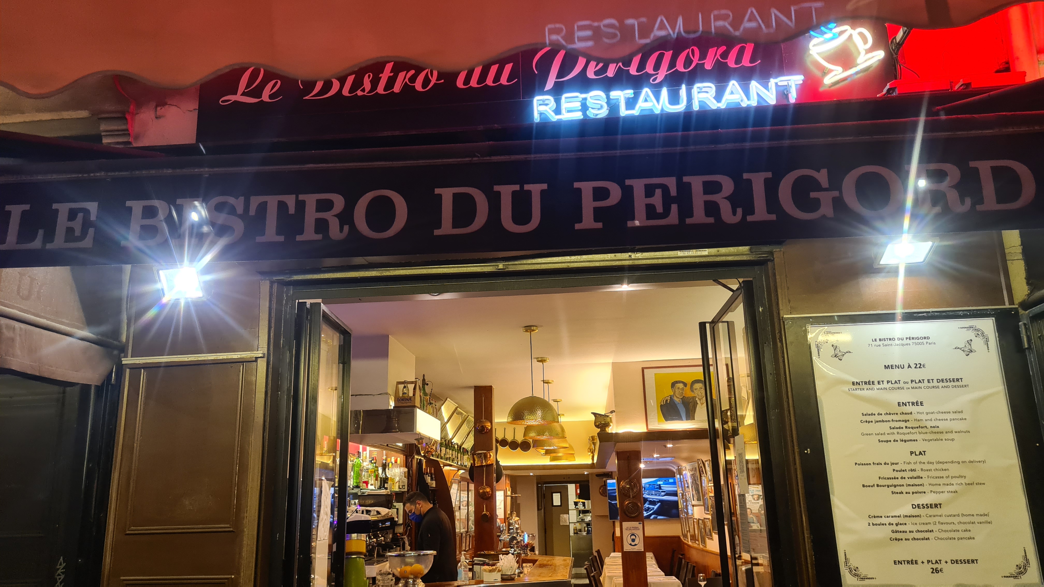 Le meilleur repas que nous ayons eu à Paris ce voyage -- heureux de recommander ce restaurant familial qui a accueilli avec joie notre arrivée sans réservation à 20h30 un samedi soir ! Service agréable, sympathique et attentionné. Particulièrement bon - la soupe à l'oignon, le canard et l'assortiment de desserts. La carafe de rouge maison était parfaitement potable et d'un bon rapport qualité-prix. Seule suggestion à la direction : baisser les lumières et la température... c'était un peu clair et un peu chaud pour dîner. Nous serons heureux de revenir au Bistrot Du Périgord.