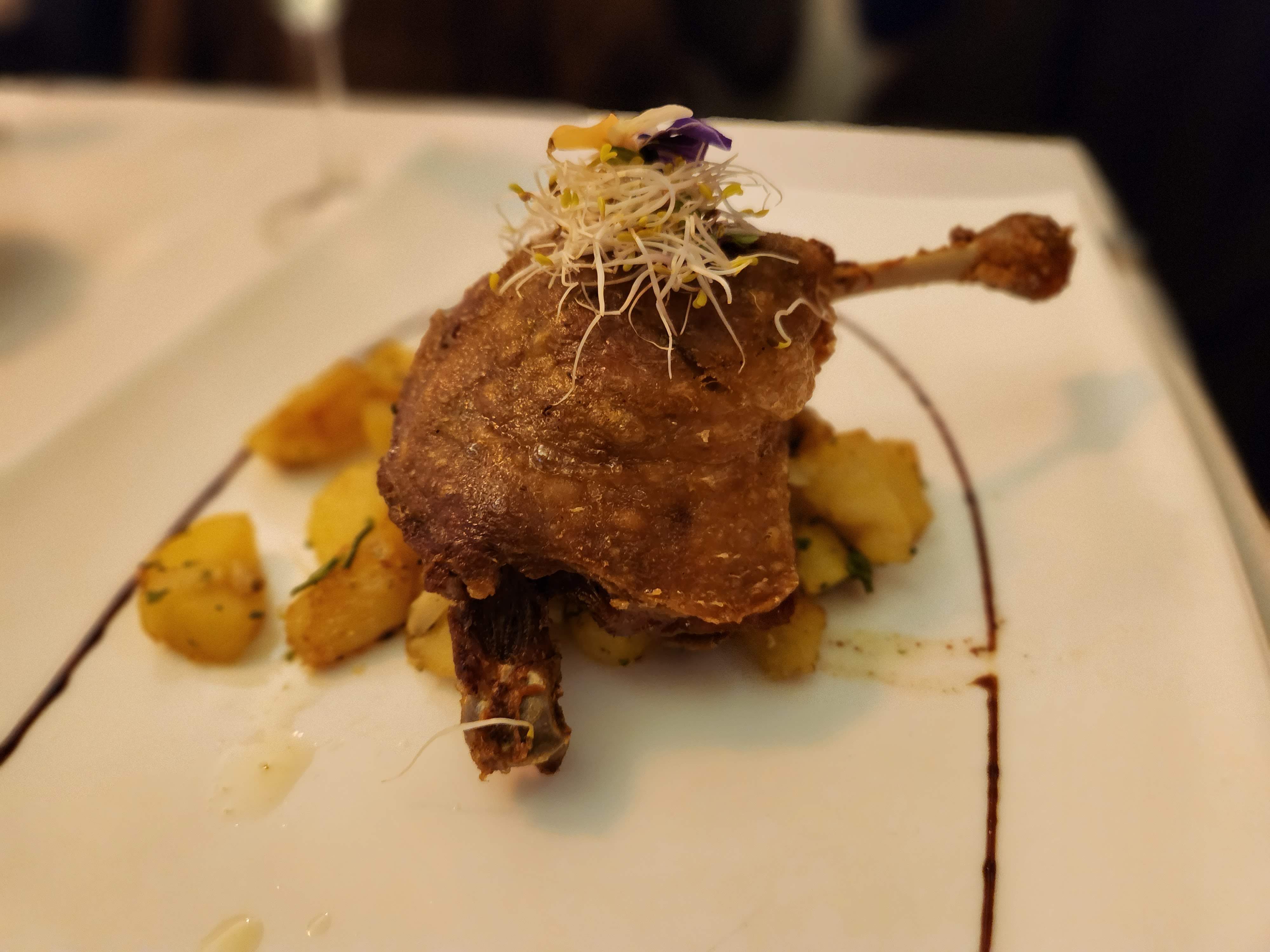 Nous avons dégusté un délicieux canard et un dessert au chocolat. Le restaurant était un peu lent car le propriétaire était le seul serveur quand nous y étions, mais ça vaut vraiment le coup. Il était drôle et nous avons apprécié chaque minute. Vraiment délicieux.