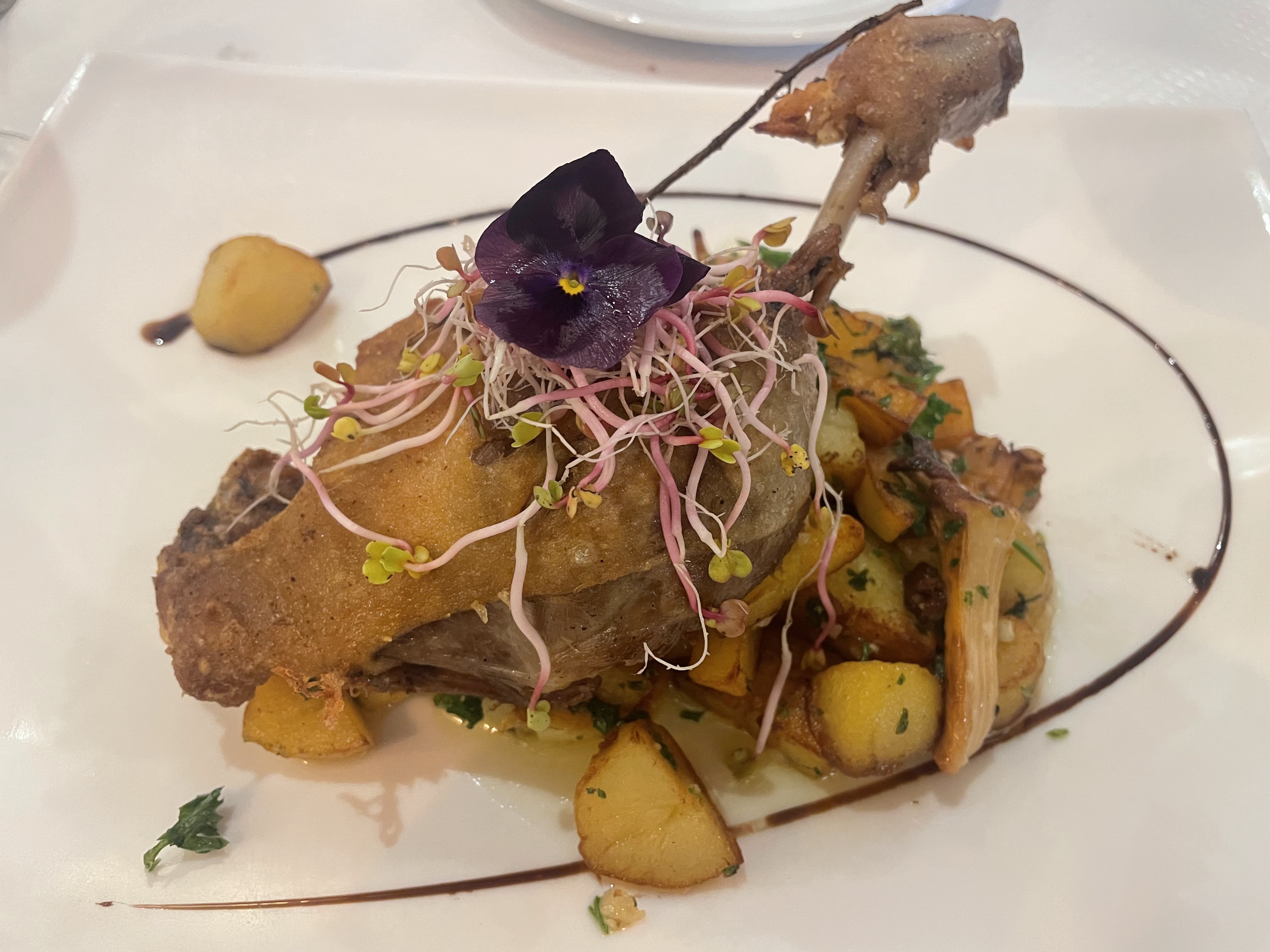 Nourriture exquise et excellent service! Une des meilleures soupes à l’oignon que j’ai jamais mangées. Je ne mange pas de canard d’habitude, mais étant donné le nom du Bistro, c’était certainement un incontournable et je ne le regrette pas. Les autres plats du menu semblaient incroyables, il faudra donc y retourner.
