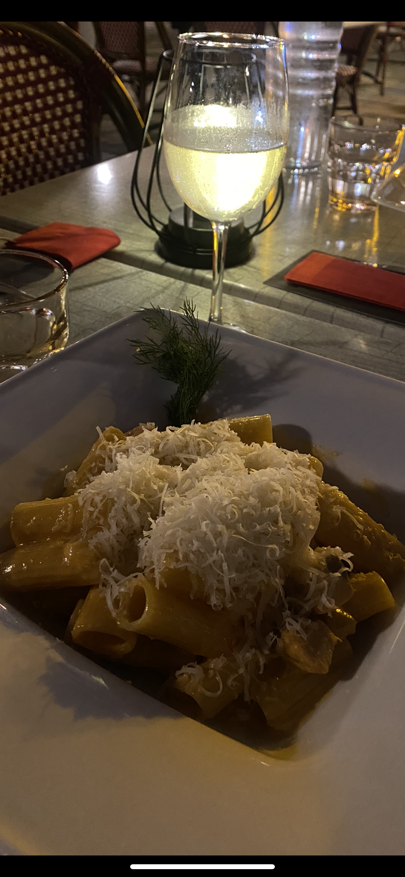 Carte de plats italiens avec des produits frais. Accueil très agréable, service et conseils de pro ! Il est recommandé d'arriver avant 20h45 car un seul service. Terrasse très agréable aussi.