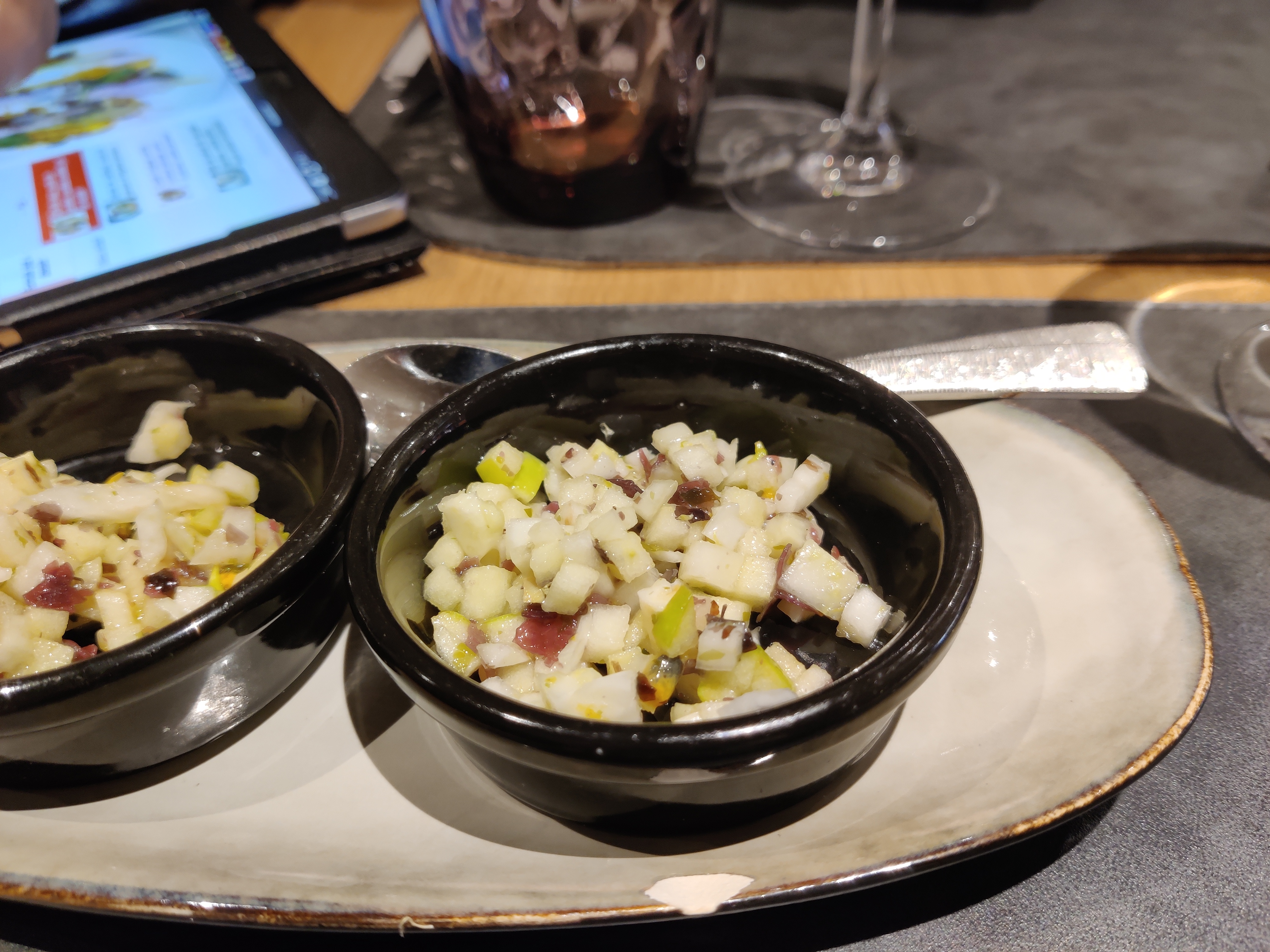 Pas mal comme un expérience dégustation. Les ingrédients étaient fraîches et les saveurs dans les plats étaient complexes. Mon partenaire a reçu son Porto dans un grand verre. C’était la seule chose qui il a trouvé un peu bizarre.