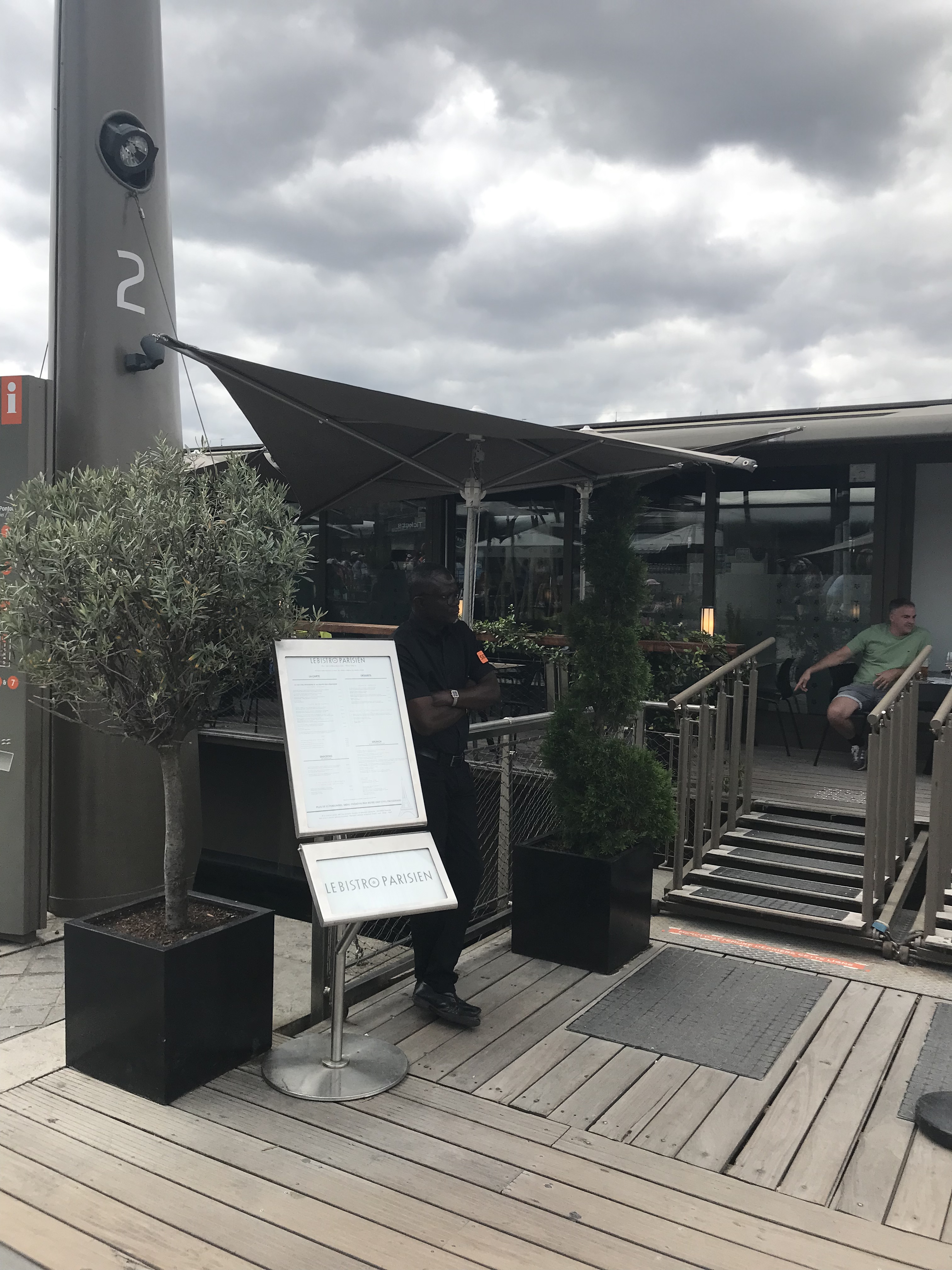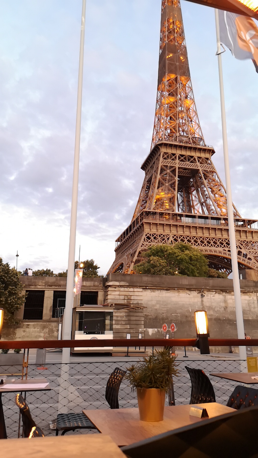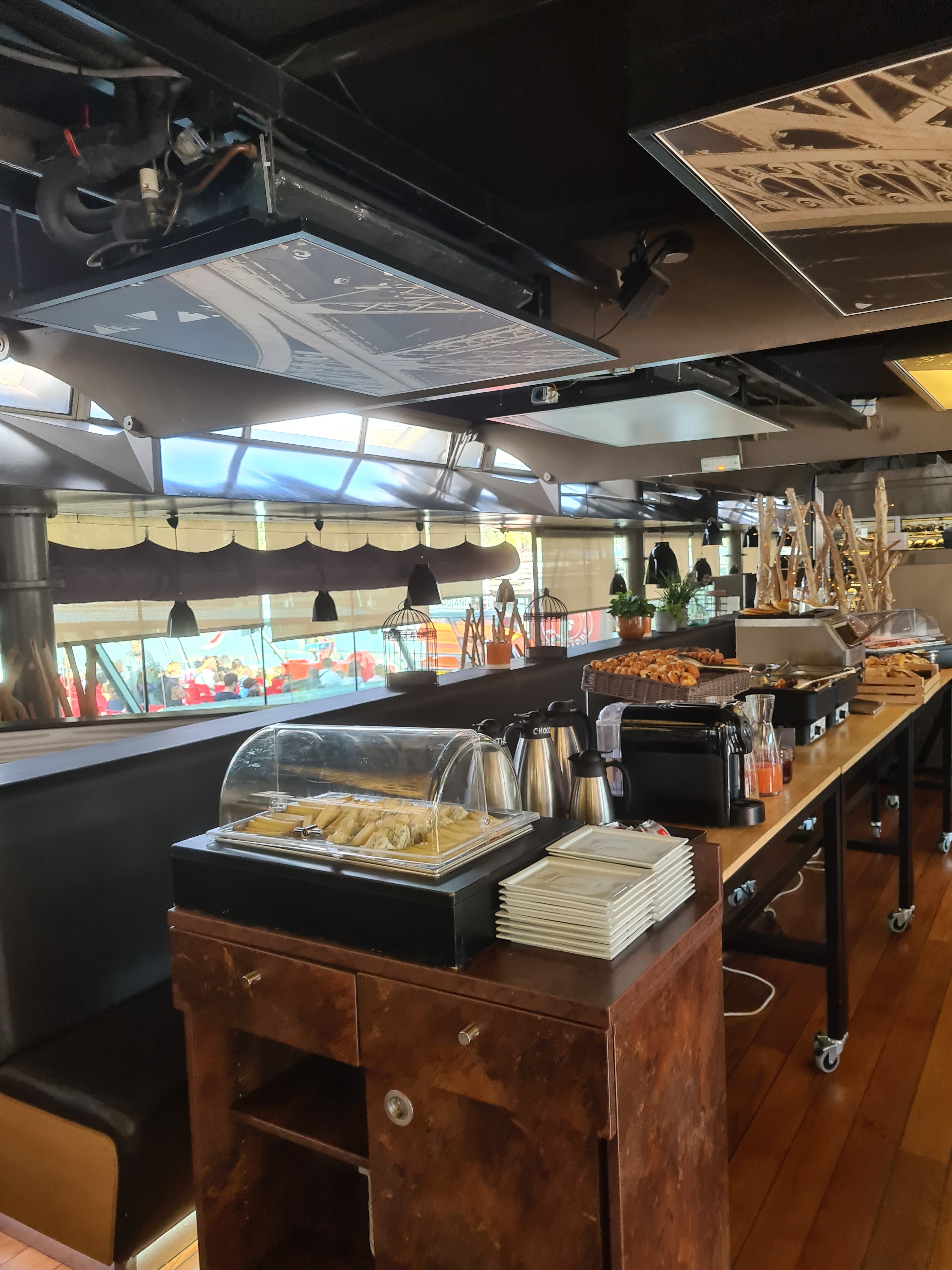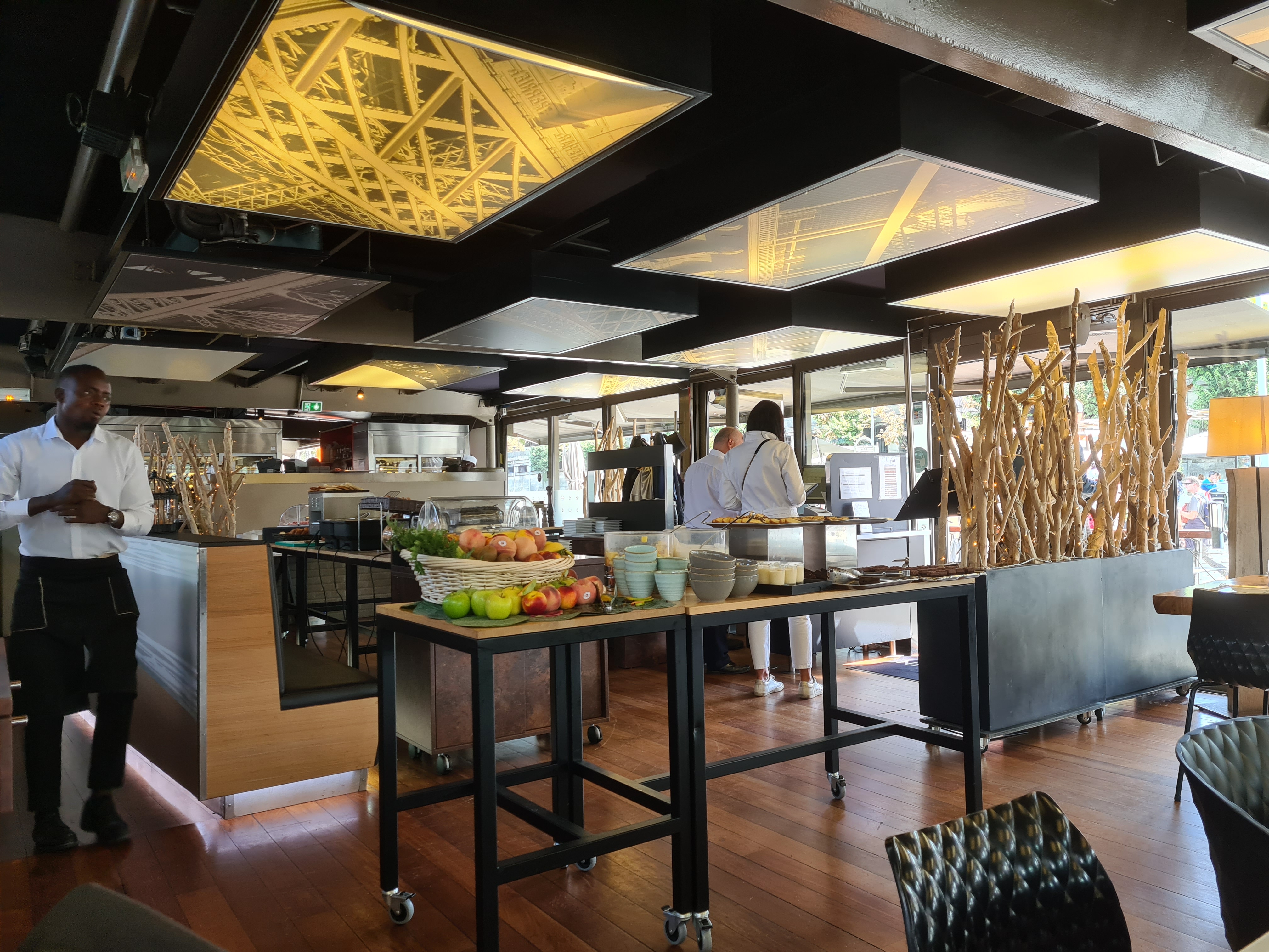 Le lieu est magique! Impression d'être sur un bateau avec vu sur la tour effeil. Le personnel est sympa et acceuillant. La nourriture est bonne et le prix raisonnable. Un peux d'attente pour les dessert mais peut etre du a la fatigue...
