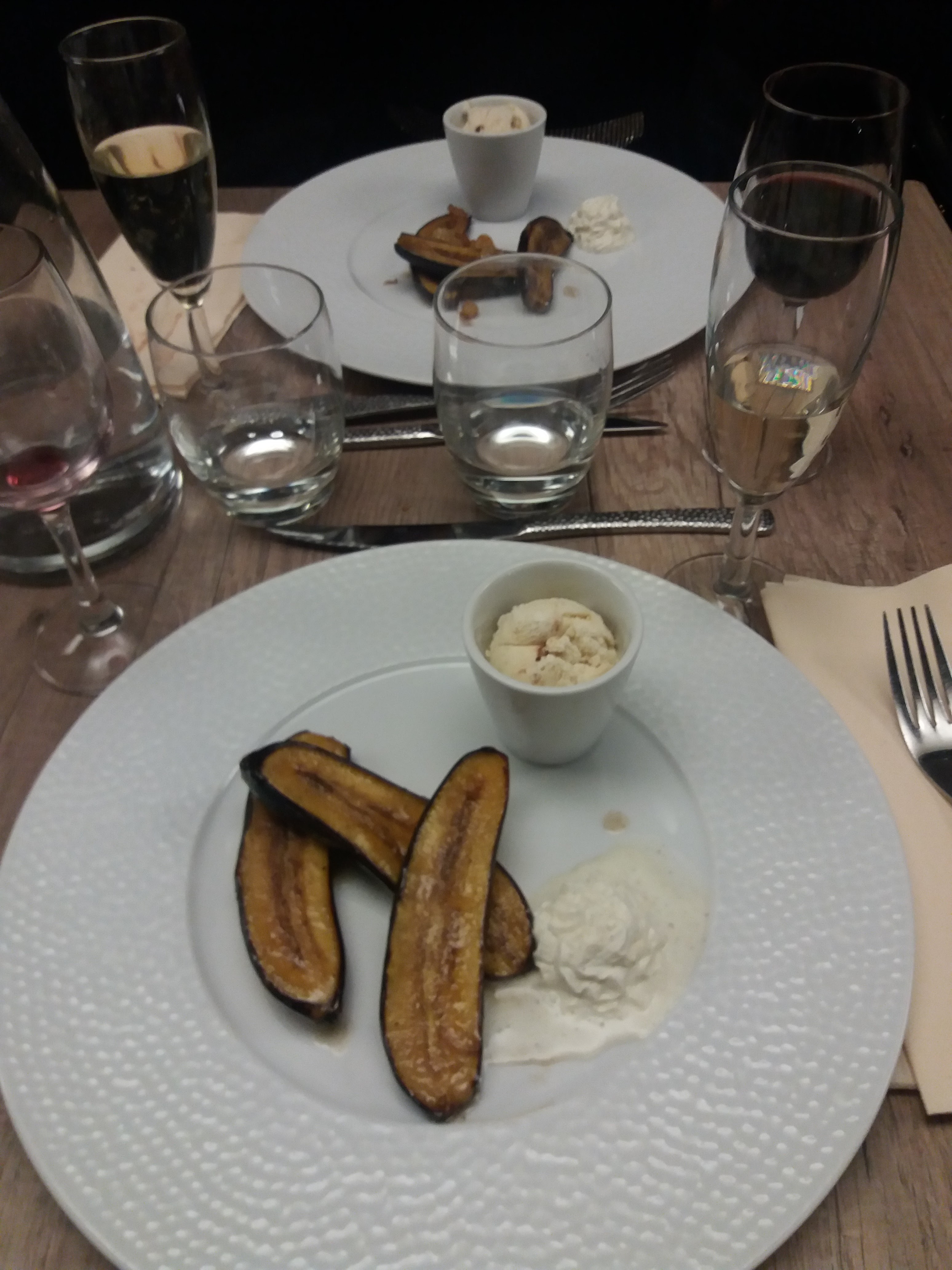 Accueil agréable. Nous avons opté pour le menu du soir a 55e. Champagne, entrée, plat, dessert et 3 verres de vin possible. Après avoir attendu 15 min, on passe commande, on nous ramène le champagne, l'entrée et le vin en même temps.. dommage. Entrée sympas. Plat moyen avec frites surgelés.. désert du jour légé et agréable. Serveurs attentionnés. Ambiance bruyante ce jour là. Des toiles avec araignées au dessus de nos têtes ( au fond a droite du bateau ). Dans l'ensemble, c'est un peu chère surtout si on ne consomme pas les 3 verres. Nous ne retenterons pas cette expérience..