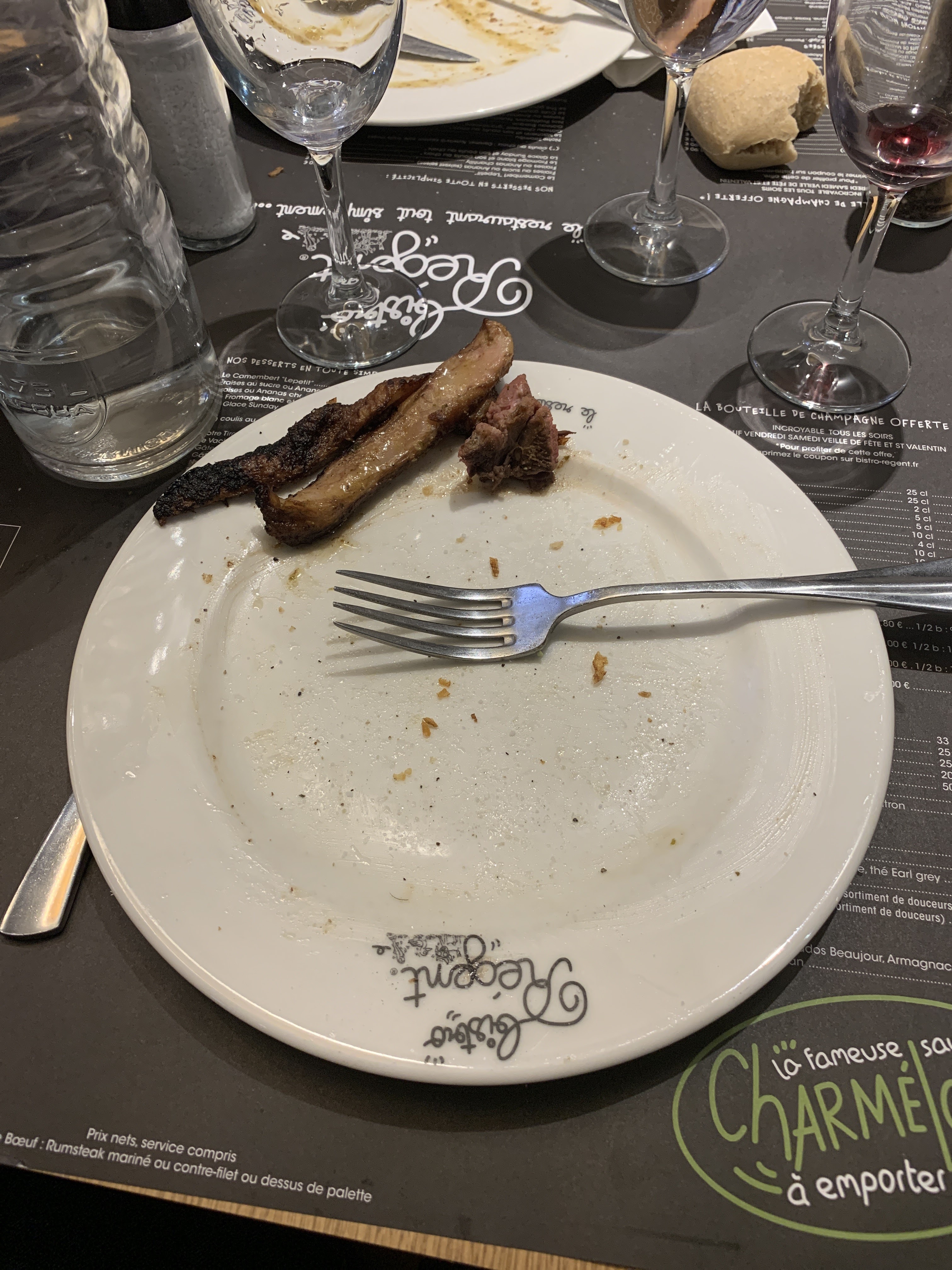 Je suis une habituée des bistro régent (Bordeaux, Toulouse). Menu viande frite salade, le classique. A anglet, première expérience du bistro régent Personnel très gentil. Mais très déçue par ce restaurant. Serveur avec tous les ongles noirs, assiettes et couverts gras, restes de frites sous la table. J’ai décidé de qd même commander pr la qualité de la viande des bistro régent Manque de pot, pièce de bœuf immangeable, impossible à couper car trop nerveuse. L’effet d’un mollet qui aurait pris une crampe. Assiette changée et excuses du serveur précisant que l’arrivage de viande cette semaine n’était vraiment pas formidable… c’est bon à savoir qd on a déjà commandé. A voir les précédents avis, ce n’est pas nouveau. Du coup, j’ai fait l’impasse sur les desserts. Cette expérience m’a carrément et sans doute définitivement refroidie