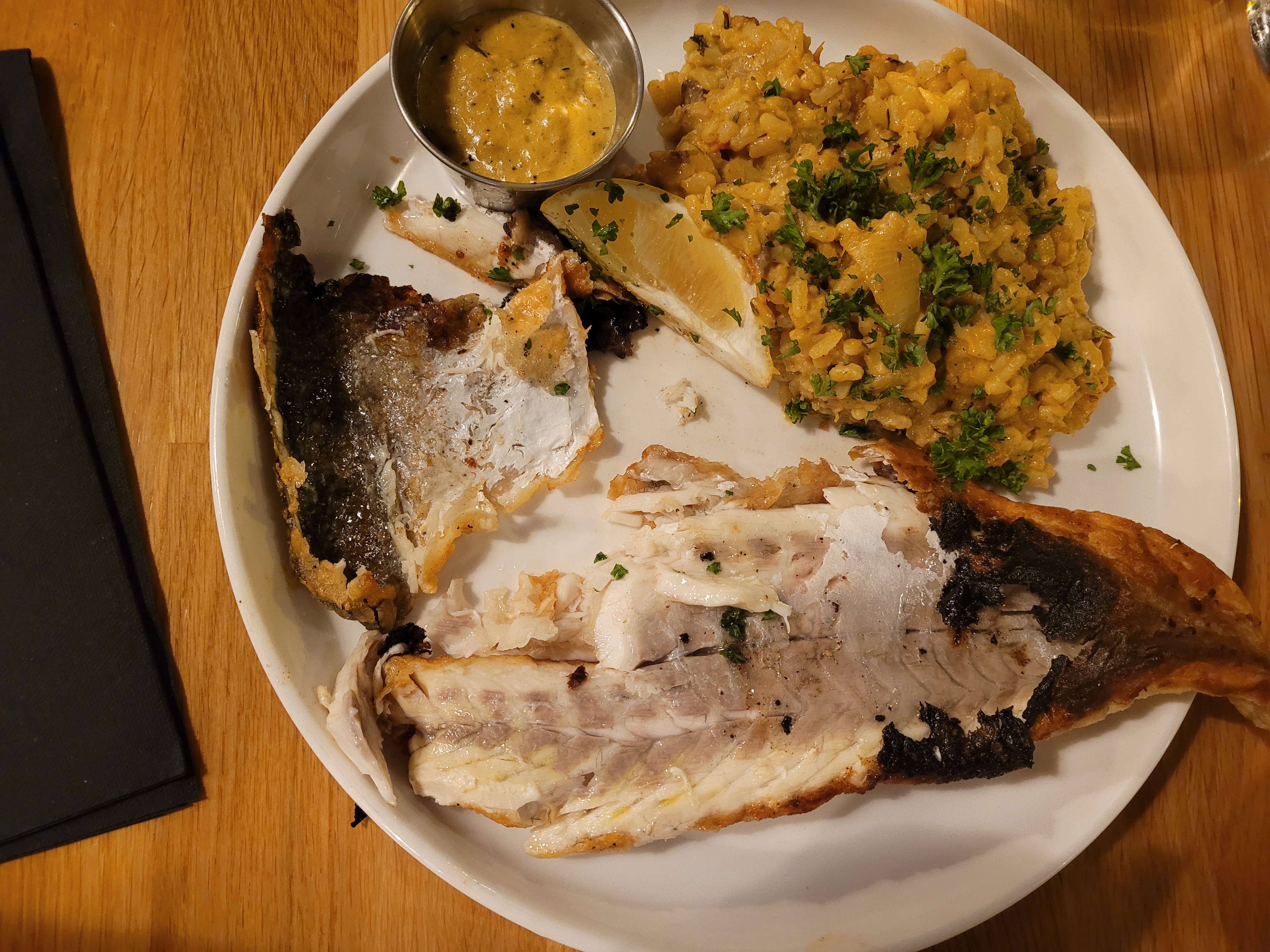 Très bonne cuisine. Le bar était de bonne qualité et la cuisson parfaite. Mes amis à table avaient différents plats de viande.