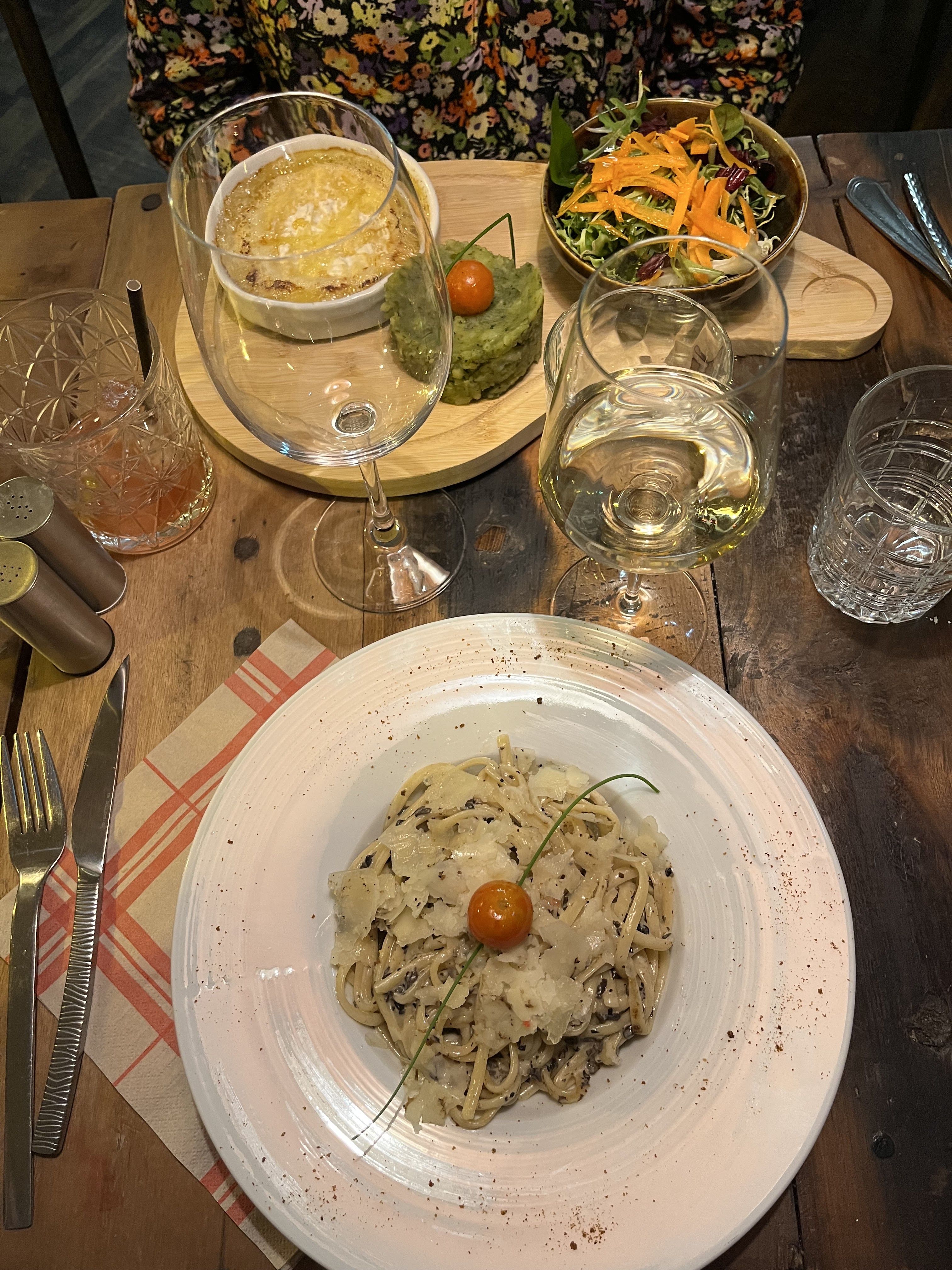 Venue seule pour le travail je me suis faites plaisir en commandant des pâtes aux truffes qui avait juste l'odeur aucun goût harchi cuites et pas du jour c'était du réchauffer de réchauffer énormément grasses et fades surtout ne prenez pas ce plat pour 21 euros . Le dessert un bannoffea par contre là excellent jai adoré. En gros 35 euros pour avoir que le dessert de bien un peu cher quand même..