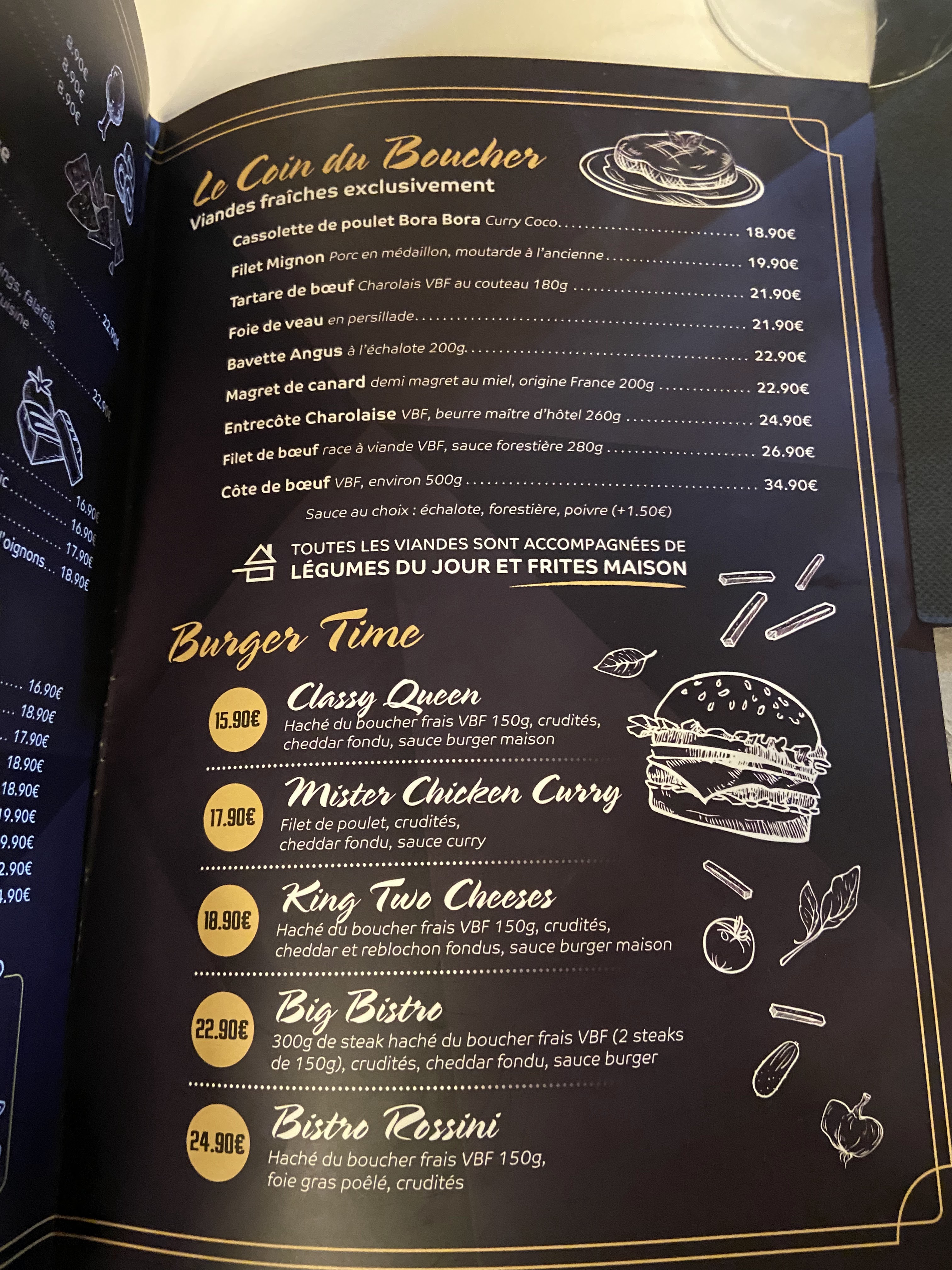Aucun choix vege sur les burger, c’est dommage … une option vege avec remplacement du steak par un steak végétal n’est pas difficile à mettre en place et permettrait aux personnes végétarienne de pouvoir manger comme les autres ..