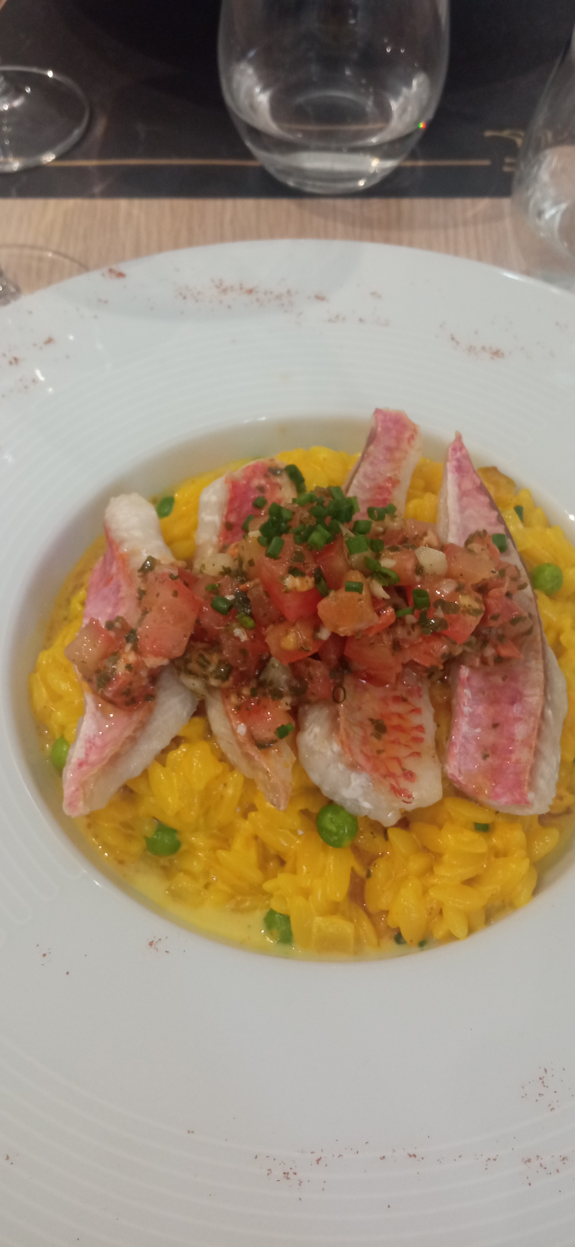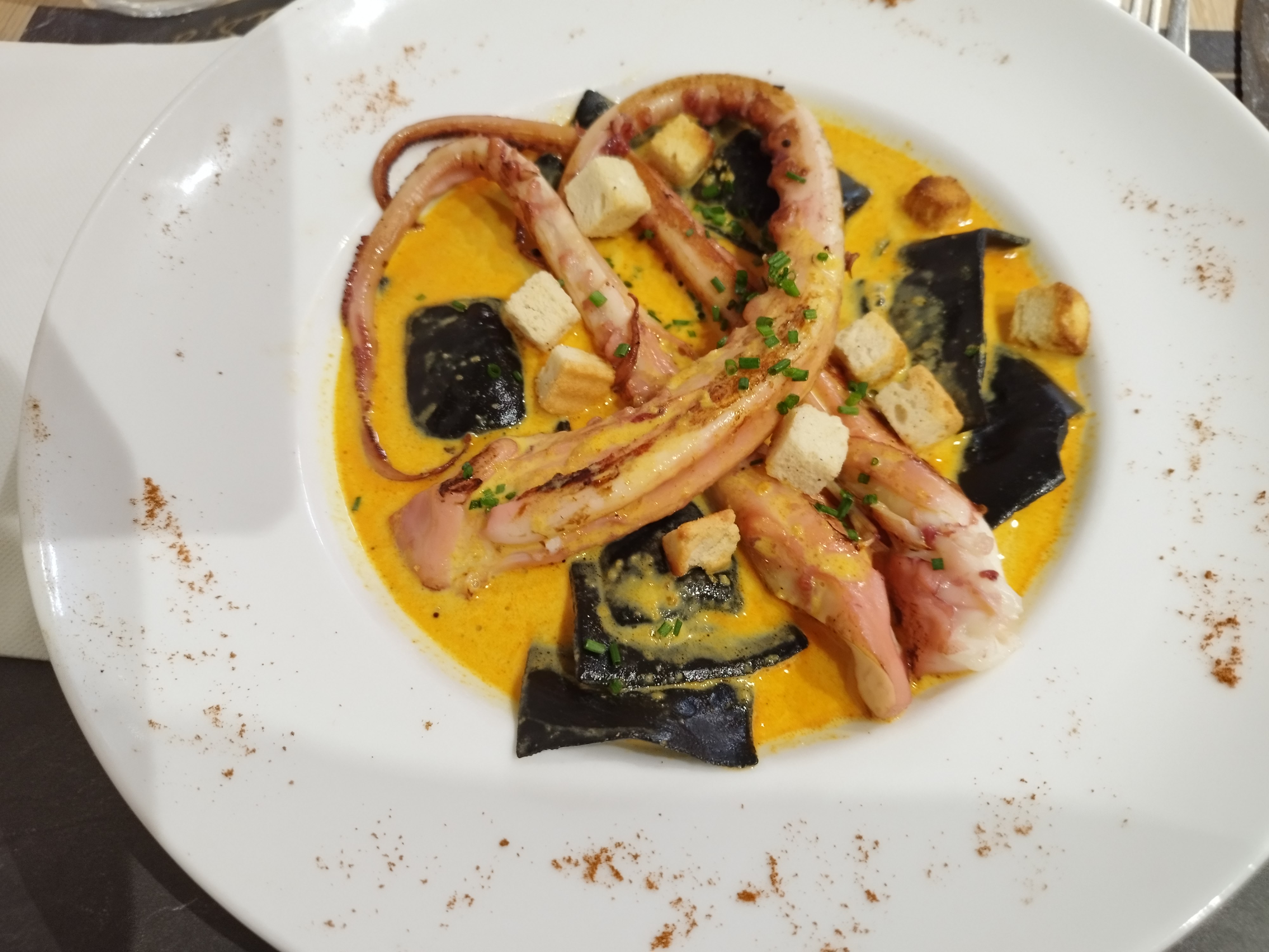 Je ne veux pas porter un jugement définitif.Le plat que jai mangé : daurade aux raviolis nero jus bouillabaisse ne m'a pas enthousiasmée. Je voudrais donner u e seconde chance a ce petit restaurant fort sympathique au demeurant. Les serveuses sont absolument charmantes efficaces et à l'écoute. Je nai pas eu le temps de goûter aux desserts qui étaient pourtant bien appétissants et tres bien présentés. J'espère donc pouvoir bientôt relever cette note.