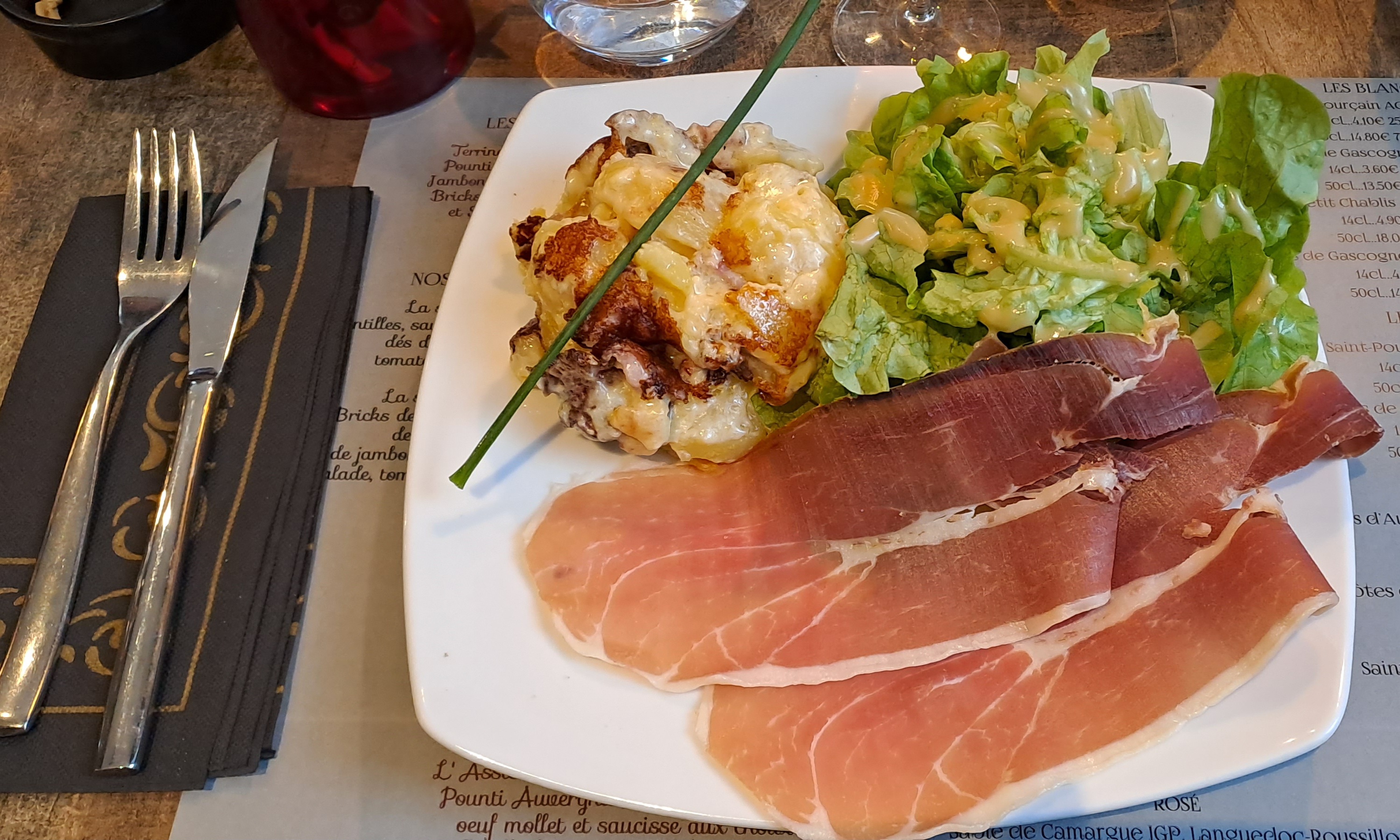 Nous avons pris l'assiette découverte. Elle est très bien garnie et les produits sont bons. Ne cherchez pas : c'est un restaurant à faire !