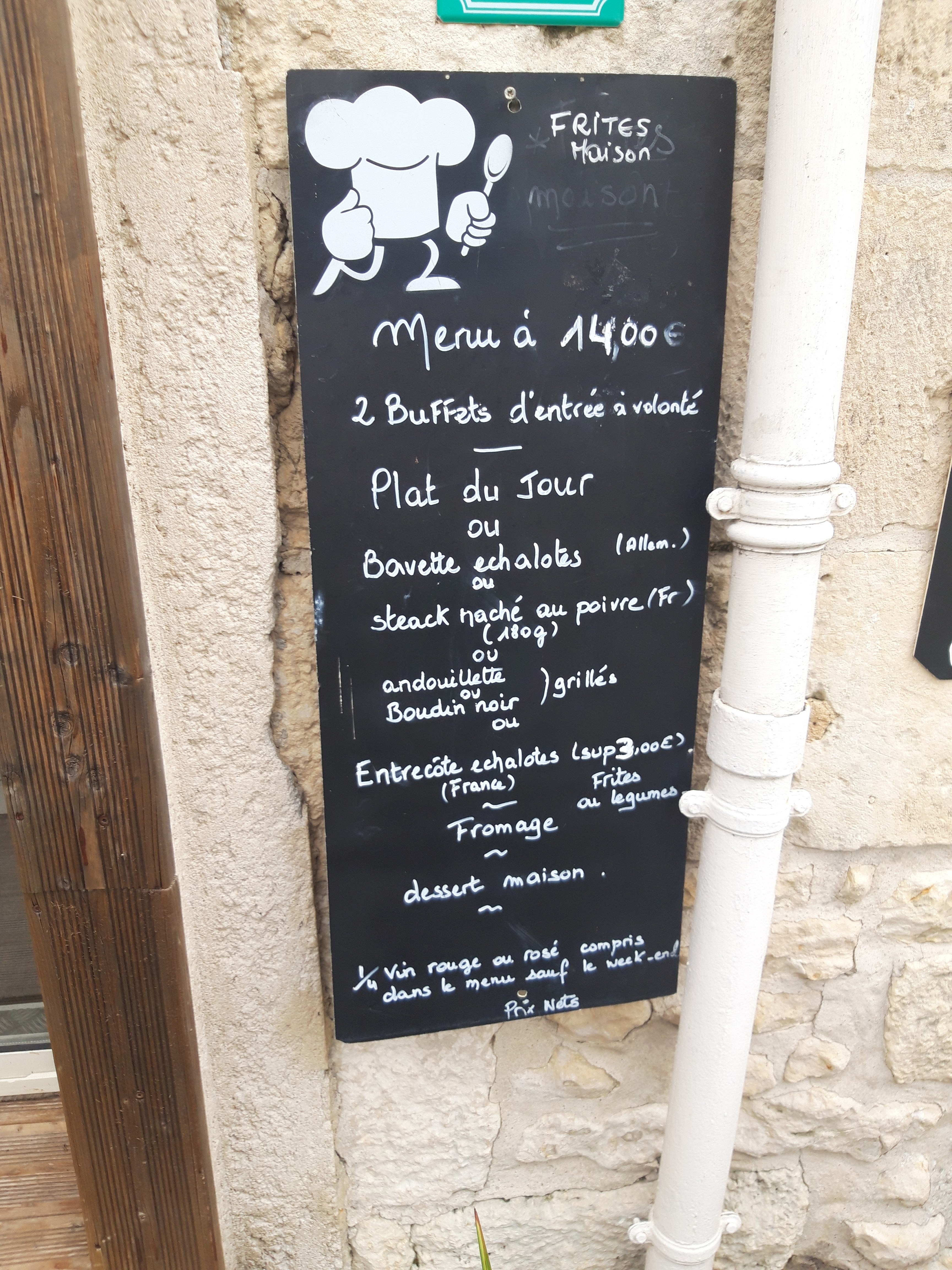 Sur la route, nous nous sommes arrêtés au Bistroquet qui est un Restaurant PARFAIT. Merci infiniment pour l'accueil reçu des deux serveuses et un grand, grand merci à Mélanie qui nous a concocté un plat de noix de St Jacques à l'anis qui a été une tuerie😋 Pour 18€ (menu à 15 + 3 pour les noix), nous avons pu profiter d'un buffet d'entrées très bien achalandés, d'un plat (poisson, grillade, plat en sauce) et divers légumes dont des frites maison, d'un plateau de fromages, d'un dessert et d'1/2 pichet de vin: que du bonheur😁🤗 Ne changez rien et encore merci pour ce succulent repas