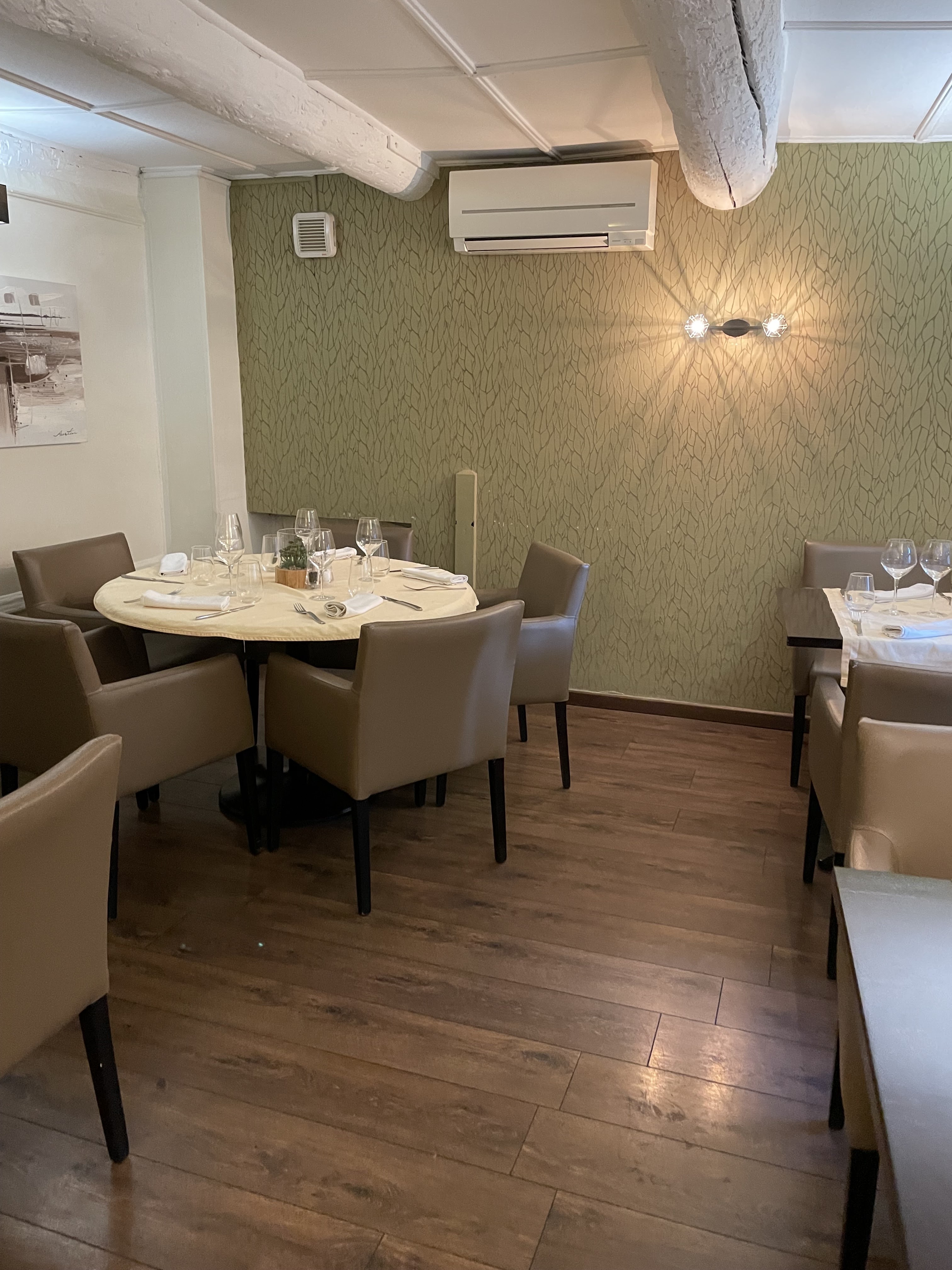 Salle en voûte très agréable, petit bémol pas prévenu qu'il n'y avait plus de souris d'agneau, cela n'empêche pas la qualité des plats restants. Serveur agréable.pas beaucoup d'attente entre commande et l'arrivée du plat. Légèrement onéreux, de temps mettre le prix dans la qualité cela fait du bien.