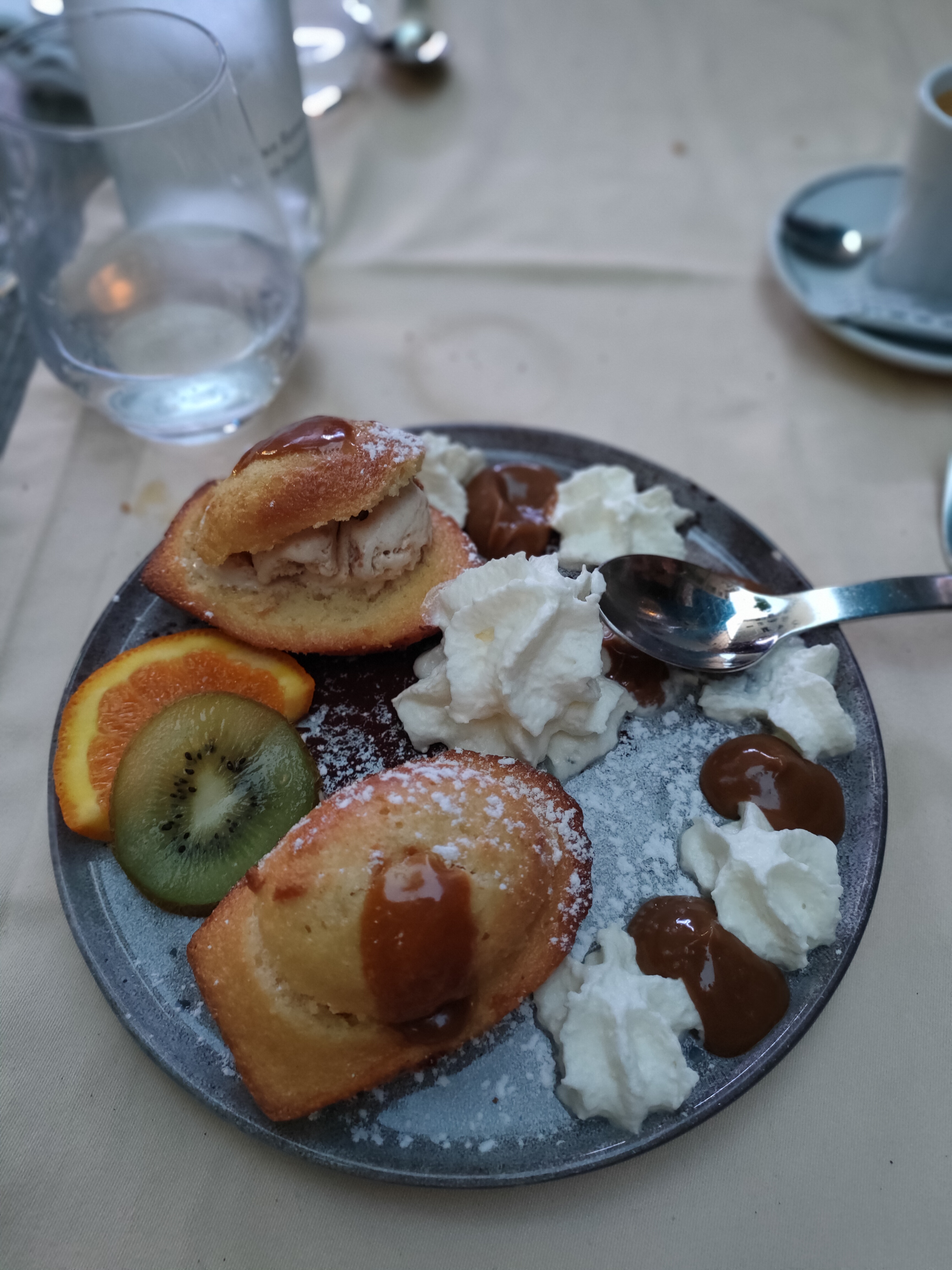 Excellent dîner, servi sur nappe et serviettes en tissu. La souris d agneau fondante à souhait, la poêlée de poulpe, coquilles st jacques et crevettes délicieuse, Madeleine speculos façon profiteroles originale et rafraîchissante et pour finir un petit limoncello pour digérer offert par la maison. Adresse à retenir, nous y reviendrons avec grand plaisir !!
