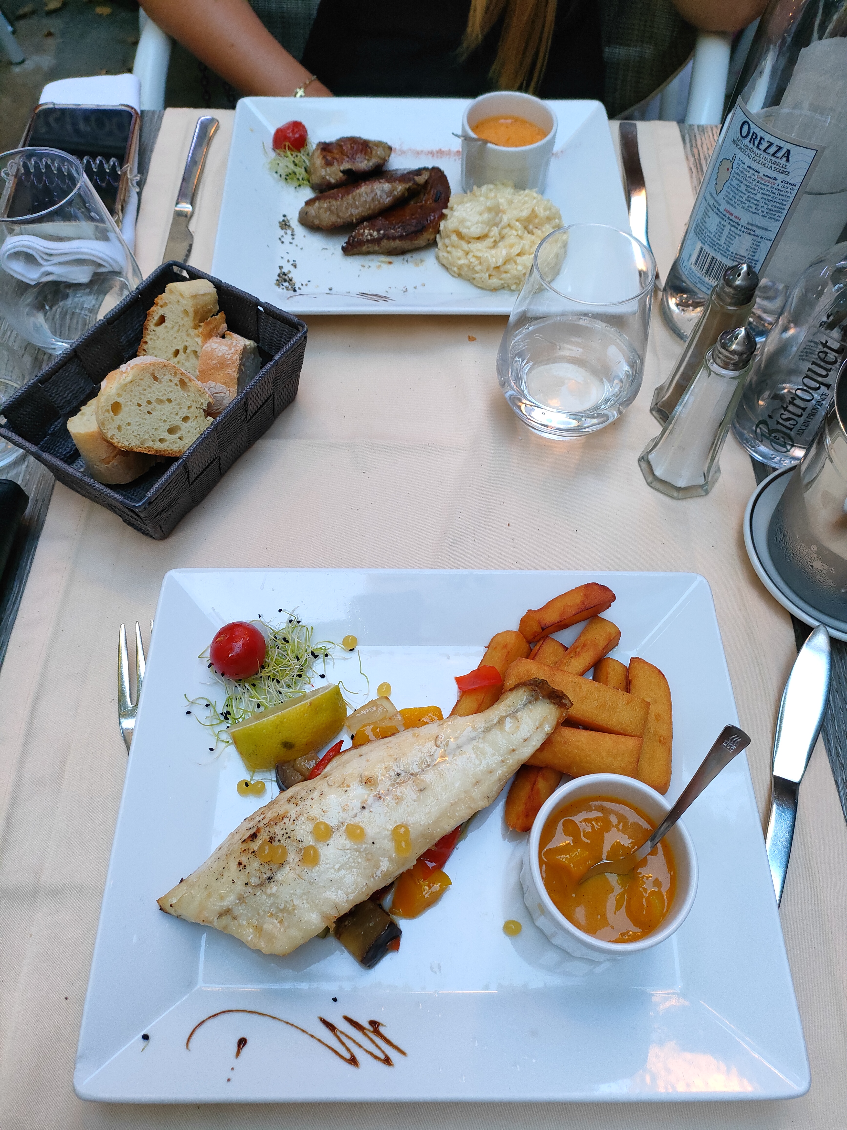 Nous y avons dîné avec ma soeur en terrasse et avons pris le loup de mer et la presa de cochon. Nous étions très satisfaites de nos plats qui étaient copieux et le service était aimable et chaleureux.