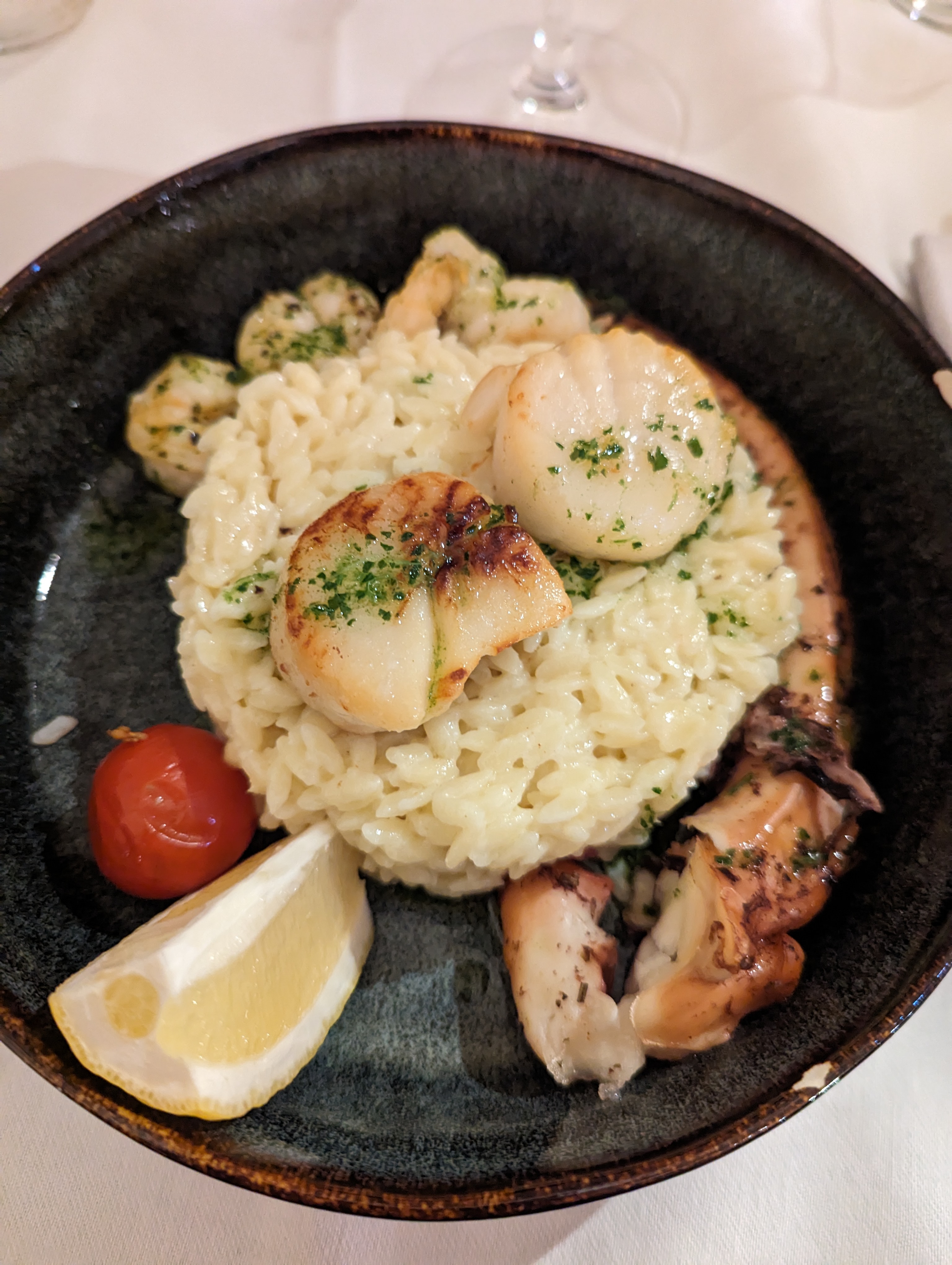 Excellent il y a quelques temps. La qualité a vraiment baissé. Le risotto aux gambas et saint jacques baigné dans un demi centimètres d'huile d'olive... Le changement de chef qui a du être effectué récemment n'est vraiment pas une réussite