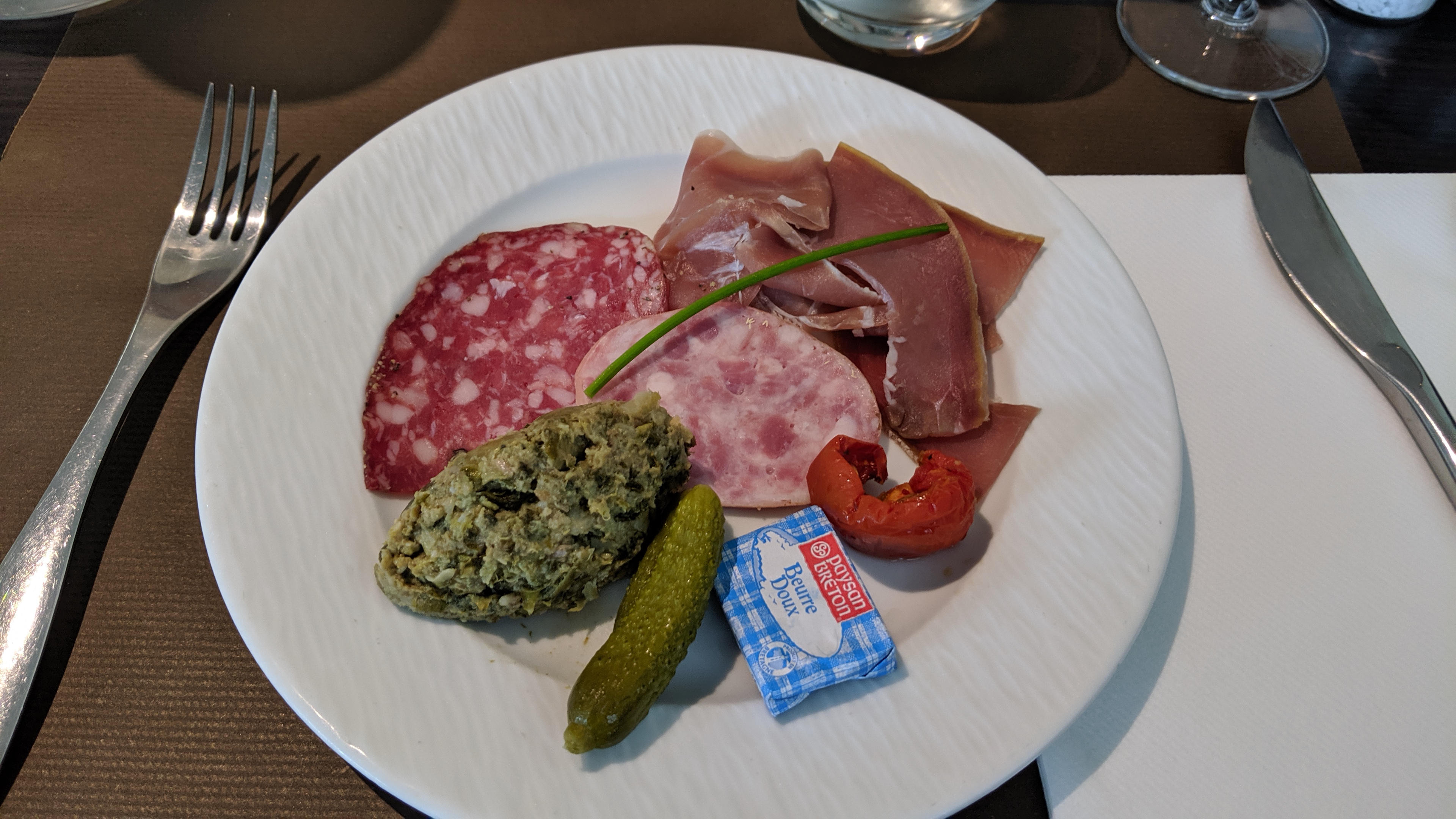 Ce lundi 26 août midi, buffet d'entrées pas attirant, melon limite, pâtes au saumon beaucoup trop salé, choix très limité de dessert. Penser à investir dans une vitrine réfrigérée afin de supprimer ces cloches disgracieuse