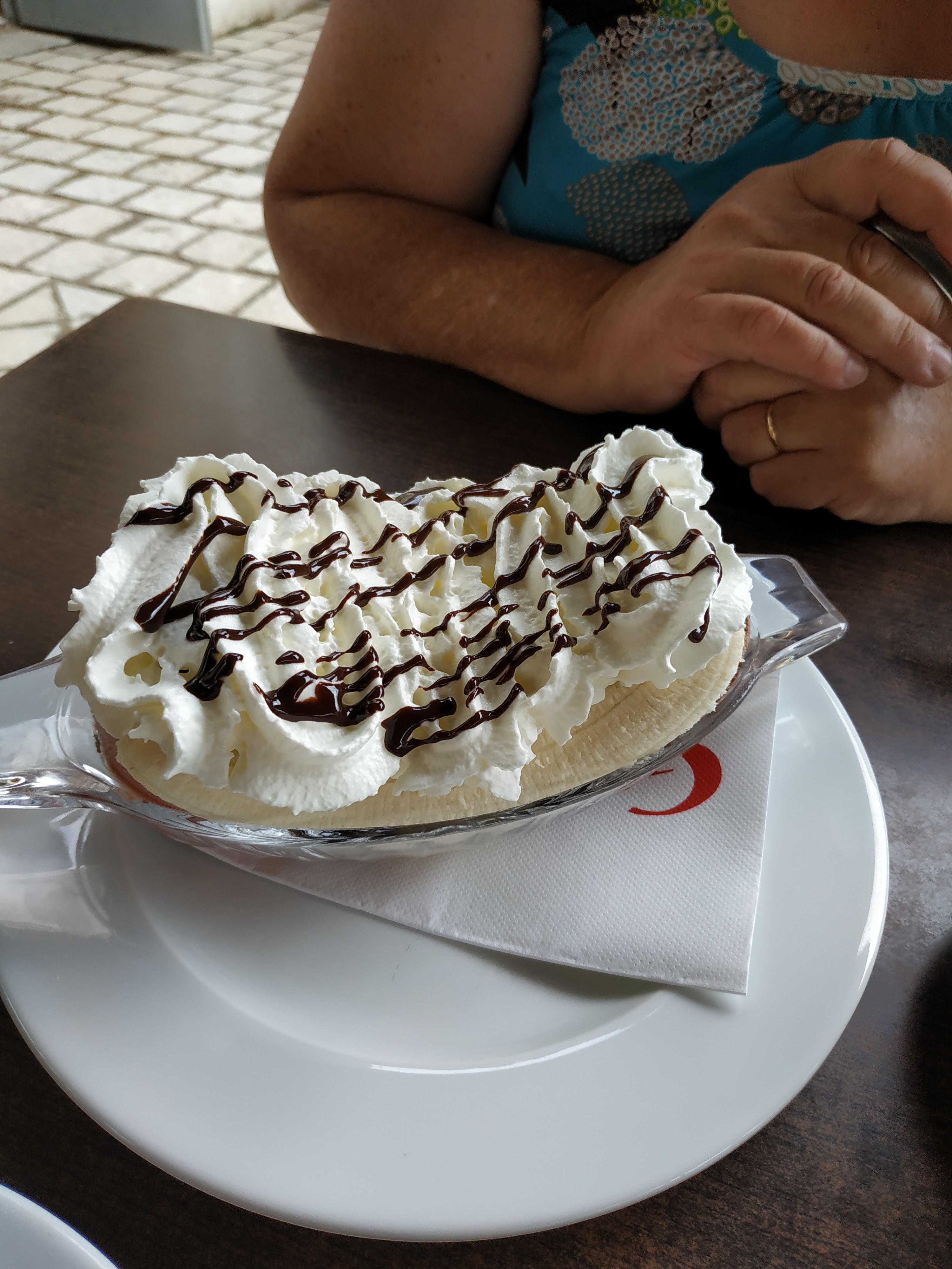 Passage en avril 2024. Nous avons retrouvé un morceau de verre dans la boule de glace à la vanille. Nous en avons informé la serveuse qui a pris le morceau de verre. Nous avons attendu 10mn , mais personne n est venu s escuser. Nous avons été très choqué. Et bien déçu