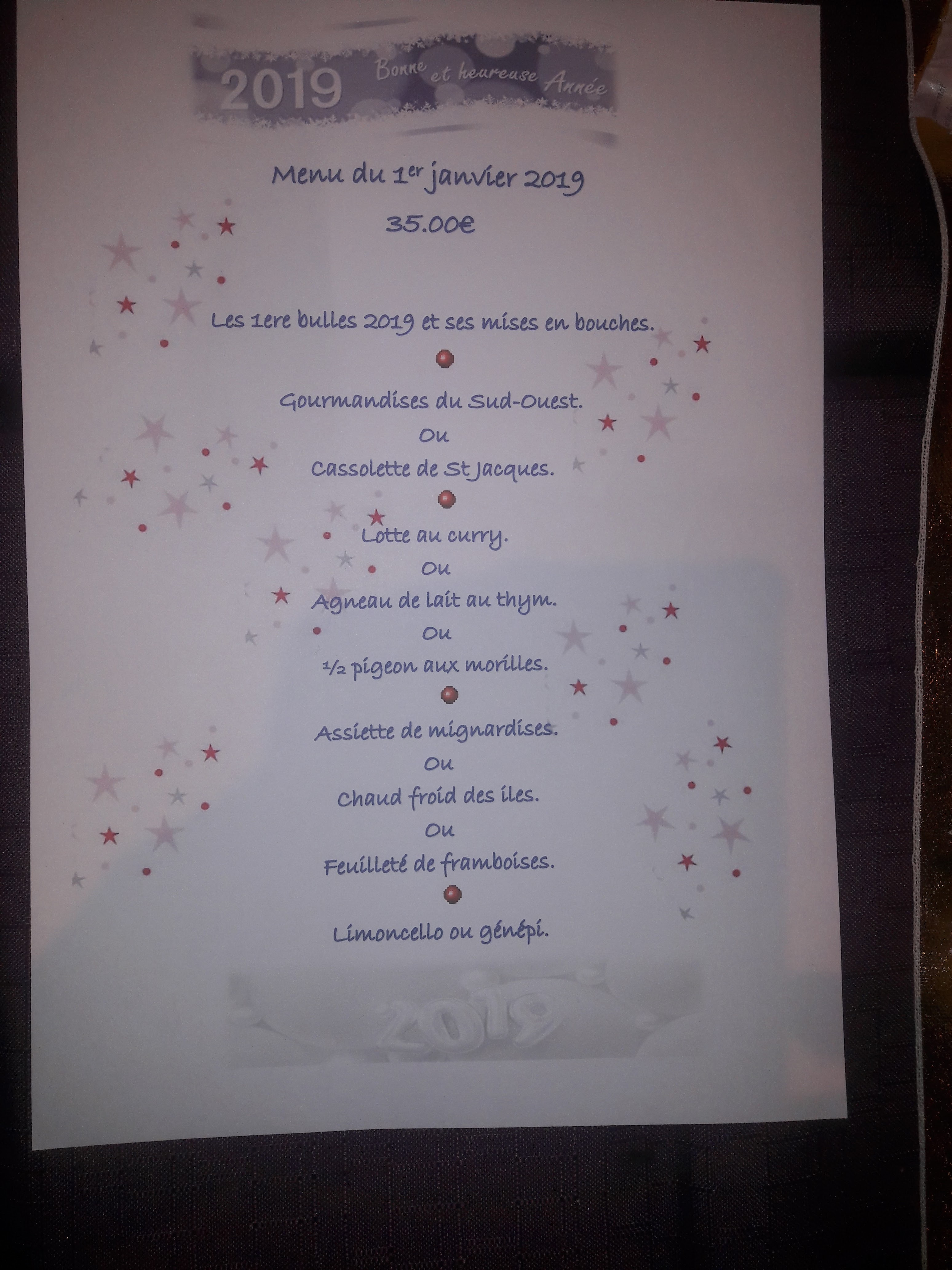 Au top vous ne serez jamais déçu, un menu complet du jour à 18€ , une grande convivialité et un personnel de qualité. En photo le menu du jour de l'an.