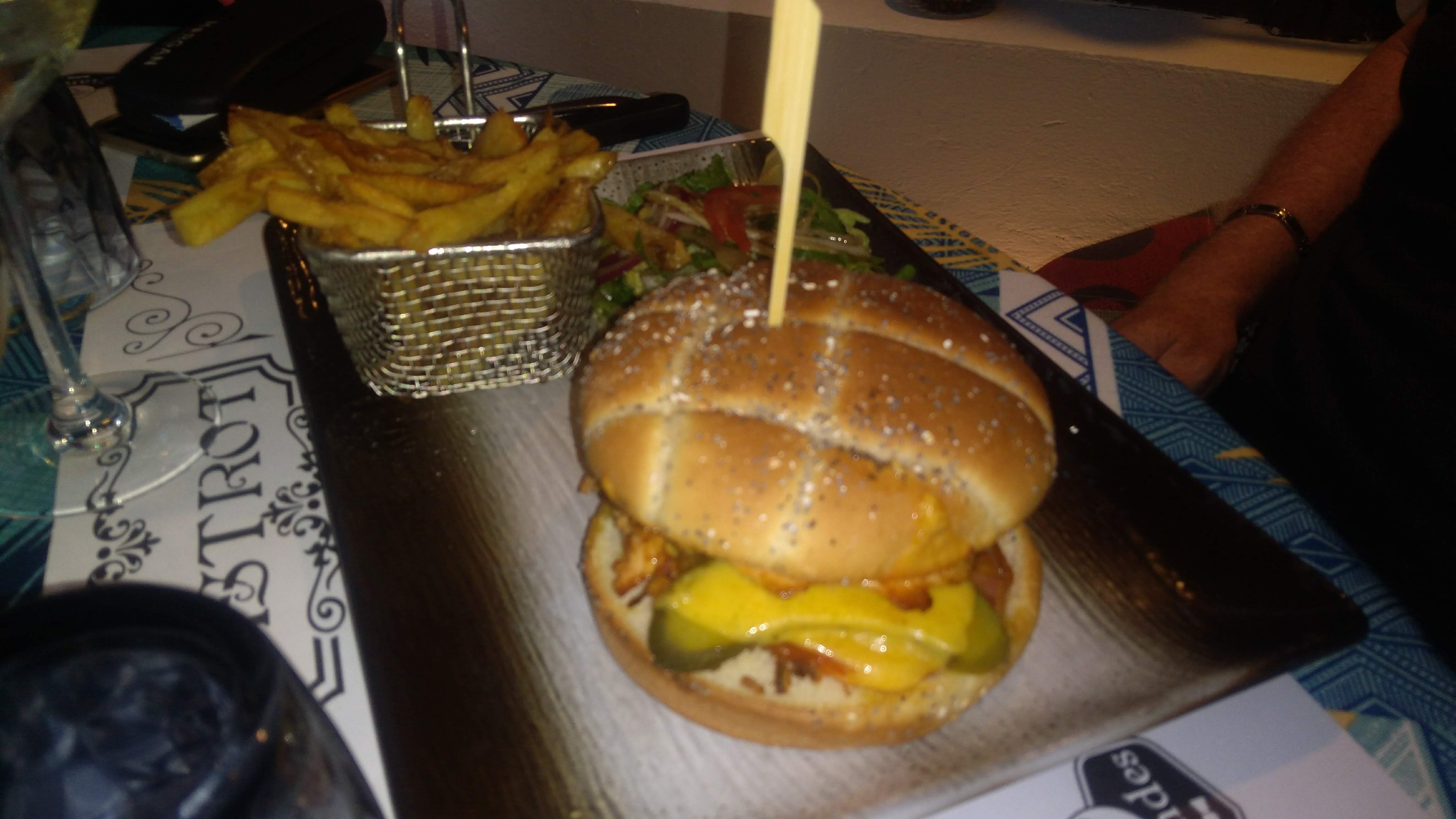 Un très bon moment passé au Bistrot : de la bonne nourriture (mention spéciale au burger de la mer !) mais surtout un accueil chaleureux par Isabelle. Je recommande !