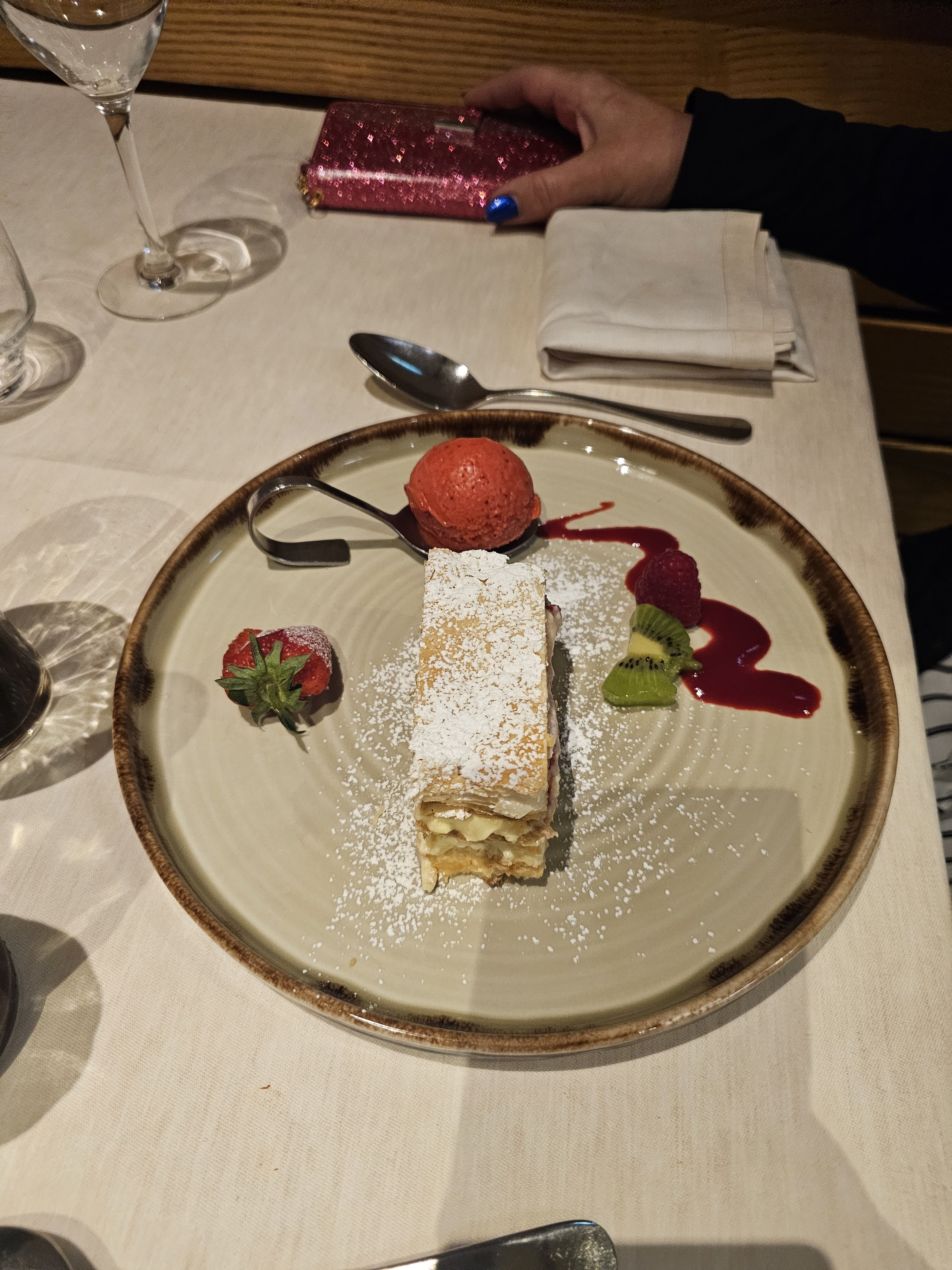 Repas d’anniversaire avec des amis. Huîtres en entrée Homard gambas et saint Jacques Vacherin en dessert! Parfait 👍🏼 La patronne a offert le champagne pour l’anniversaire de notre ami! Du jamais vue 🤗bravo