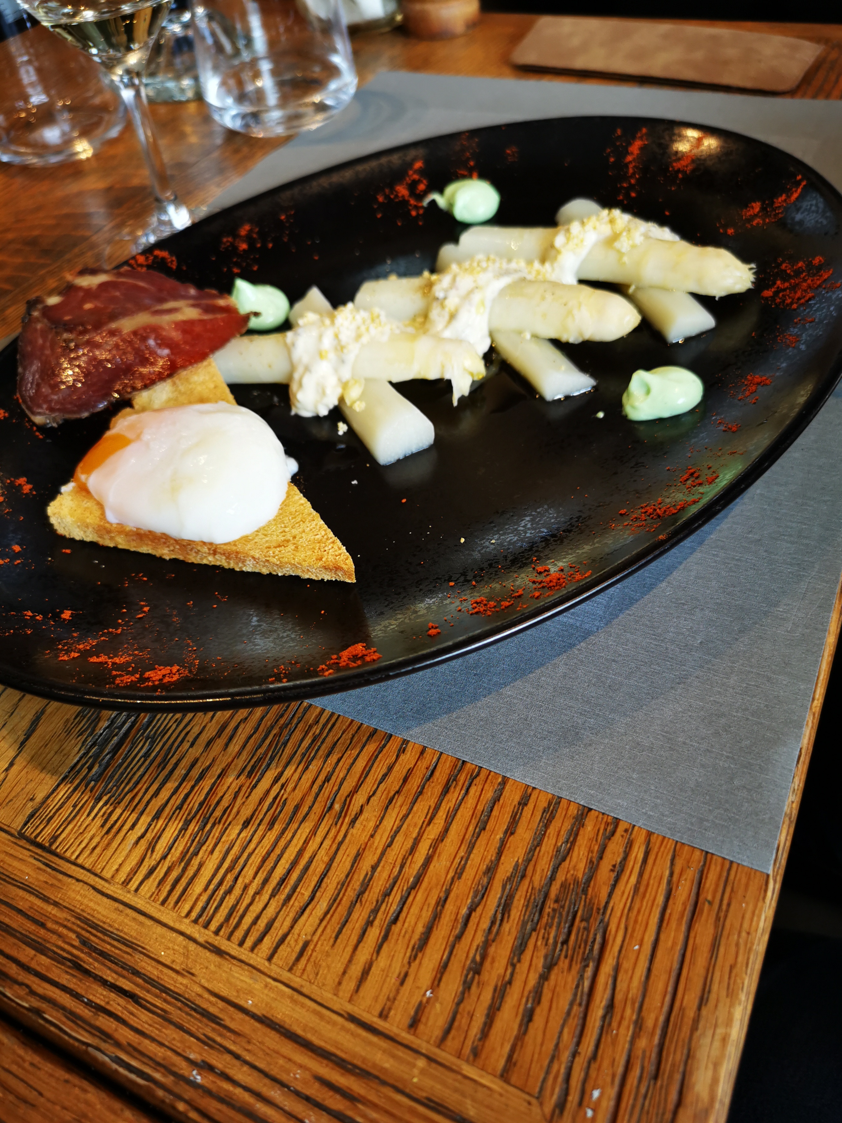 Repas du début à la fin topissime,jolie présentation des plas, produits de qualité et de saison, large choix de vins ,cadre et personnel agréable.