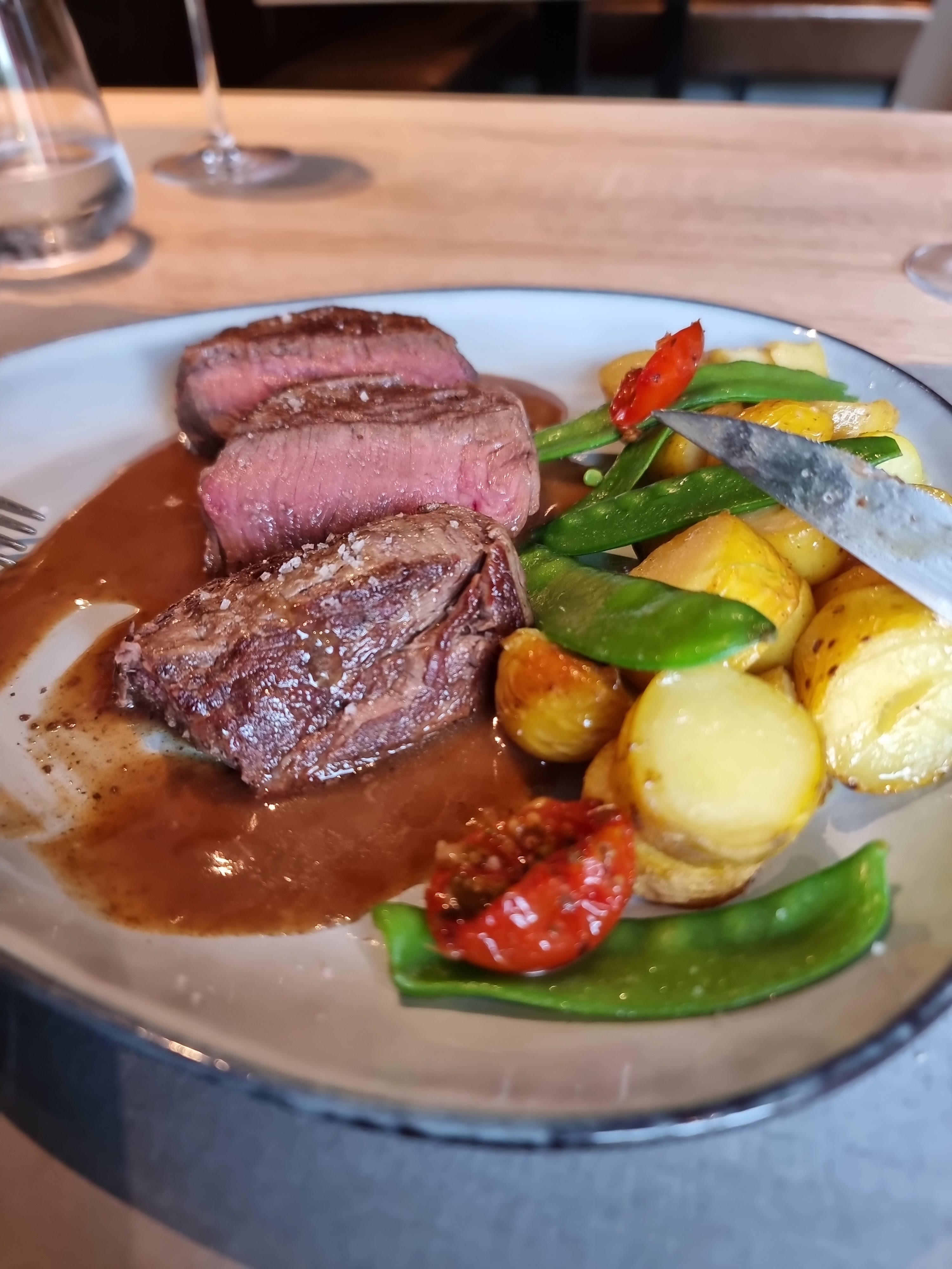 Toujours aussi bon 😋!belle présentation des plats ,équipe aux top!👍l entrée parfait de petits pois et bœuf à la chateau brillant un délice