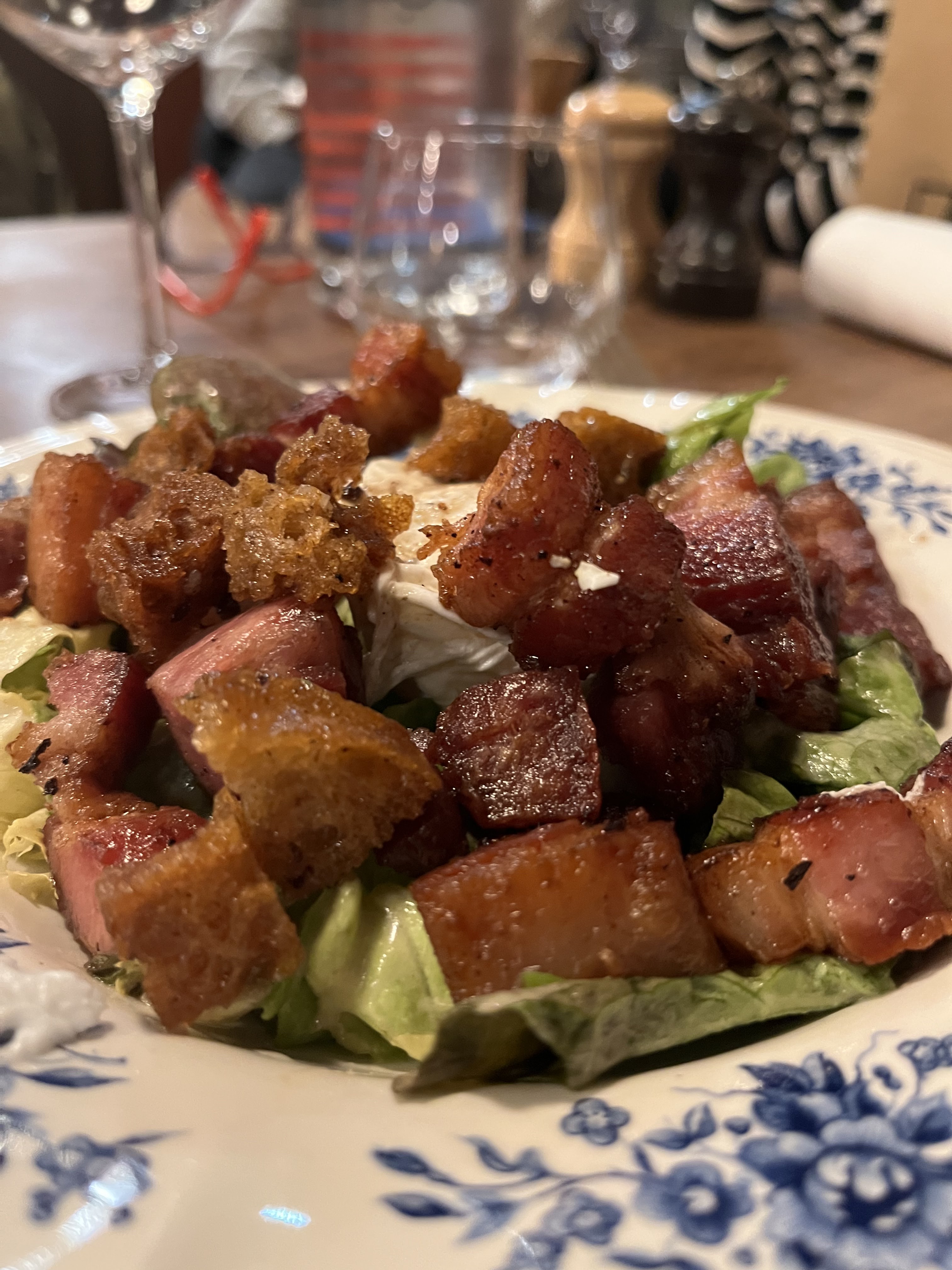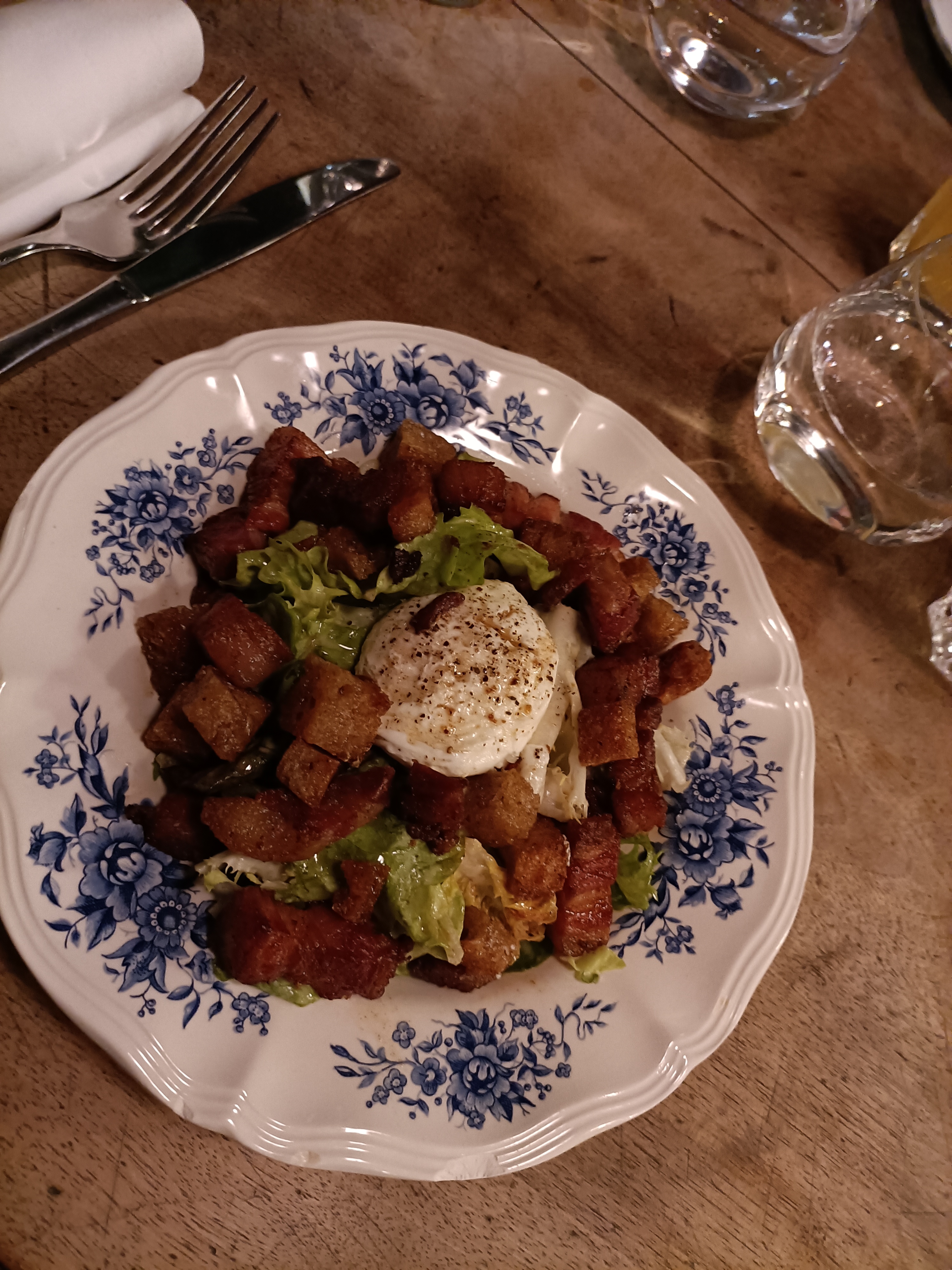 Déception. Salade lyonnaise pour 3, servi avec uniquement 2 oeufs, demande d'un 3éme oeuf du coup, il arrive mais froid. 2éme plat andouillette servi avec pommes de terre certaines pas cuites et froides