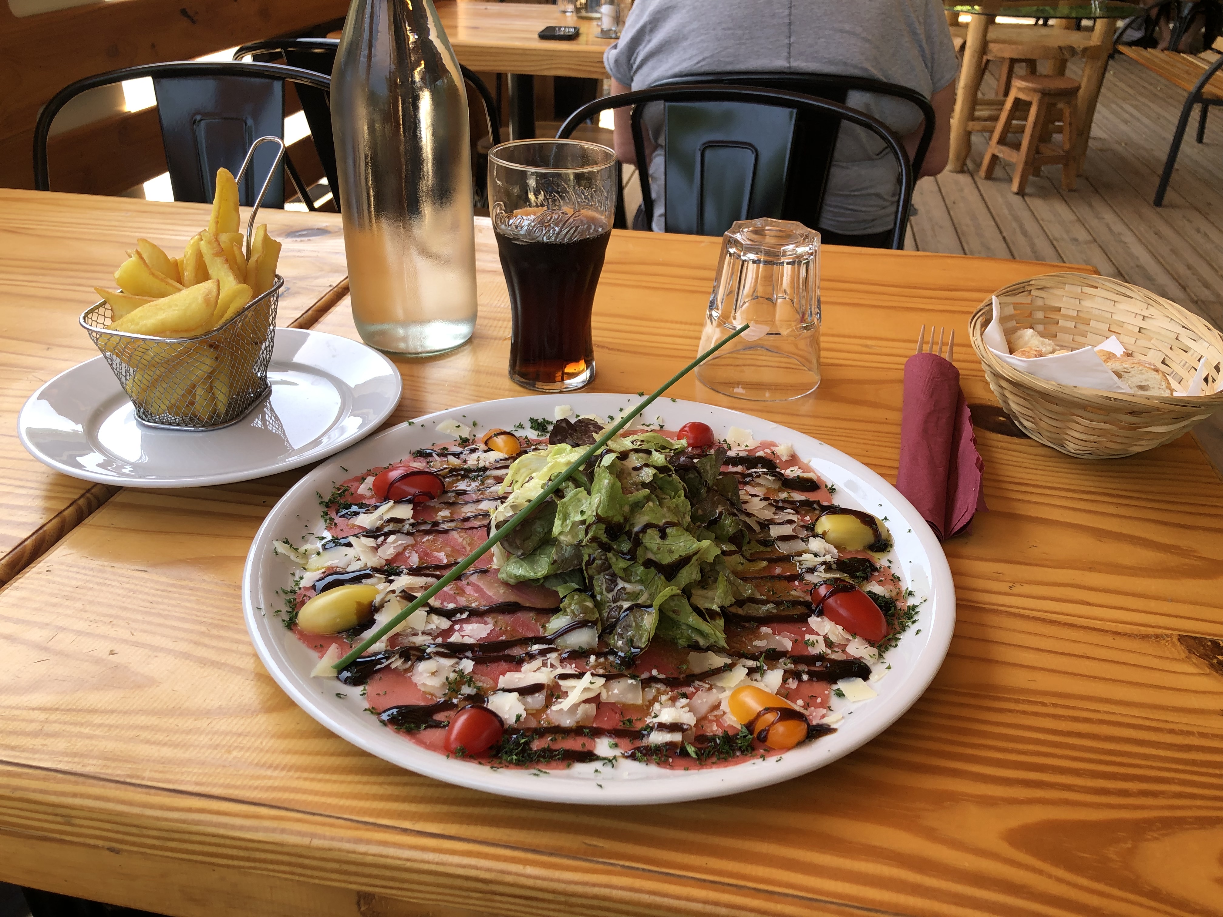 Patron sympa et accueillant terrasse agréable et plats bons et copieux... Malheureusement ce soir là, grosse migraine, j'ai apprécié de pouvoir emporter mon plat, car étant nauséeuse, nous avons quitté l'établissement précipitamment... Nous recommendons fortement cet établissement.