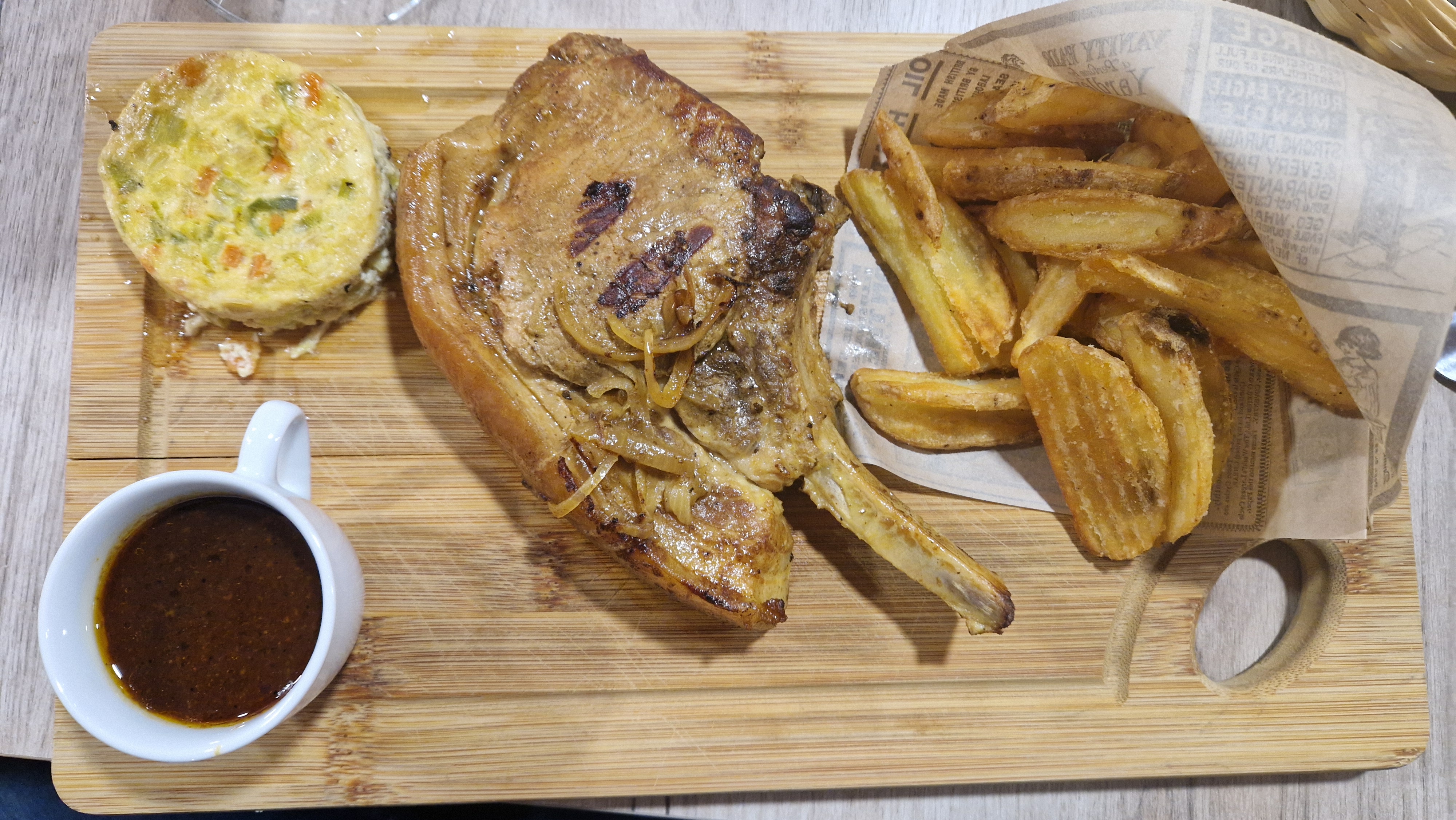 Amabilité au summum !! Le restaurant est assez grand avec une très belle pièce une jolie déco soigné sous la surveillance des chouettes. Les toilettes sont propres La carte est très varies avec beaucoup de choix de vin. Nous avons pris en apéritif La planche mixte de la charcuterie et du fromage. Très copieux !! C'était délicieux même nos 2 filles ont t'apprécié. Nous vous conseillons le plat Tomahawk servi avec une délicieuse sauce. Le menu enfant est à 8€ (soit steak haché soit aiguillette de poulet servis avec des frites et de la salade + une boule de glace) Franchement nous sommes ravis d'avoir trouvé ce bistrot sur maps et d'avoir pu passer non loin de la forêt de Bercé. Merci encore pour votre accueil et pour vos conseils. A bientôt