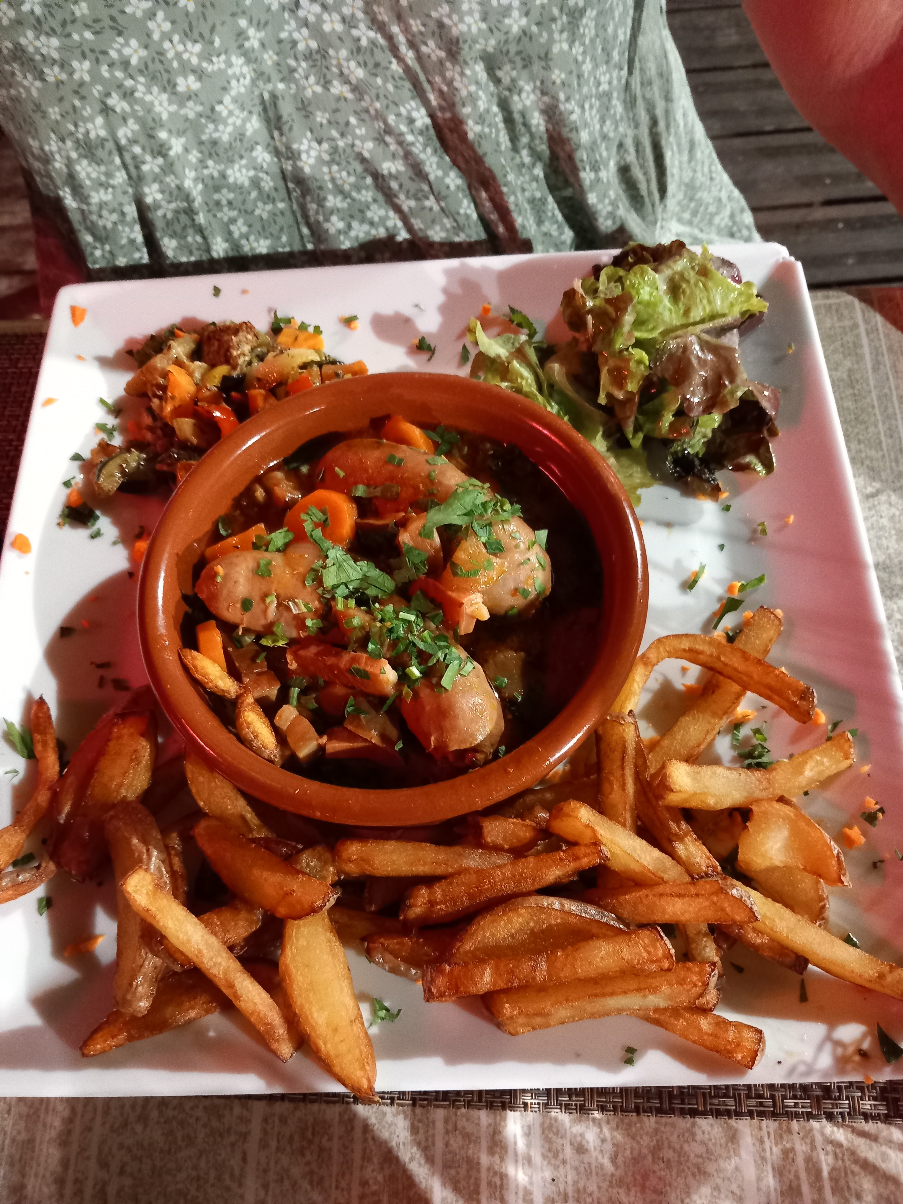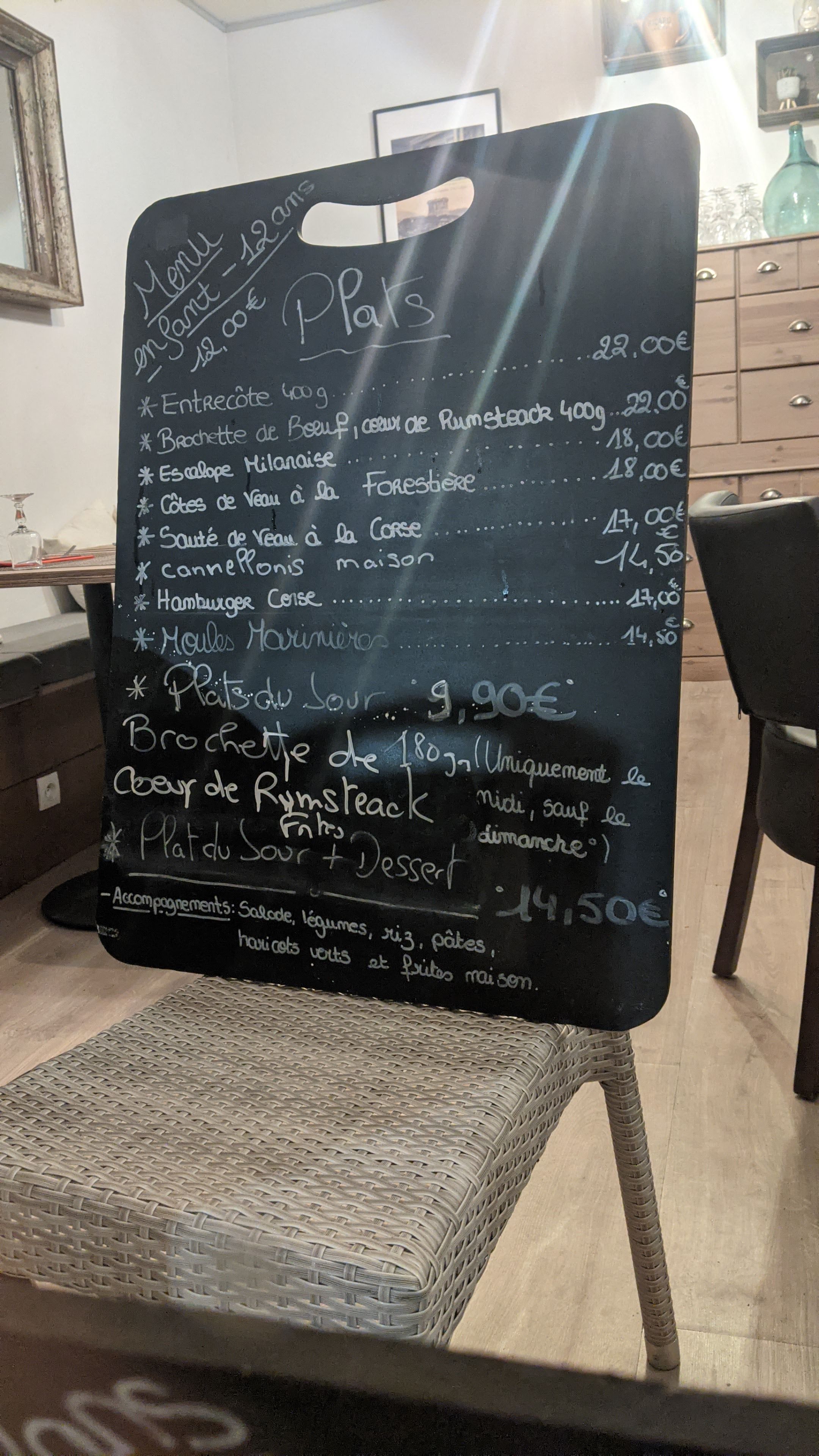 Nous avons beaucoup aimé les spécialités Corses dans des cassollettes et surtout le moelleux à la châtaigne ! Il manque un plat du midi pour un petit prix . Délicieux.