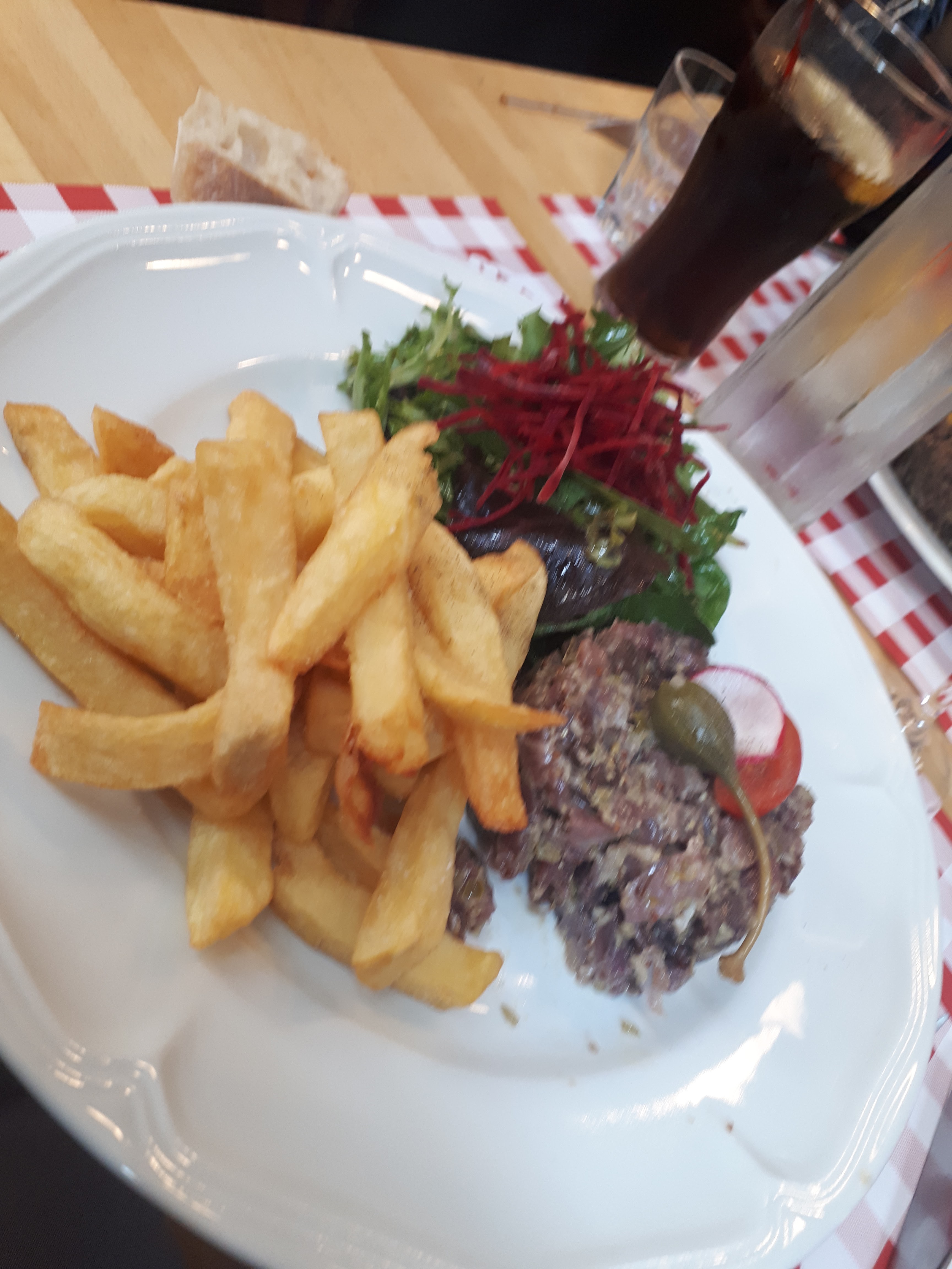 De nouveau un régal, équipe très sympa, accueillante et dynamique. Très bon steak tartare et profiteroles.. Bonne adresse sur Carcassonne À refaire de nouveau 😁