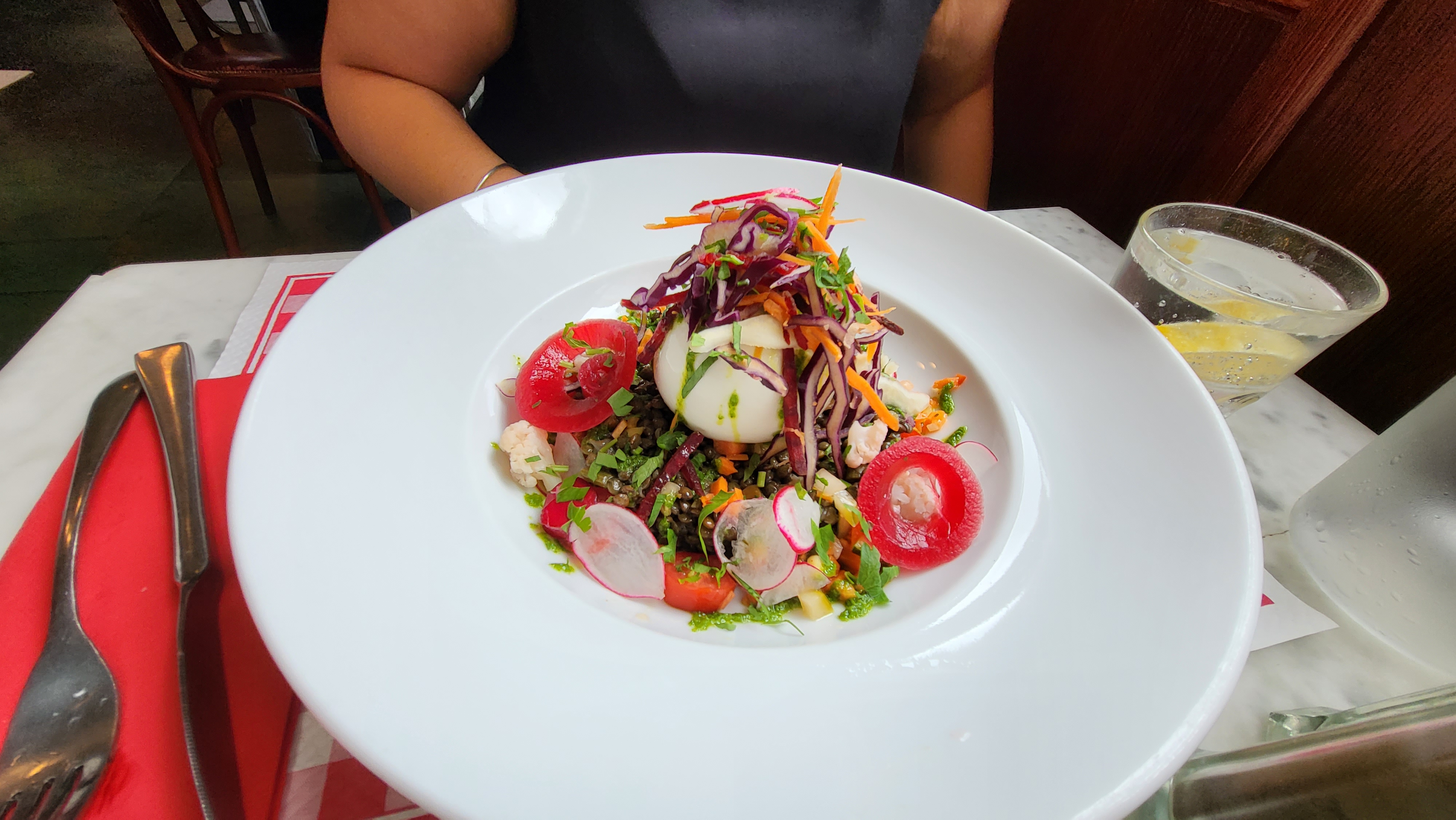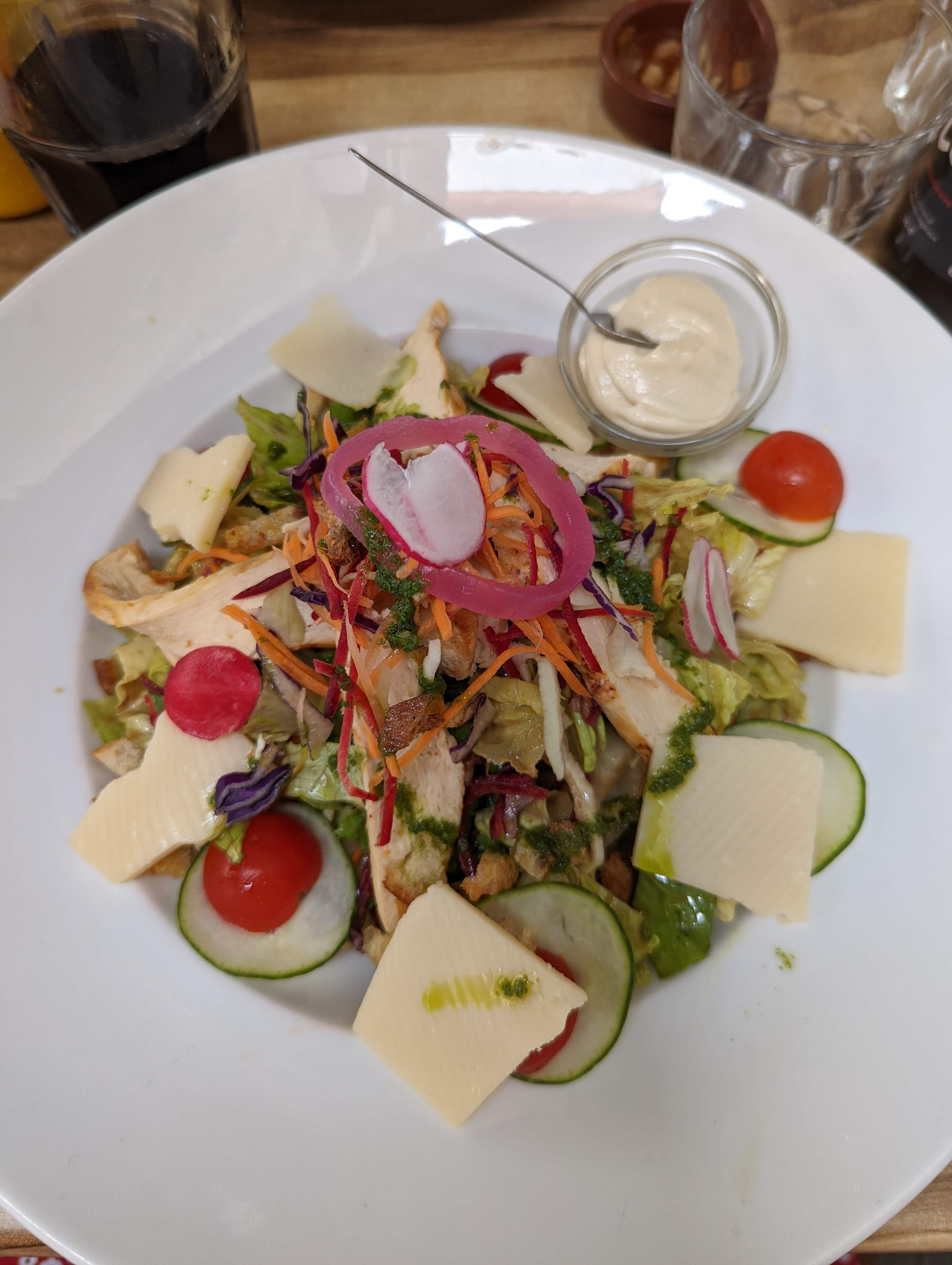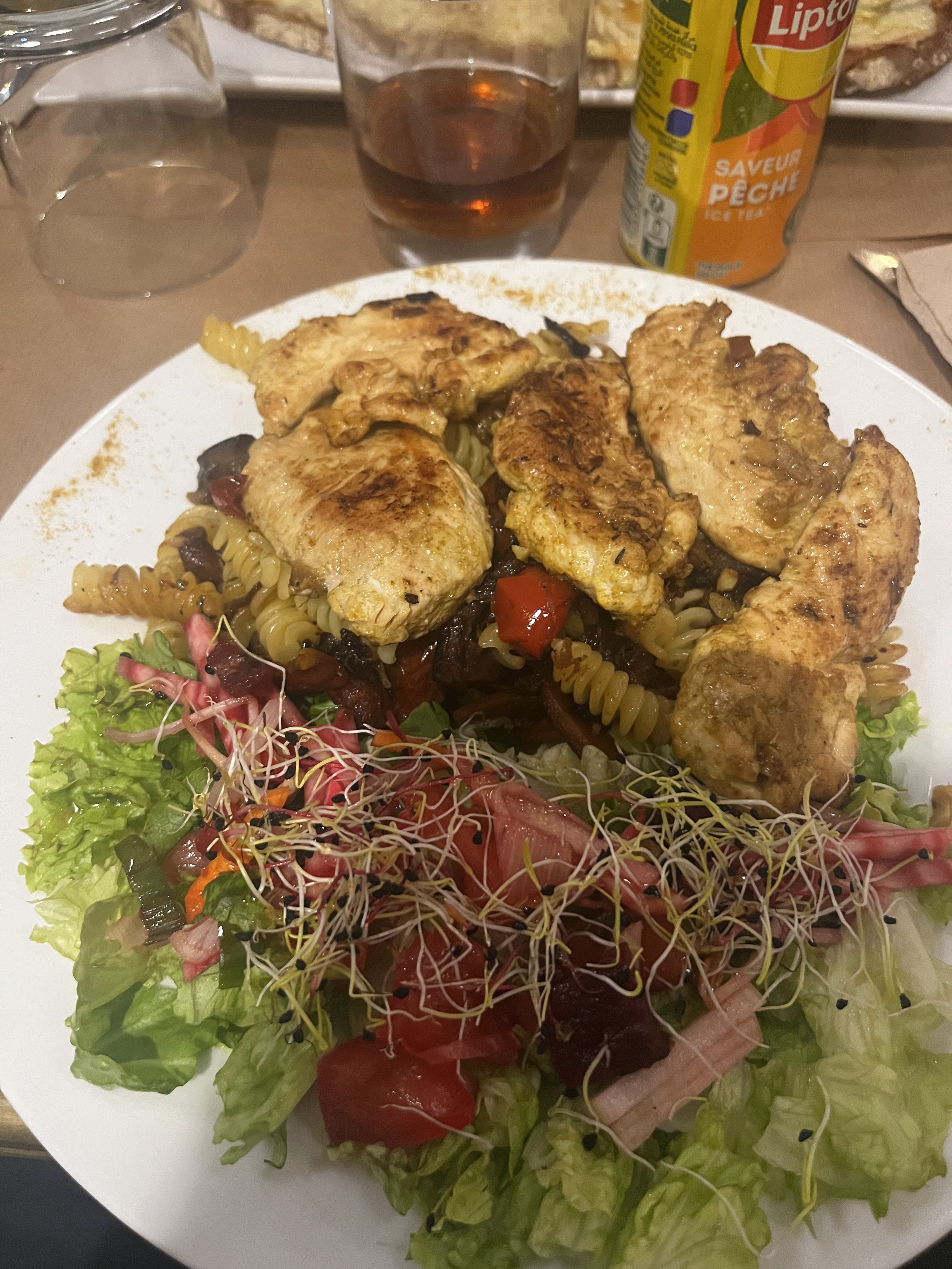 Loin de ces places à touristes où se masse les resto. Ce bistrot est au calme et on mange très bien. Salade légère pour moi, poulet fermier pour mon mari et un repas enfant. C'était bon et copieux. Parfait pour une journée de repos.