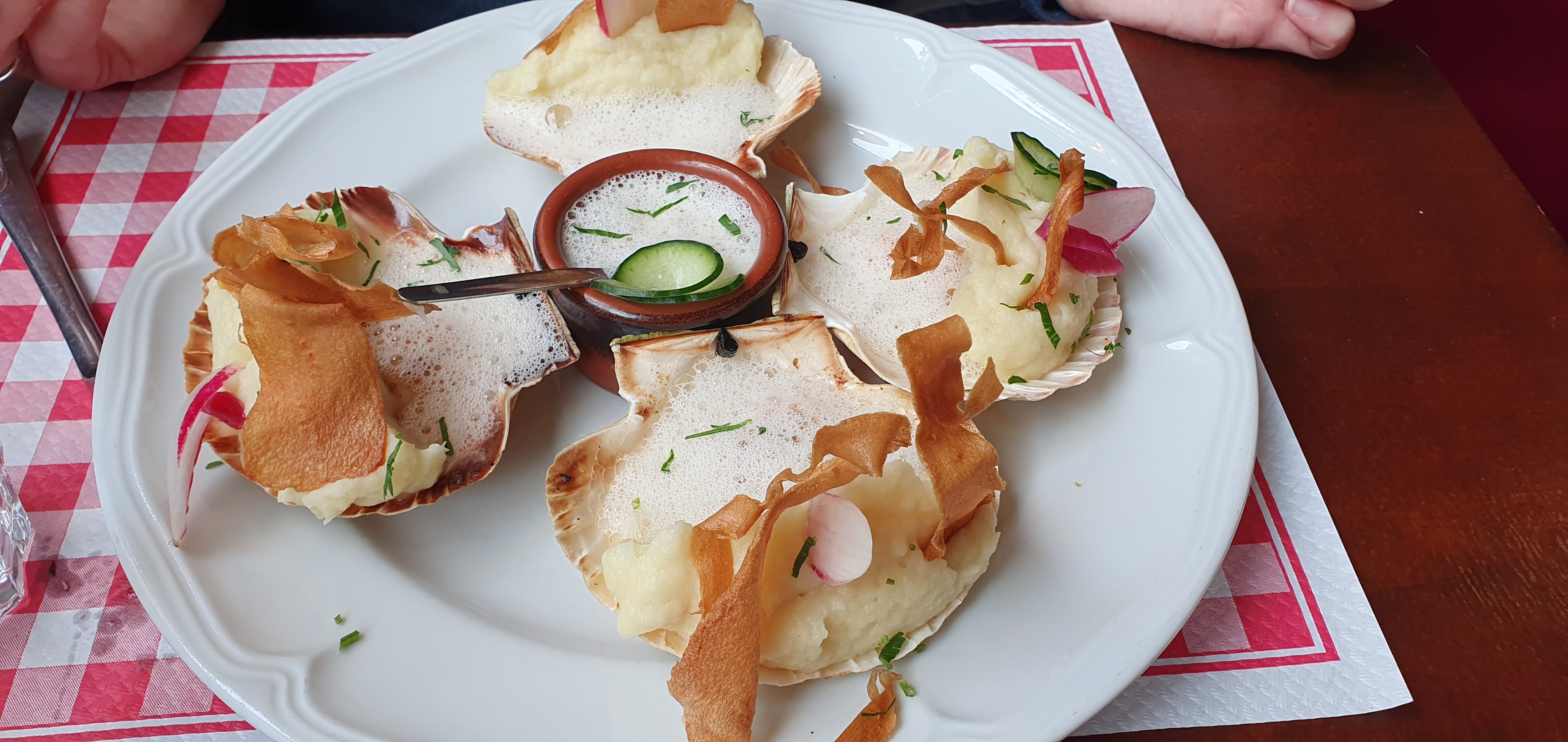 Nous sommes venus parce que les notes étaient bonnes. Je pense que le fait d y être allé en pleine saison en sachant que tous les resto manque de personnels et qu!ils étaient débordés explique le manque de professionnalisme dans la confection des plats. In se rends compte que les produits sont de bonne qualité mais par exemple en entrée j ai pris des couteaux... Ils avaient encore du sable. Et pour le poisson servi avec la sauce saupiquet, original mais une petite sauce saupiquet pour un si grand poisson et des frites, devrait être la cerise sur le gâteau. Du coup j ai fini mon poisson sans sauce. Un peu comme un poisson vapeur.... les frites maison très bonnes et mon conjoint à adoré sa viande.