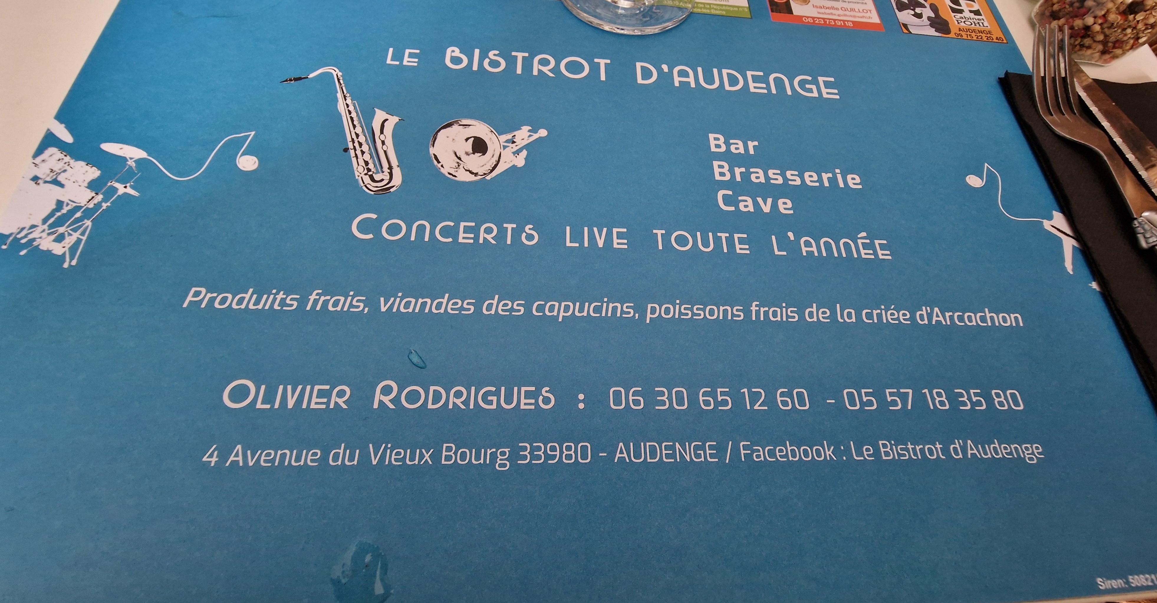 Soirée en famille vendredi soir avec un guitariste d'ambiance, très sympa. Le patron Olivier est vraiment marrant et d'une convivialité exemplaire de nos jours! Les mets proposés très savoureux, bons et frais. Je recommande vivement, nous reviendrons...👍 très bonne adresse à ne pas manquer sur Audenge...♥️