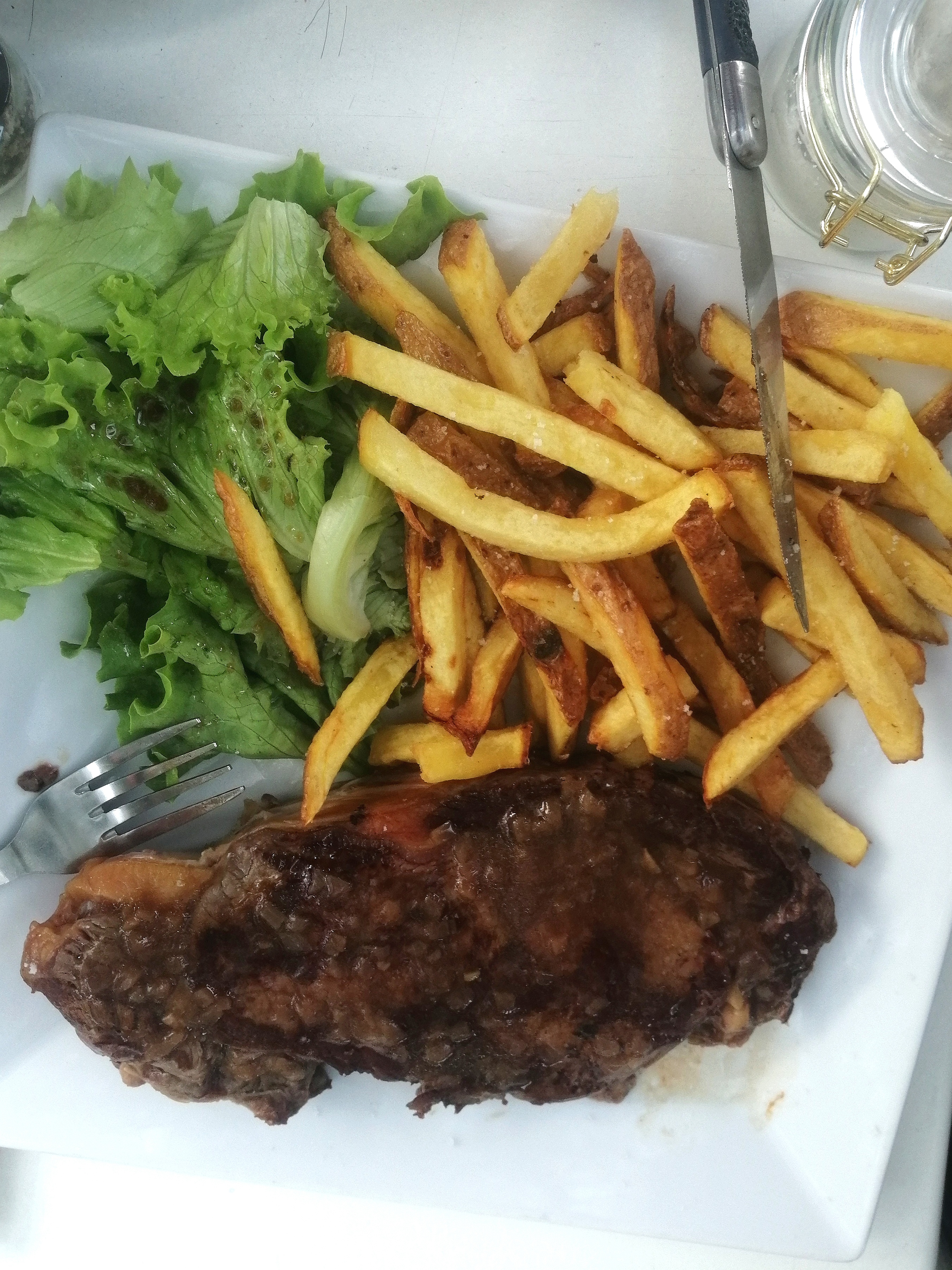 Le salade était confite...la viande normalement marinée était dure ... Le vin au verre proposé, venait d'une bouteille ouverte l'avant veille... Seul le poisson du jour était bon.