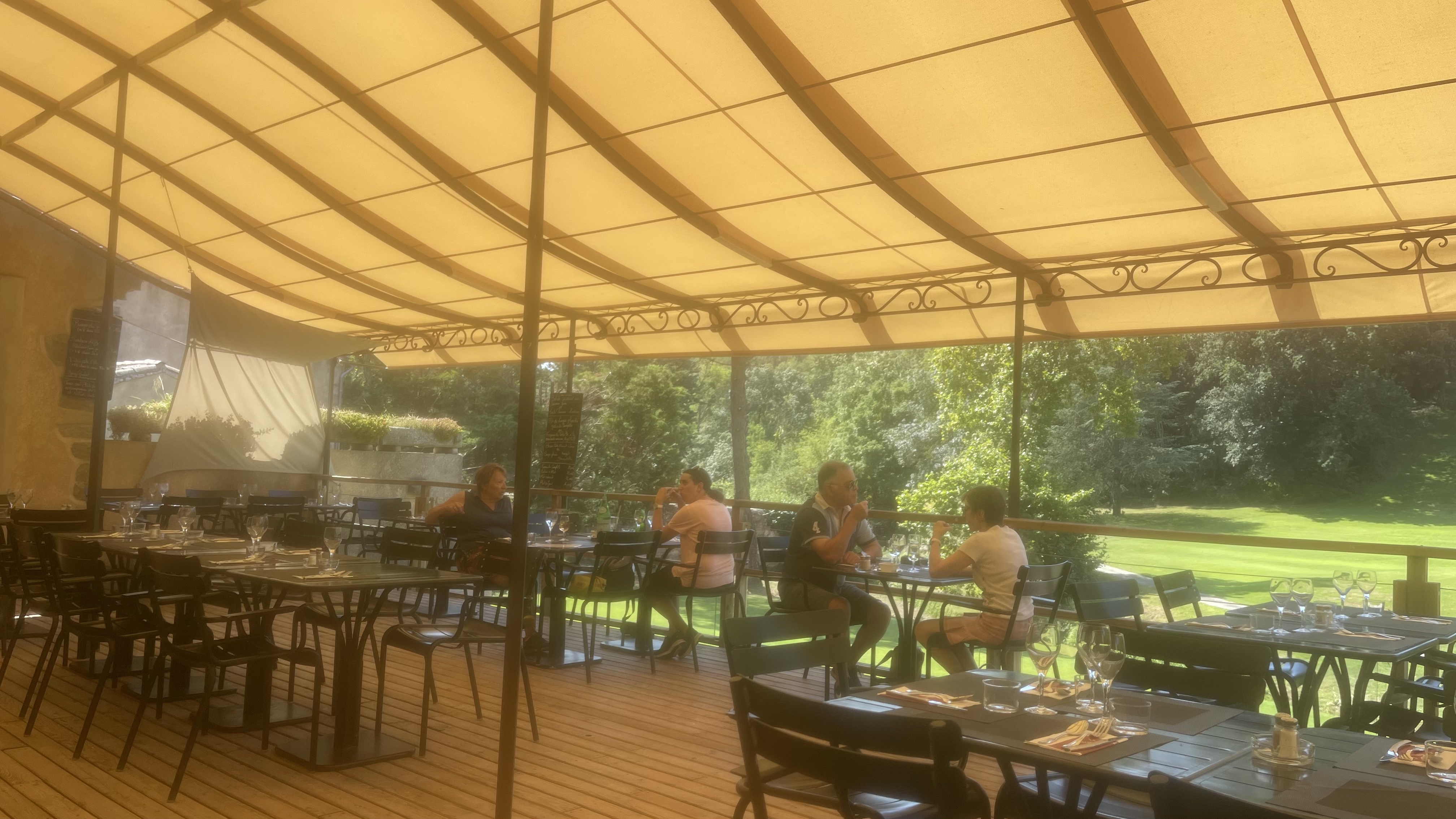 Chaleur étouffante sous la tonnelle. Aucun brin d’air. Repas pas du tout adapté pour une période estivale. Bizarre de ne pas faire de salade repas. Sinon personnel aimable et rapide.