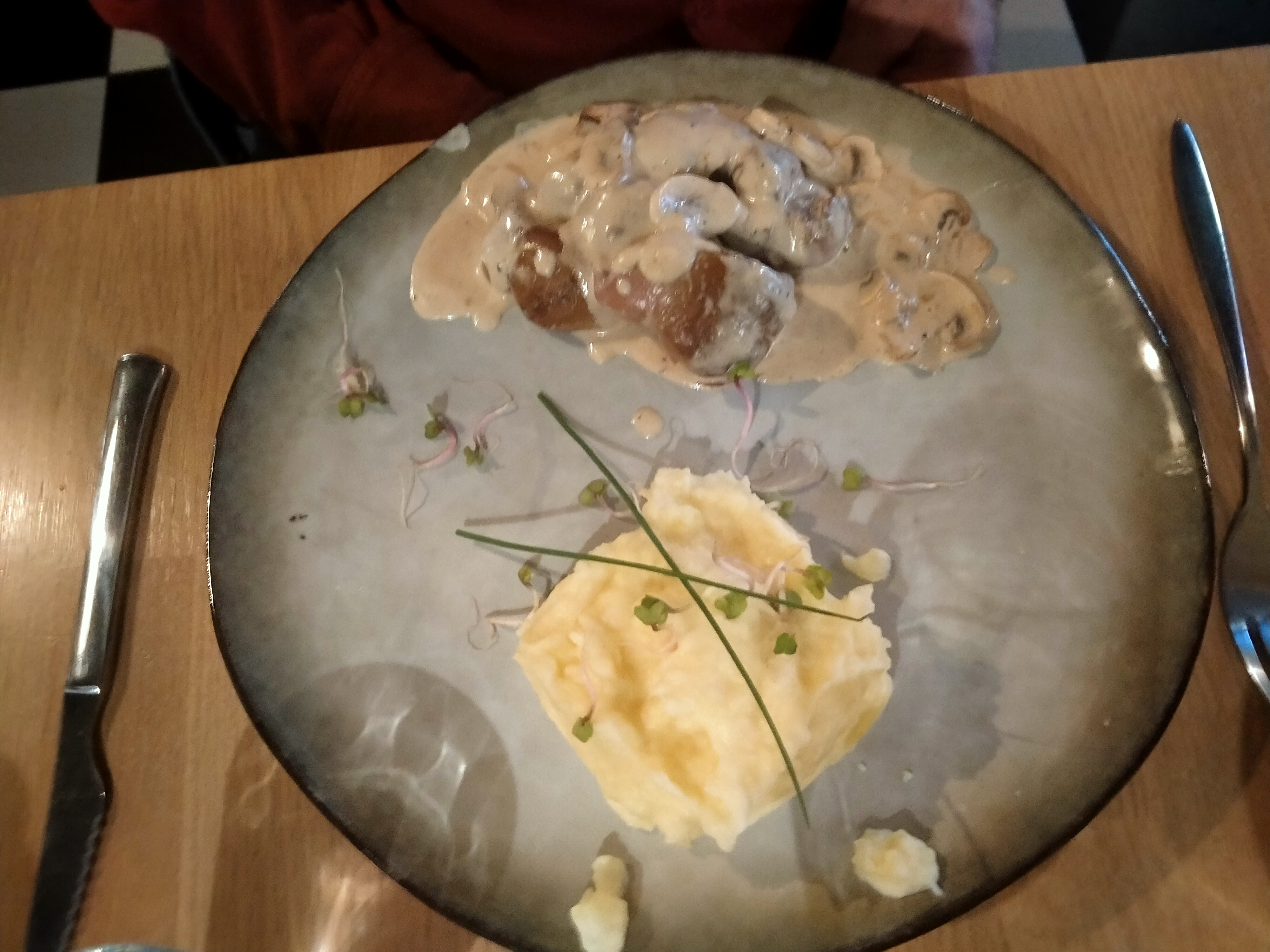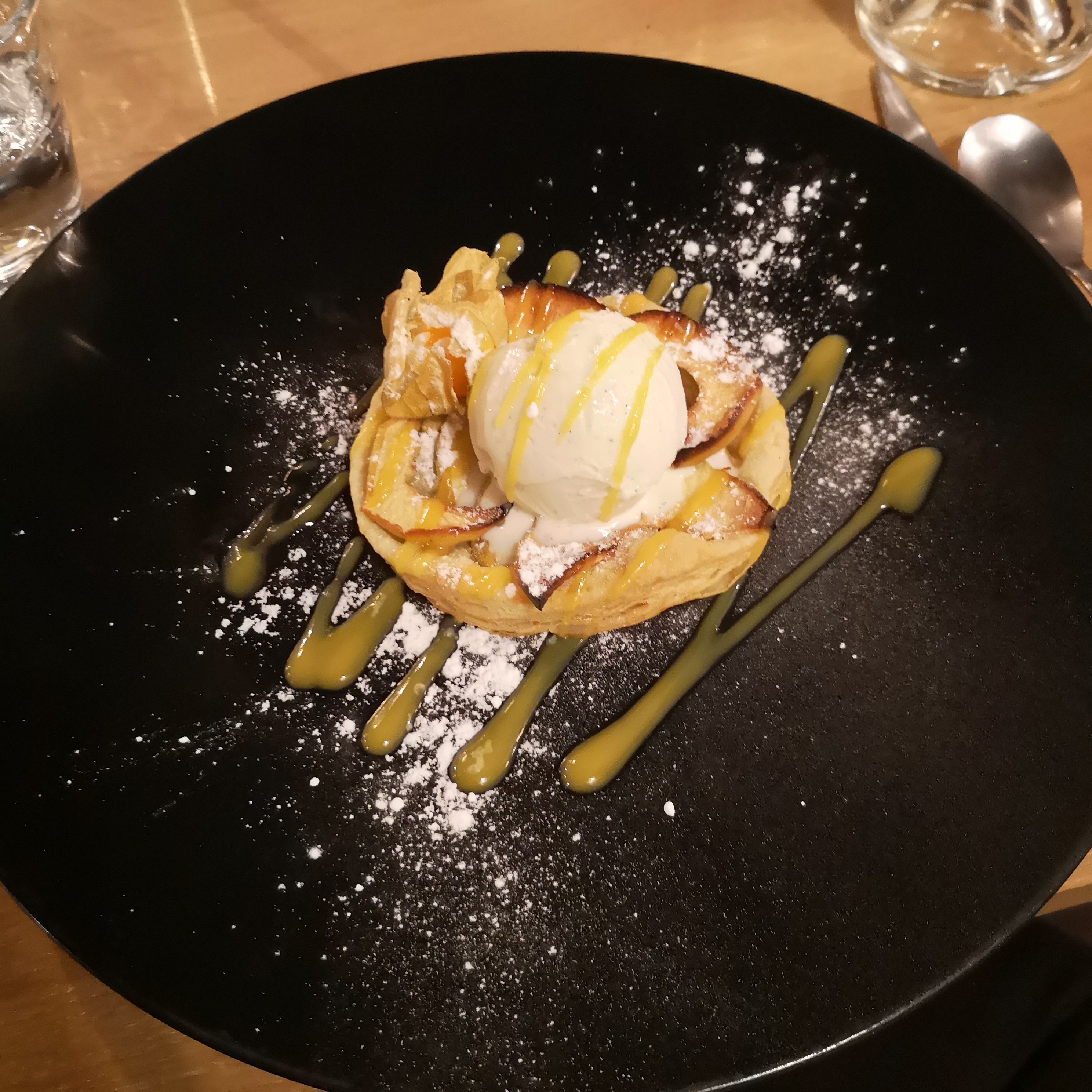 Repas excellent je recommande les yeux fermés, je ne suis pas une grande fan de viande mais j’ai pris un dessus de palette avec une purée maison et clairement des choses simples maîtrisées à la perfection, quand au crumble il est incroyable c’est avec regret que je n’ai pas réussi à le finir .