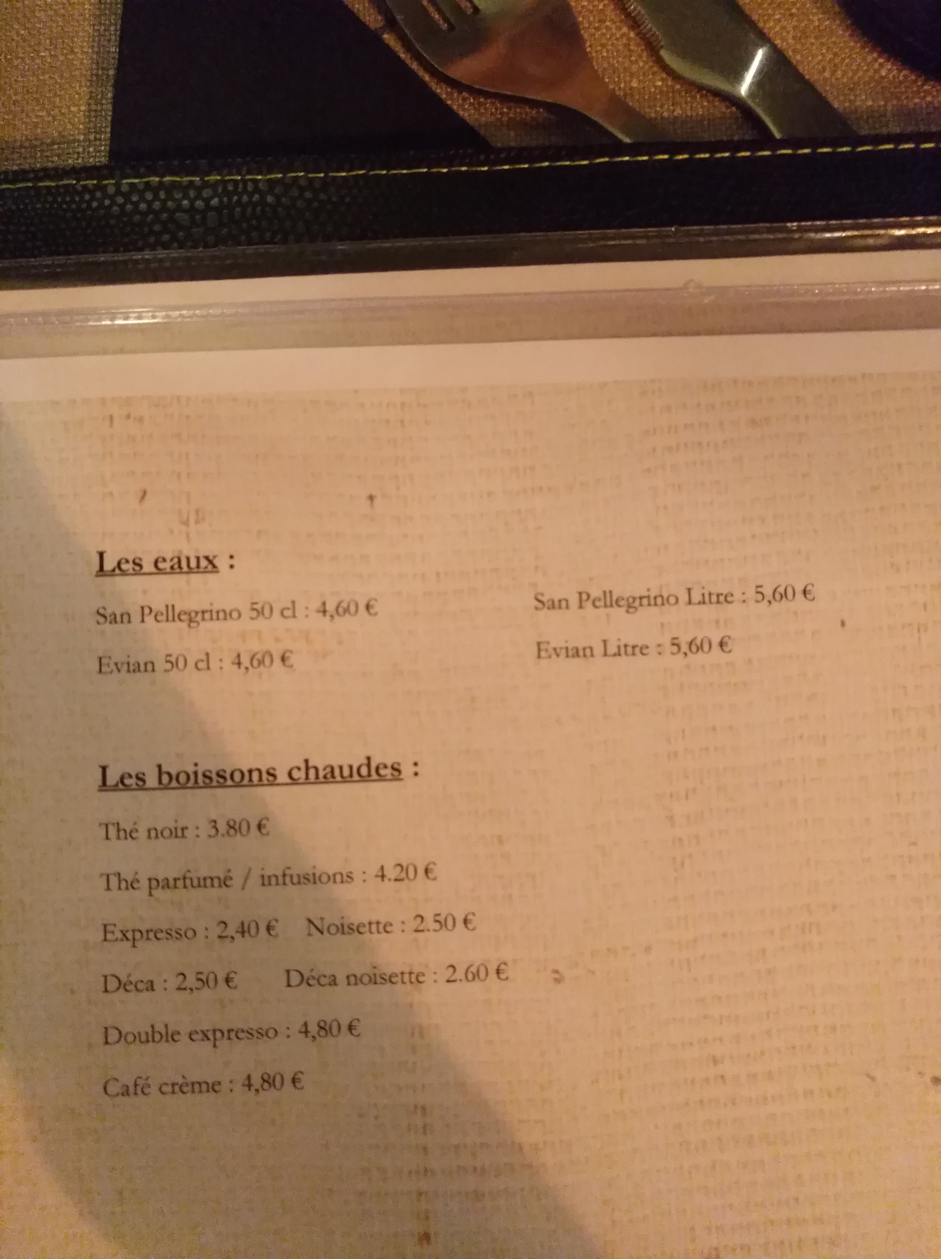 Rien à dire. J'ai commandé un menu entrée + plat pour 20,90€. Accueil super. Le bistrot est assez sympa, petite bougie, déco rustique. La nourriture est super bonne, c'est du fait maison.