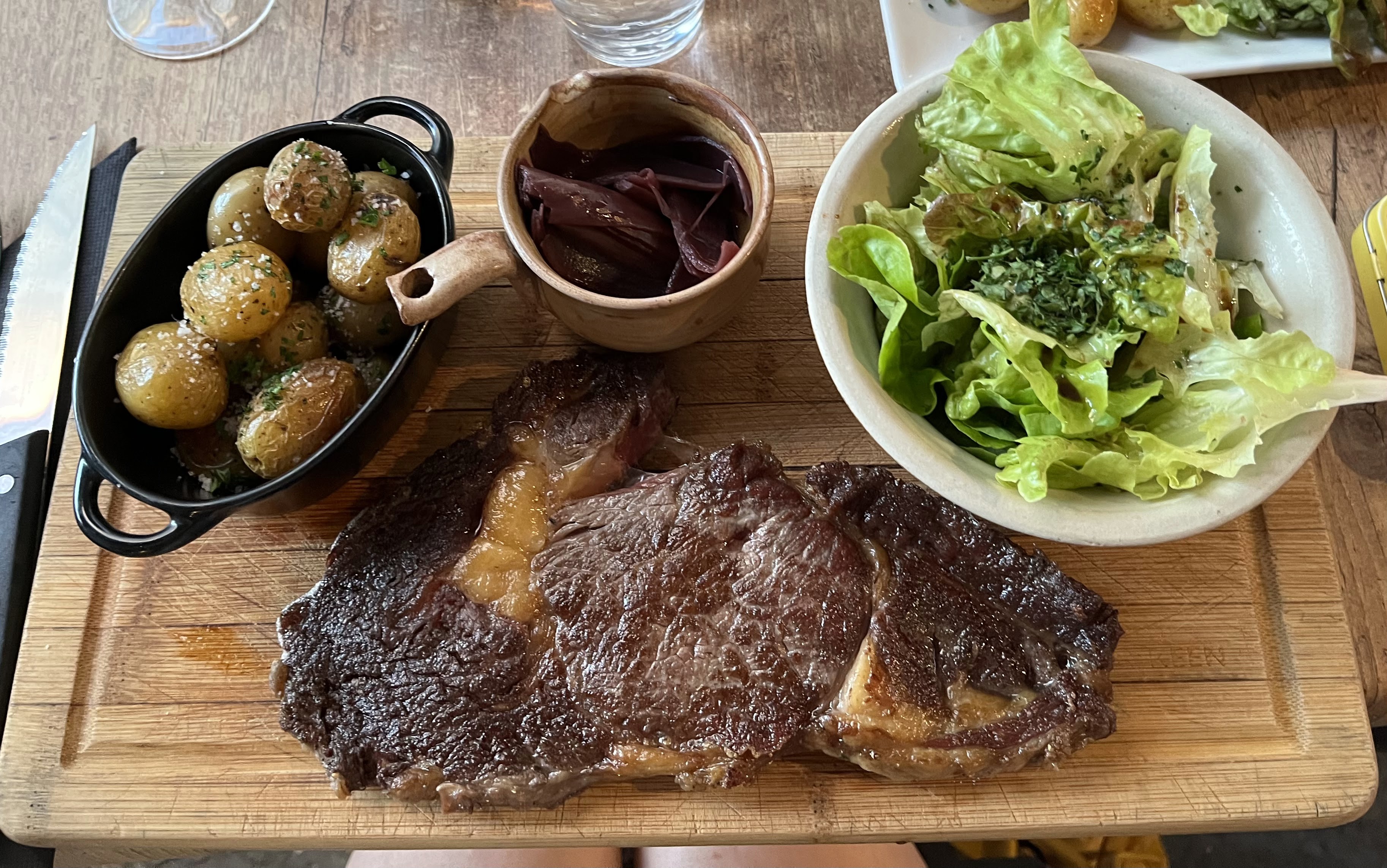 Viande de bonne qualité (côte de bœuf) Bonne cuisson et serveur agréable. Réservation fortement préconisée en période de vacances