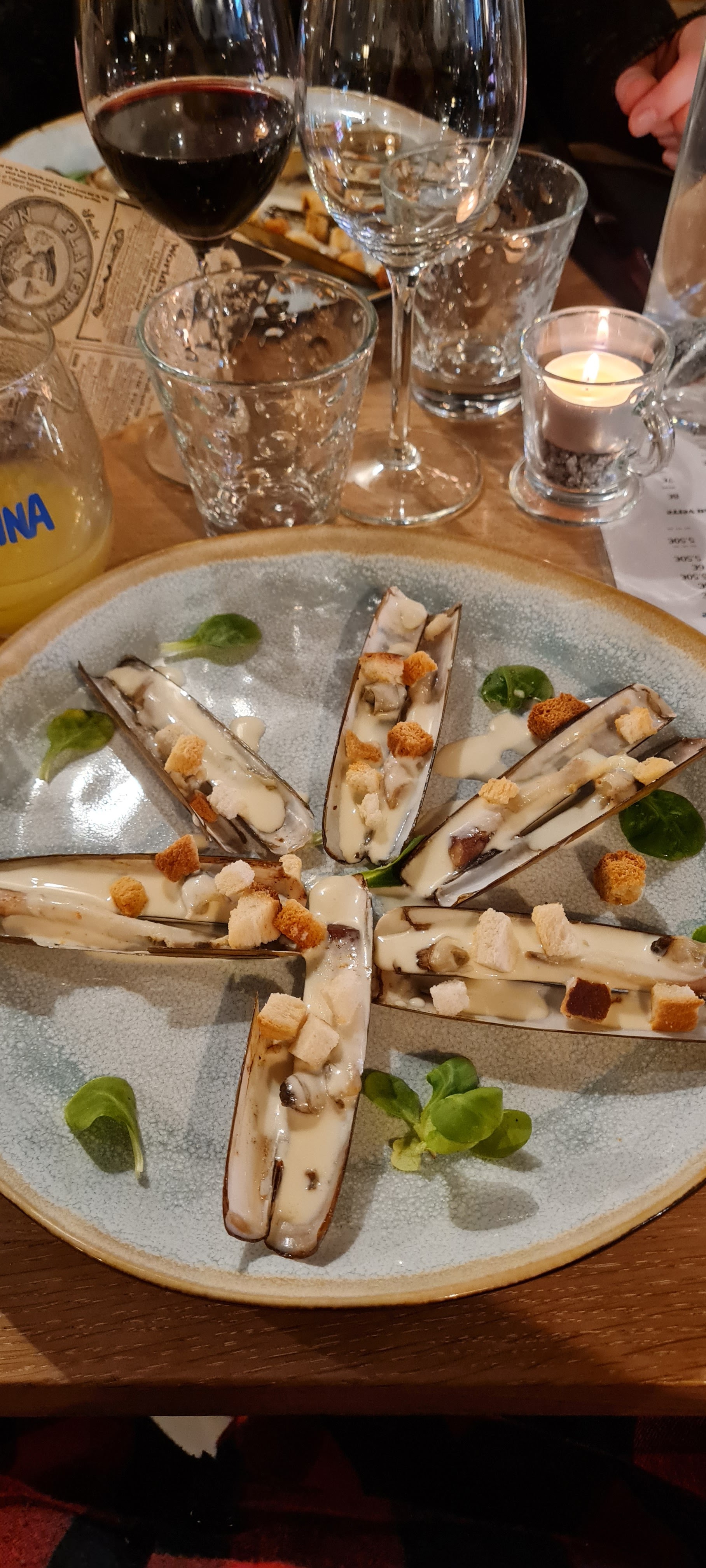 Très bon accueil, champagne délicieux, américano un peu léger, huîtres un peu petites et sans glace, délicieux couteaux, parillada avec petits légumes de saison, au top !A + reviendrons