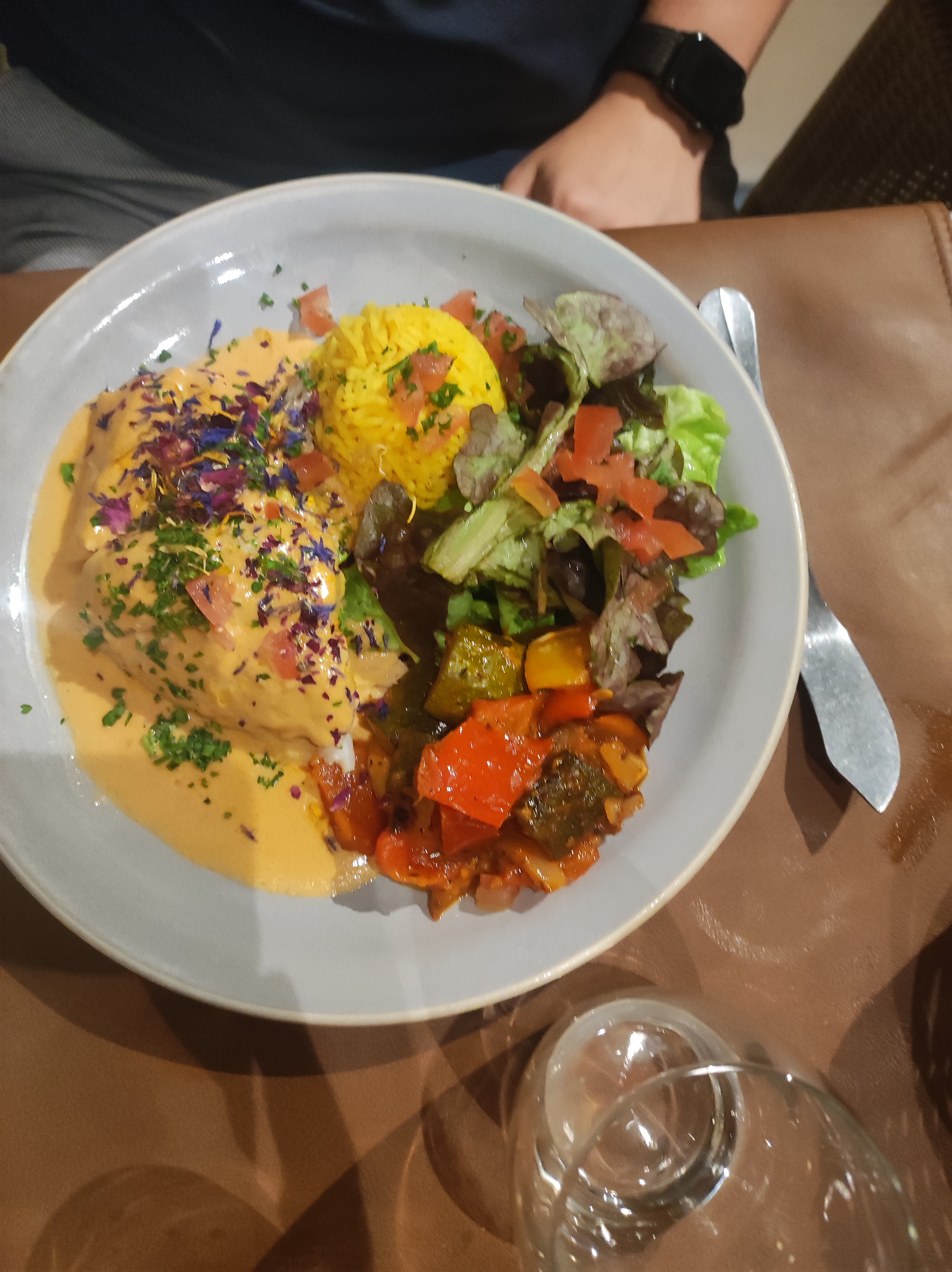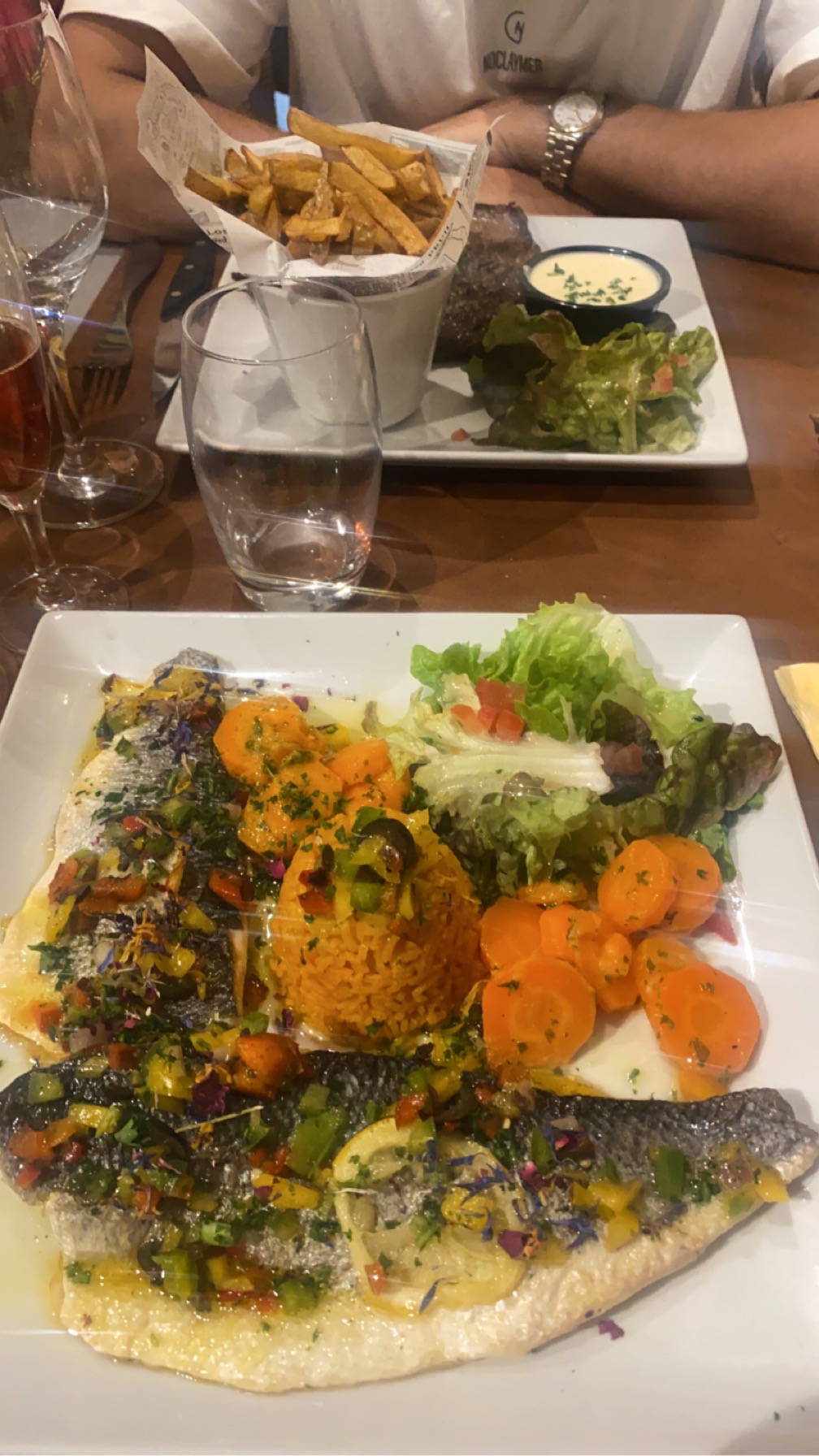 Repas du 14 juillet au soir, on a réussi à avoir une table pour 7 personnes sans réservation, on a attendu notre place mais accompagné d'un planteur (juste trop bon). J'ai pris des moules au roquefort, frite maison juste trop bon, la sauce roquefort digne de ce nom! Une sauce de poisson rose/violette secret du chef mystérieusement bonne! Le poisson frais (dos de cabillaud, bar) accompagnement, riz et petit légumes. Les portions était raisonnable!! Dessert, profiteroles et pain perdu un regaaaaaaale ! Mention spéciale pour notre serveur merci à lui !! Je recommande les yeux fermés !!!