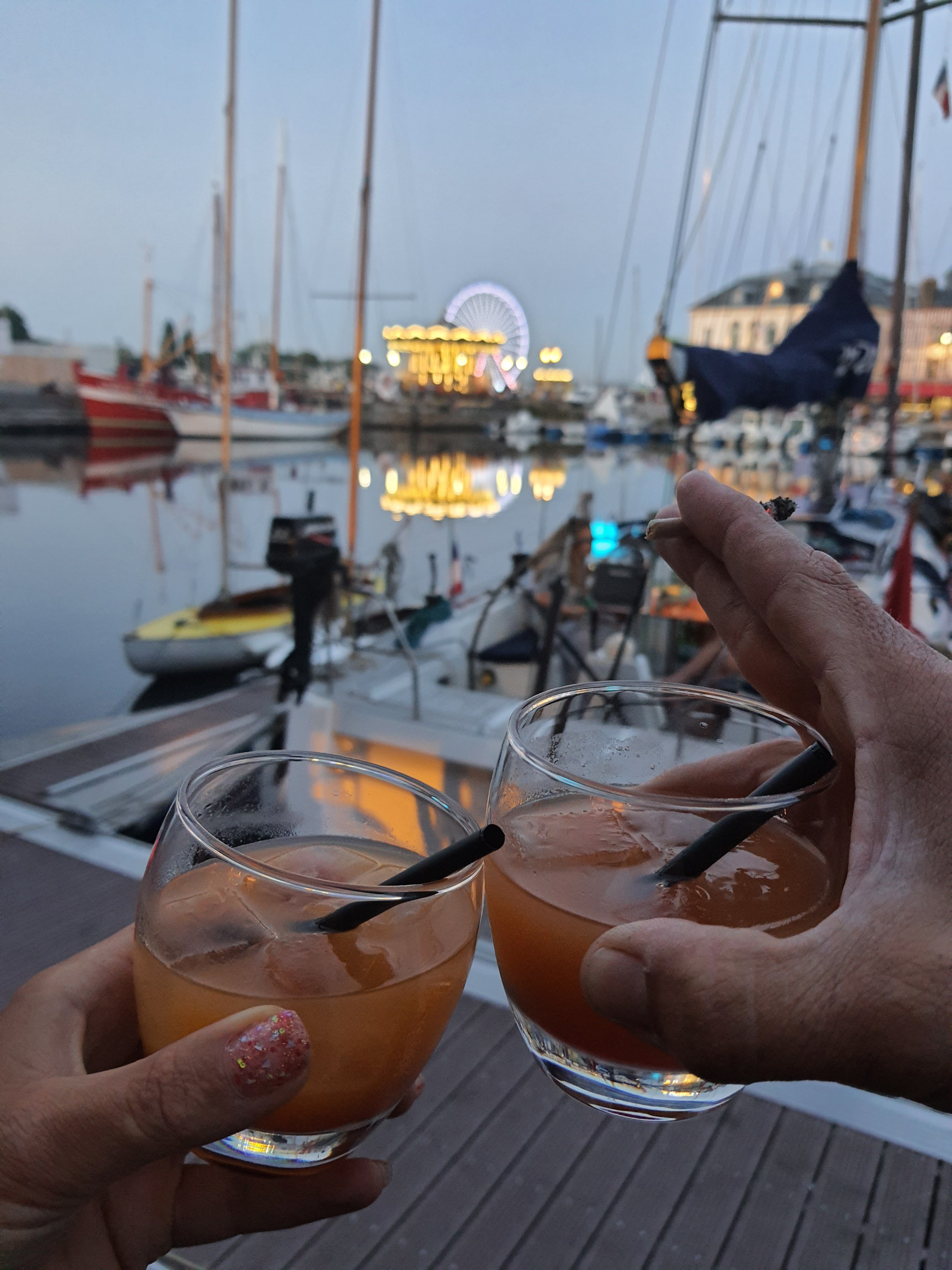 L'emplacement du restaurant est sympathique, placé sur les quais du port de Honfleur. La carte donne envie, j'ai pris un menu a 38€, en entrée une assiette de fruits de mer qui ne m'a pas semblée très fraîche...en plat un magret (demi magret) qui baigné dans une sauce épaisse mais c'était plutôt bon (la salade décorative n'a aucun intérêt), ma compagne a commandé une épaule d'agneau confite au miel, sur l'idée cela paraît exquis, la vérité était tout autre le plat était insipide. Pour le dessert j'ai pris une tarte tatin qui était plutôt bonne et copieuse. En nous amenant l'addition le serveur nous a amené un shot de liqueur maison, ce qui est sympathique. Prix des deux menus avec boissons presque 105€...