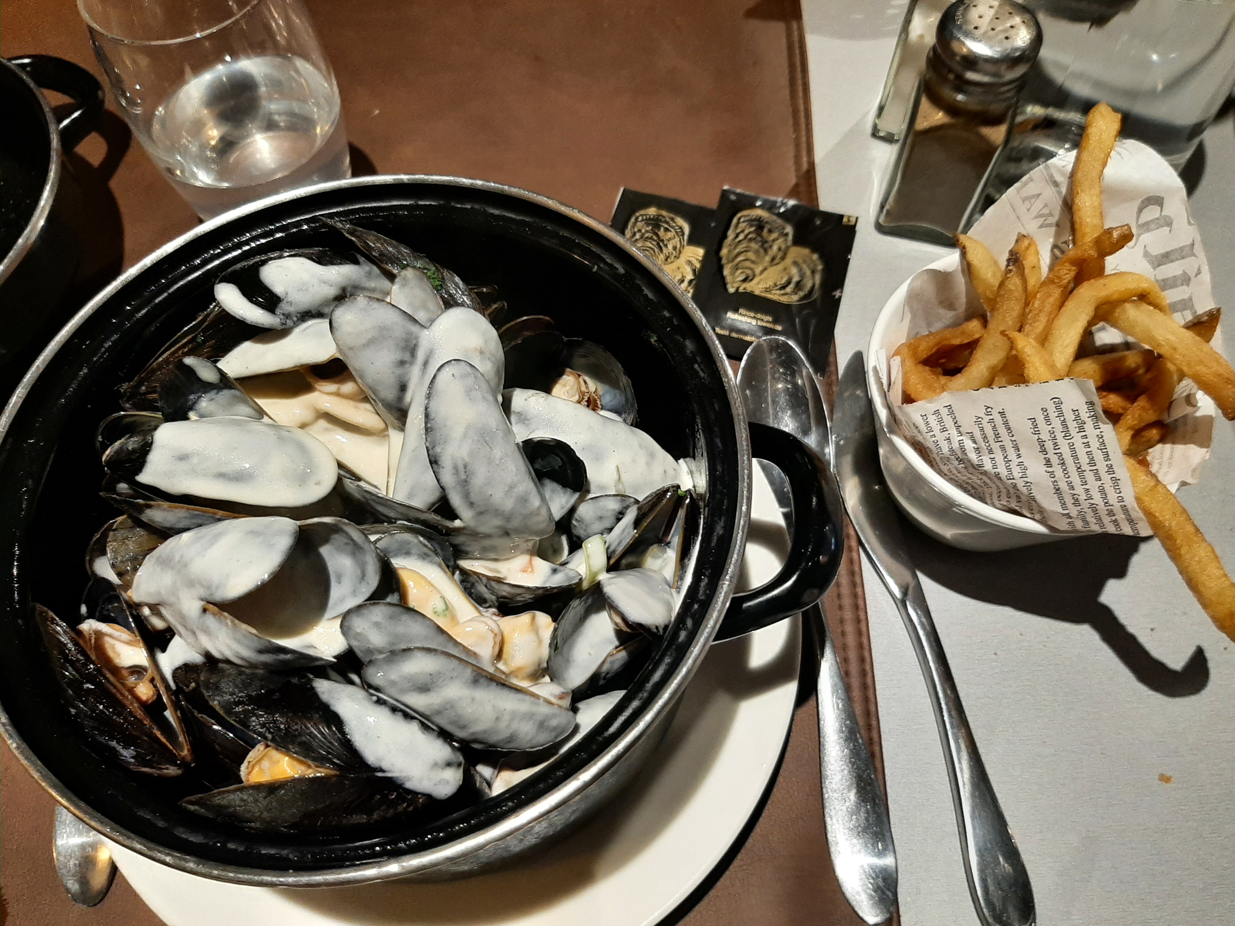 La nourriture était correcte pas la meilleure pas la pire nous avons eu 2 assiettes de moules crème une et une sans crème et poulet normand, les puddings par contre étaient très bons. Le personnel semblait un peu hostile aux touristes en levant parfois les yeux au ciel lorsqu'il servait des touristes s'ils ne comprenaient pas quelque chose que le personnel leur disait. Mais dans l'ensemble, ça allait