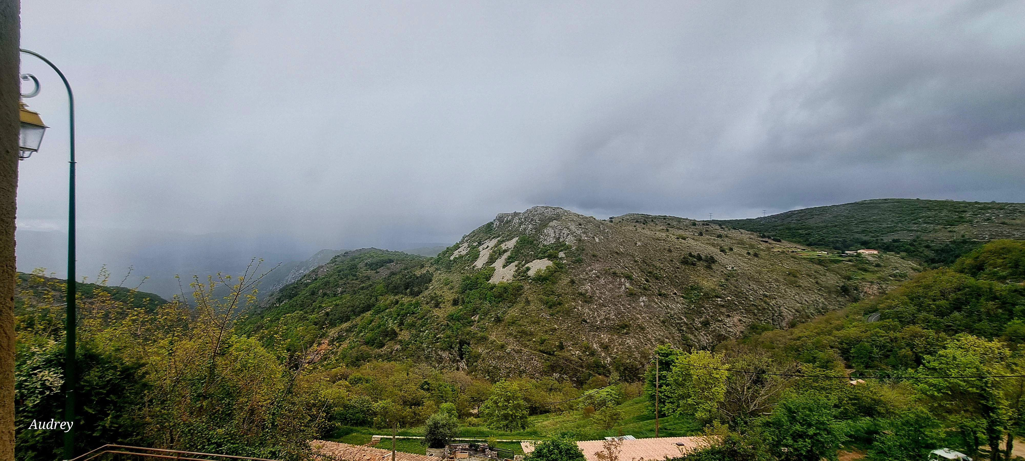 J'ai traversé le village de Bouyon où un groupe de cyclistes profitant déjà d'un café s'est arrêté, continuant sur quelques kilomètres en direction de Corsegoules, mais j'ai remarqué Bezuadun des Alpes niché dans les falaises au-dessus et j'ai décidé de prendre un virage à droite serré pendant 1 km pour visiter l'endroit. Je suis tombé sur ce superbe café/bistro-bar offrant une vue imprenable, que ce soit assis à l'intérieur ou à l'extérieur, sur les montagnes et les vallées immédiates ou sur les lointains sommets alpins enneigés italiens. Tout seul, si paisible, profitant du soleil du début mai, récompensant mes efforts avec un gâteau au pain aux bananes au café et au chocolat. J'ai pris une carte et j'en ferais un arrêt pour amener des copains pédaleurs lors d'un futur trajet.