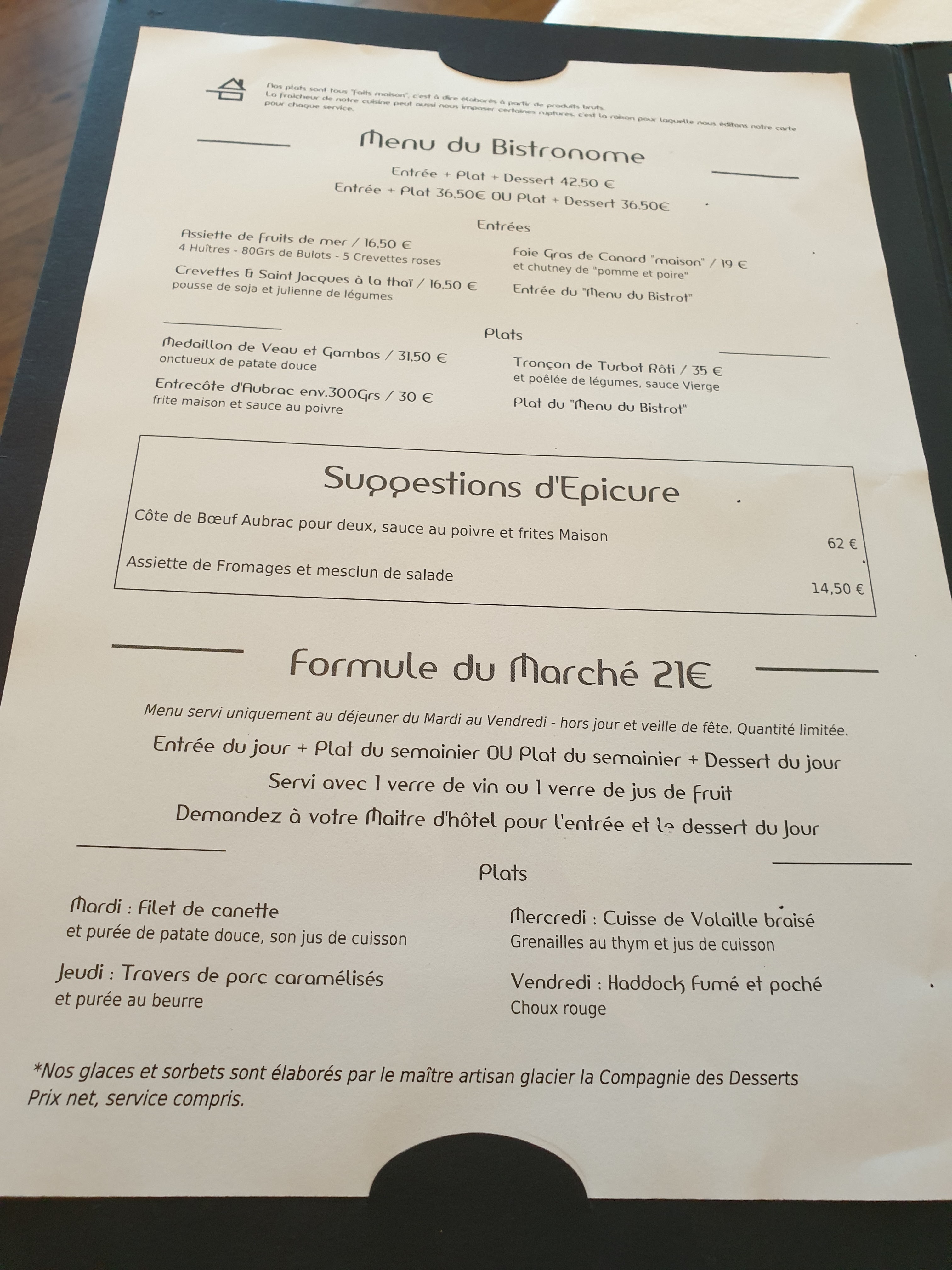 J'ai pris un rognon de veau crème moutarde délicieux. Mon épouse un dos de cabillaud excellent également. Un croze ermitage pour accompagner. Bravo au cuisto, et au personnel de salle. On y retournera.